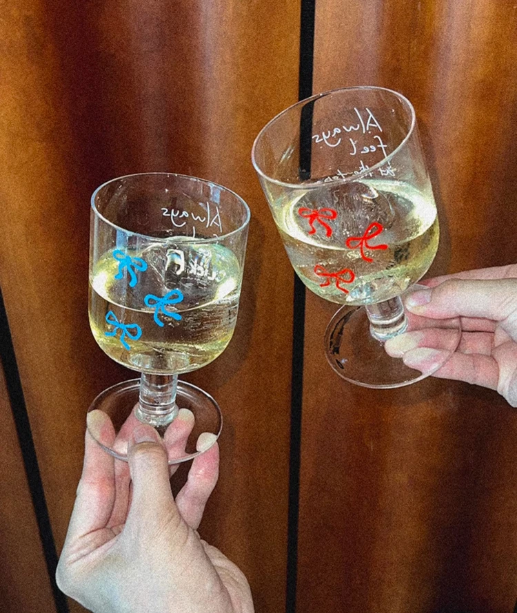 Original Cute Bow High Feet Glass Wine Cup Juice Milk Cup Summer Beverage Cup