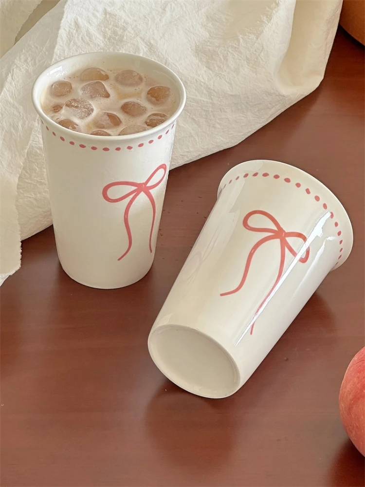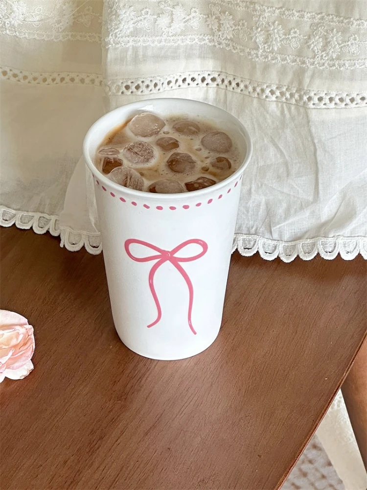 Pink Polka Dot Bow Holding Cup Bone Porcelain Coffee Cup Water Cup Gift Mugs Coffee Cups
