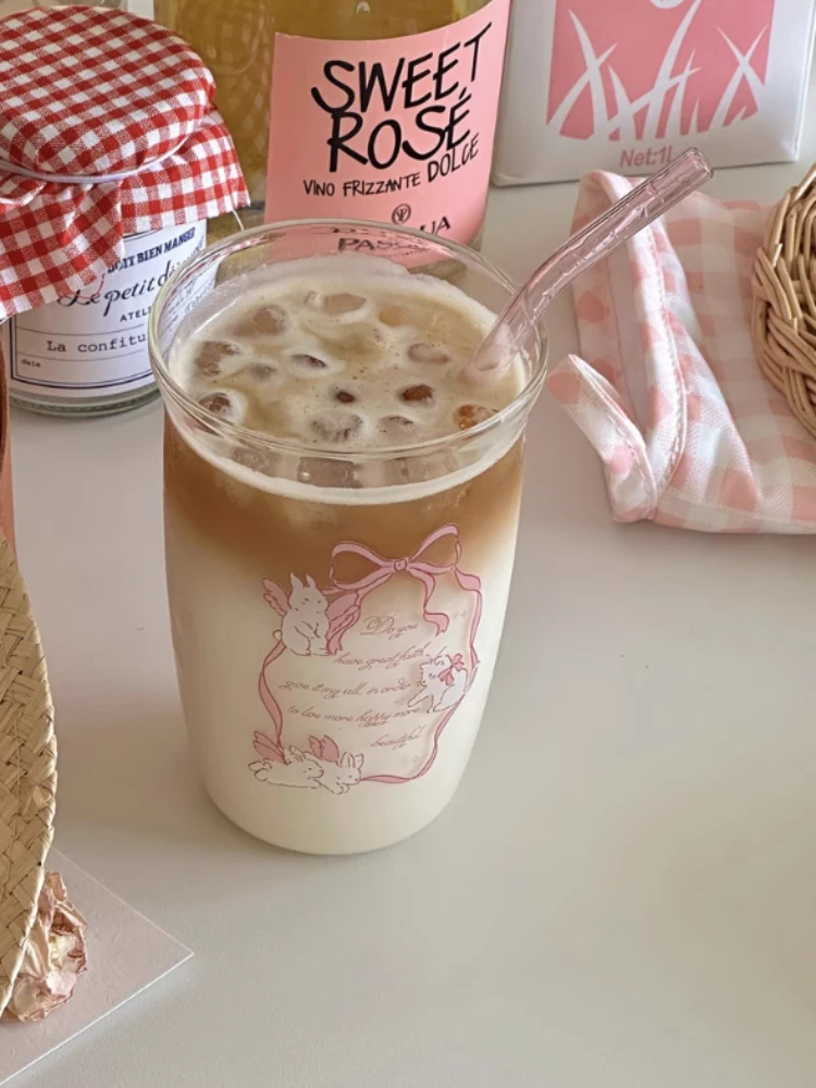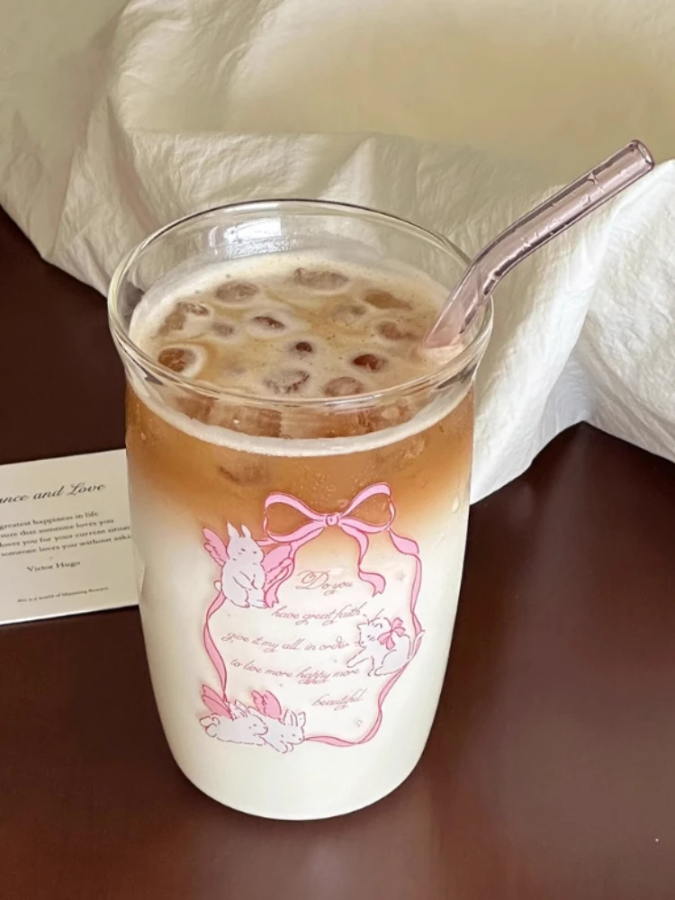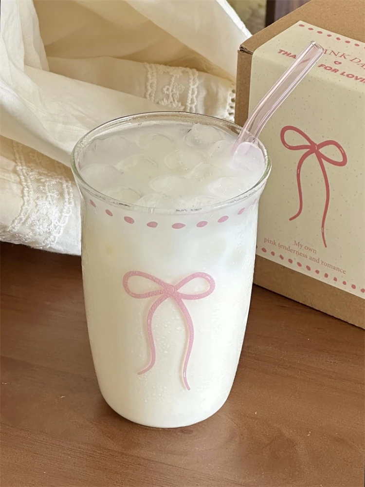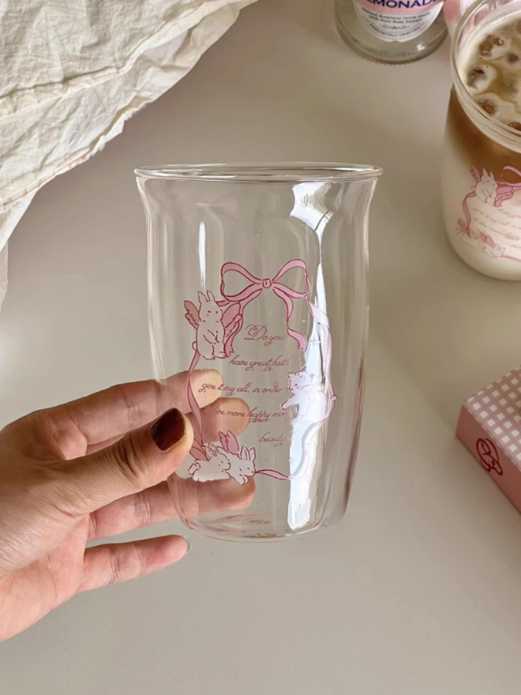 Practical Water Cup Capacity Handdrawn Storm Dot Bow High Borosilicate Glass Cup