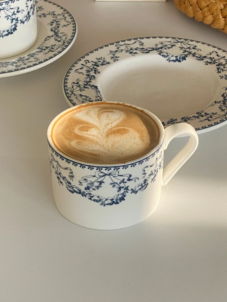 Retro Chinese Style Blue and White Floral Ceramic Coffee Cups Plates Afternoon Tea Utensils Latte Cups