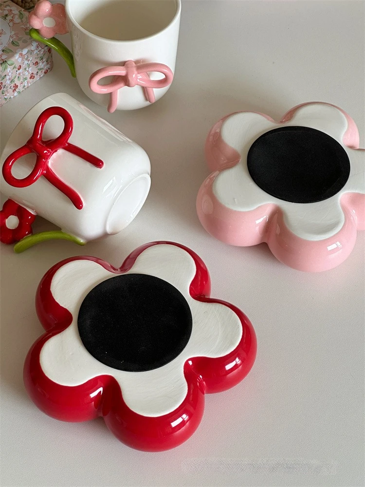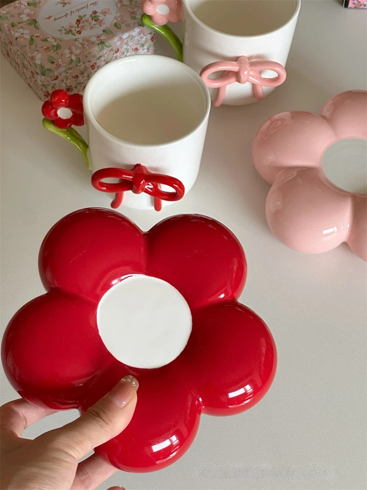 Three Dimensional Flower Bow Coffee Cup Plate Girl's Heart Companion Hand Gift Afternoon Tea Cup