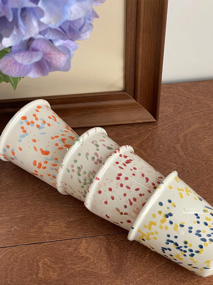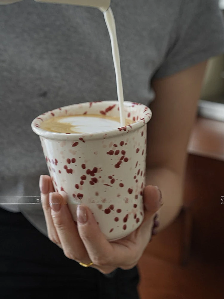 Vintage Splashed Ceramic Hand-held Cup Coffee Latte Art Breakfast Milk Cup Cold Brew Household Water Cup