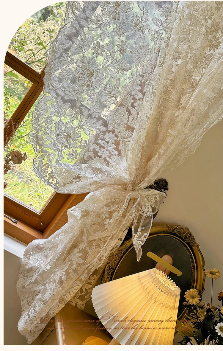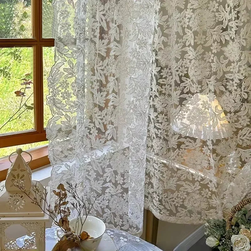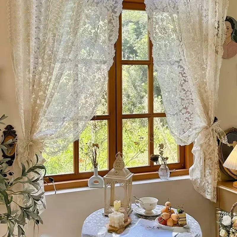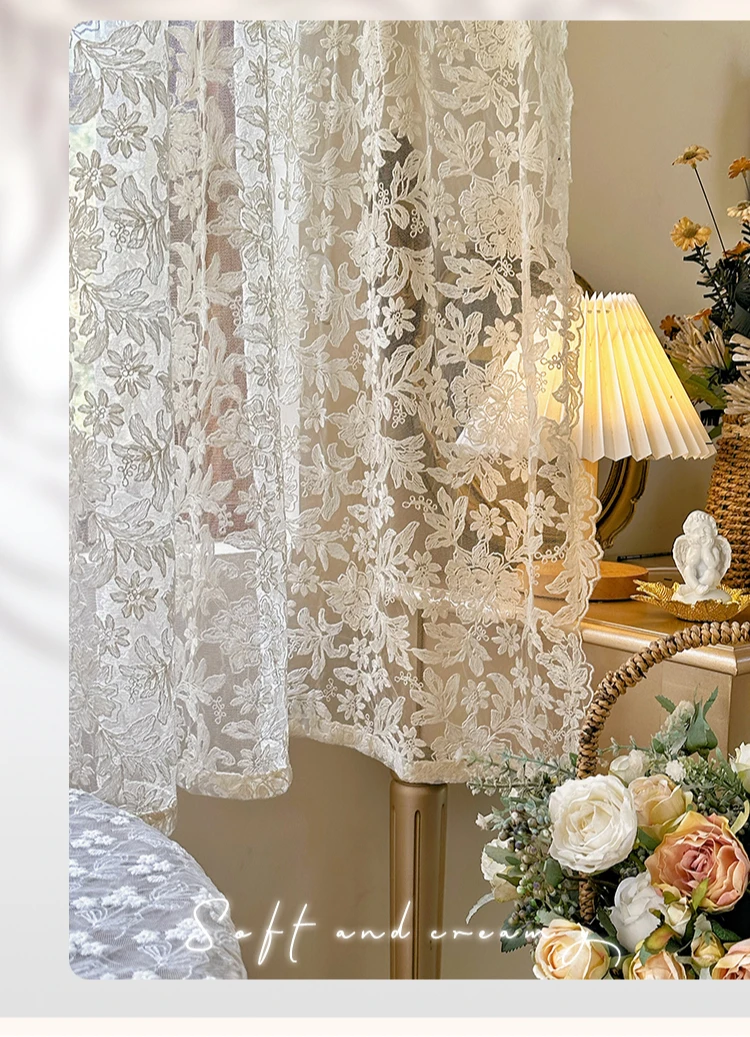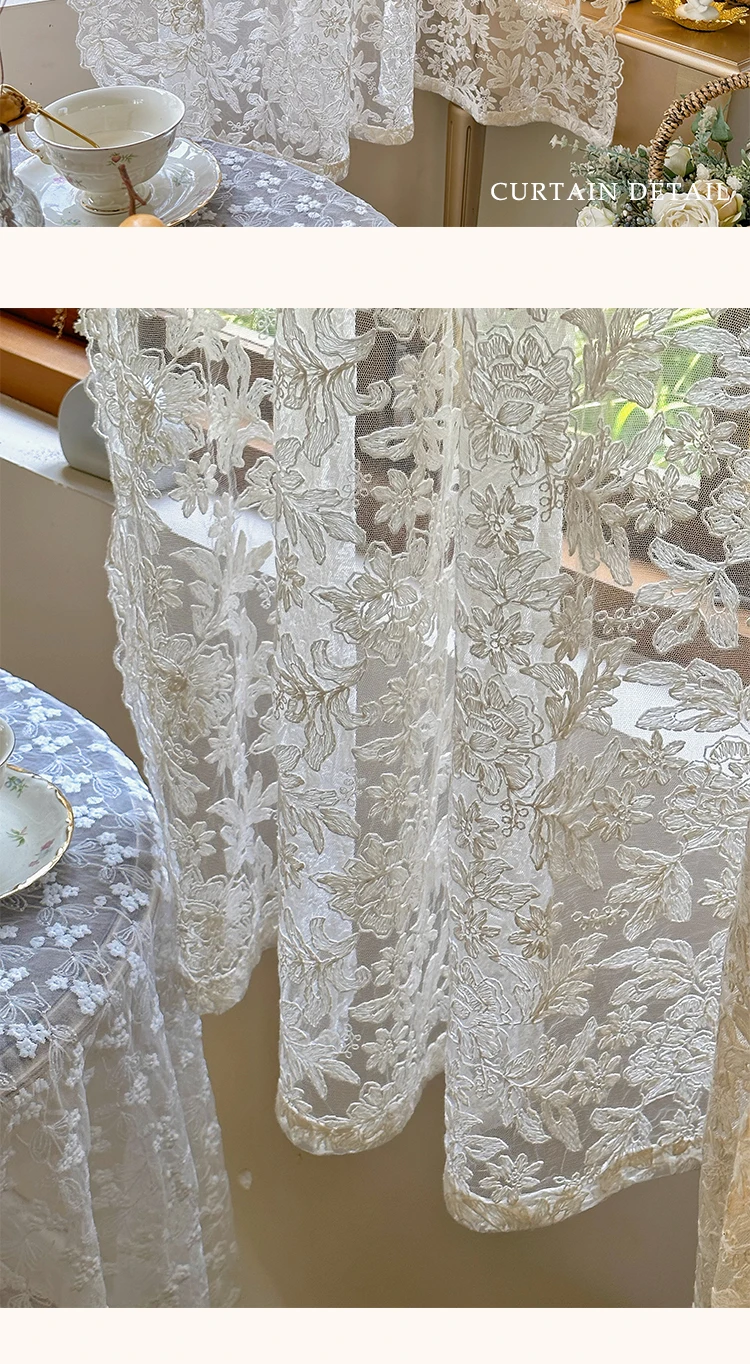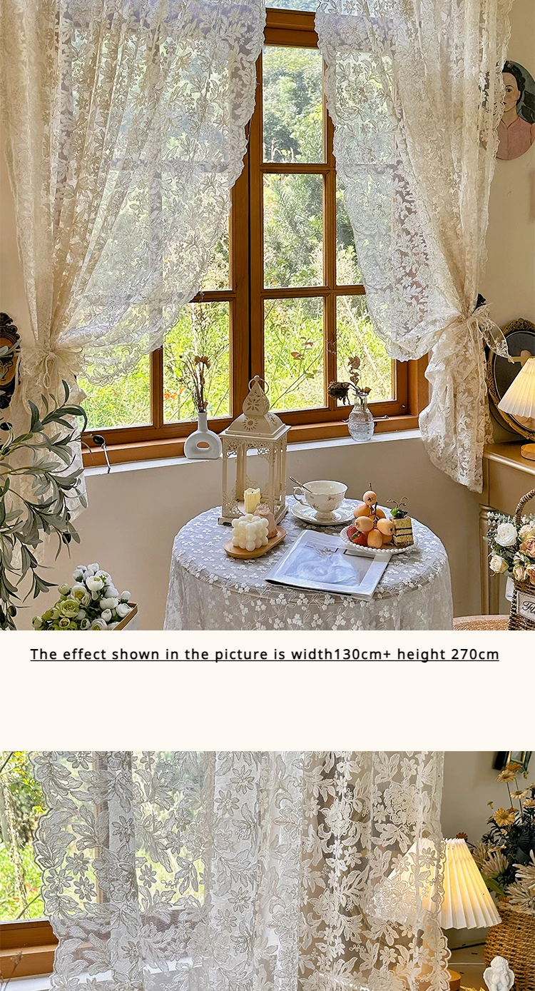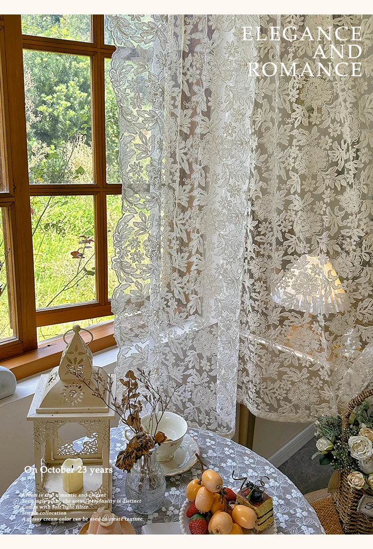French Curtains Lace Gauze for Living Room  Cream Retro Wavy Edge Bedroom Bay Window Girl Embroidery Curtain Door Decor Custom