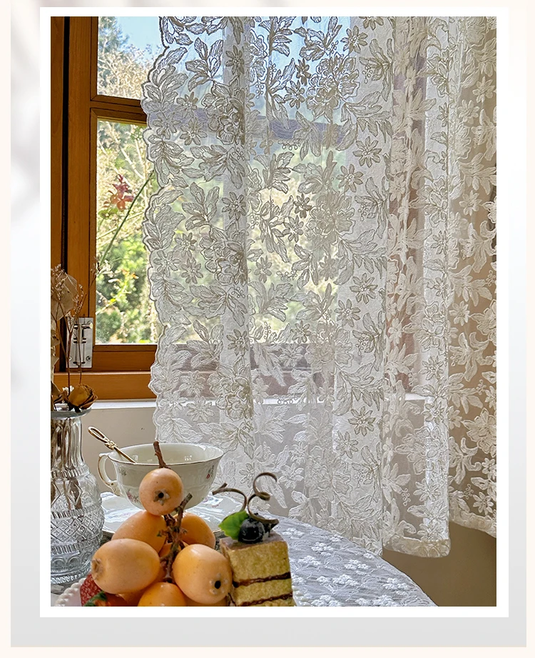 French Curtains Lace Gauze for Living Room Cream Retro Wavy Edge Bedroom Bay Window Girl Embroidery Curtain Door Decor Custom