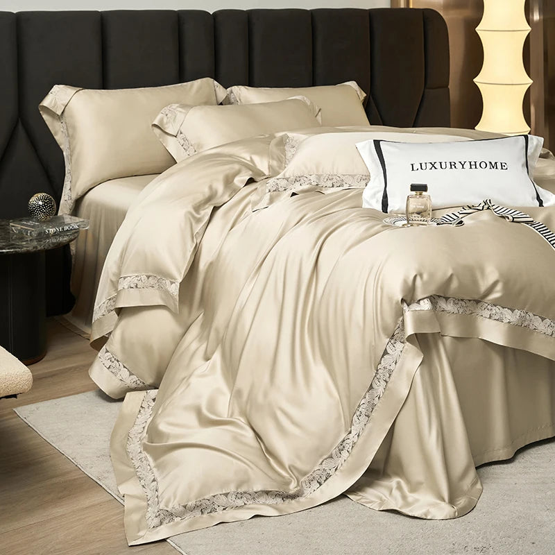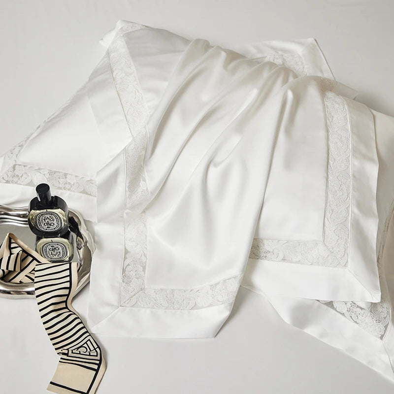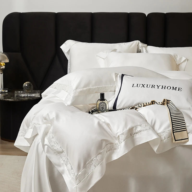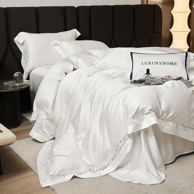 1000TC Lyocell Cotton Flowers Hollow Wide Edge Luxury Bedding Set Soft Silky Duvet Cover Flat/Fitted Bed Sheet Pillowcases 4Pcs