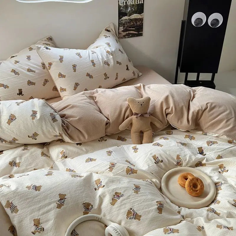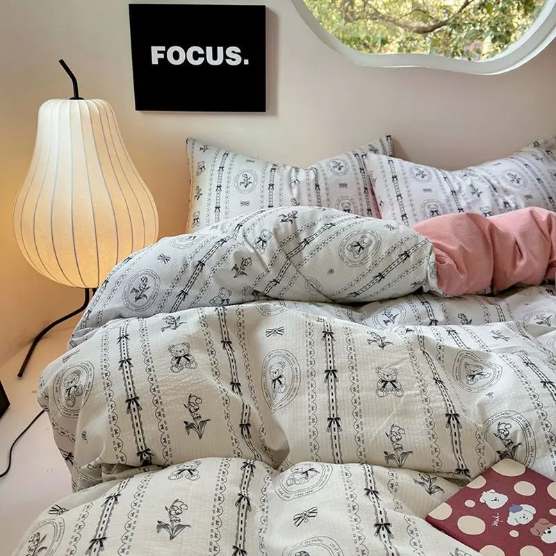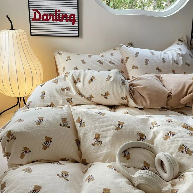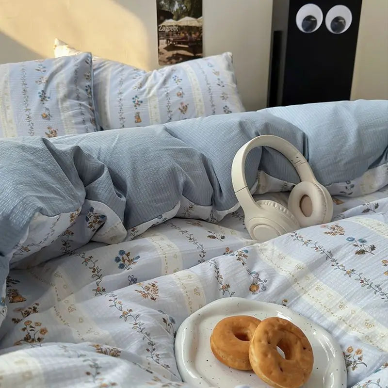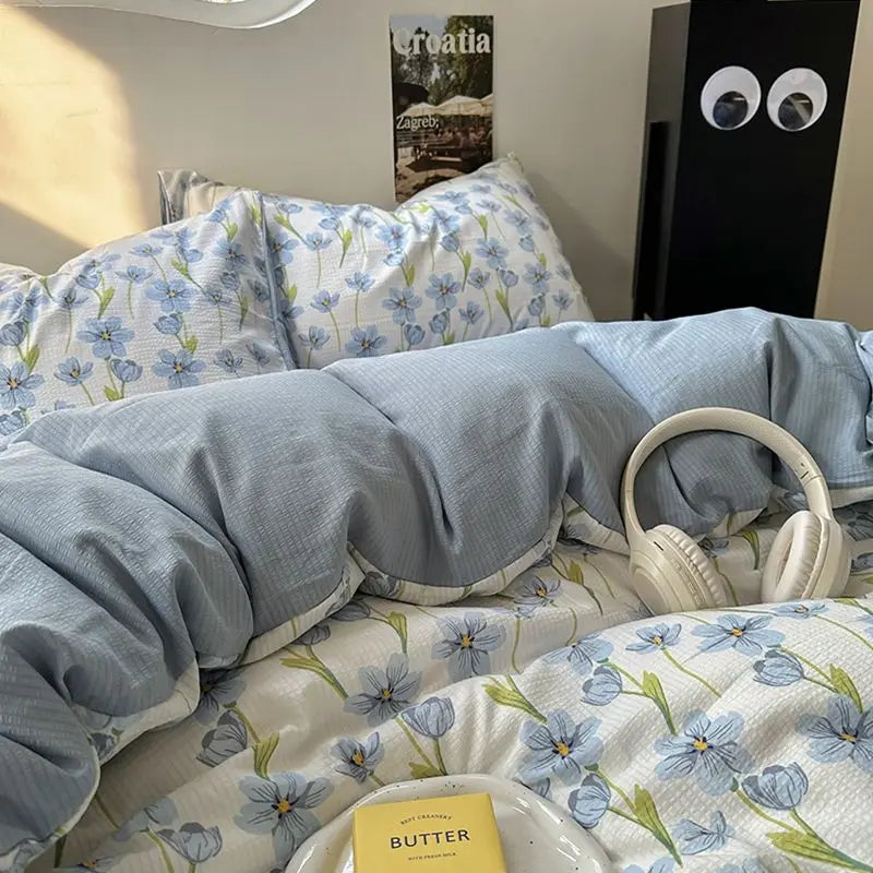 A-Class Maternal and Infant Super Soft Wrinkle Yarn Water Washed Cotton Four piece Set Bubble Cotton Quilt Set Bed Sheet