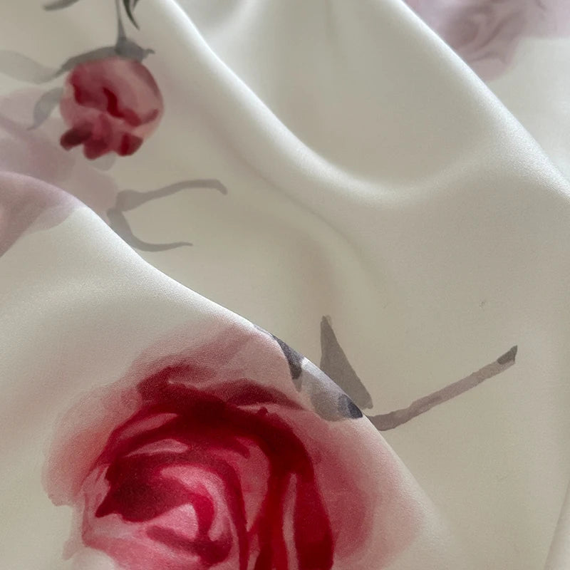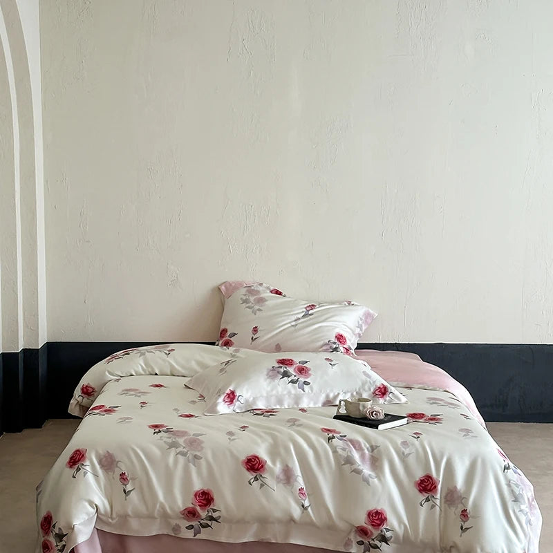 Rose Prints Luxury Bedding Set Premium 600TC Lyocell Bamboo Fiber Soft Silky Duvet Cover Flat/Fitted Bed Sheet Pillowcases 4Pcs