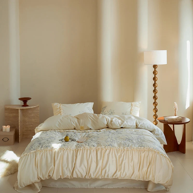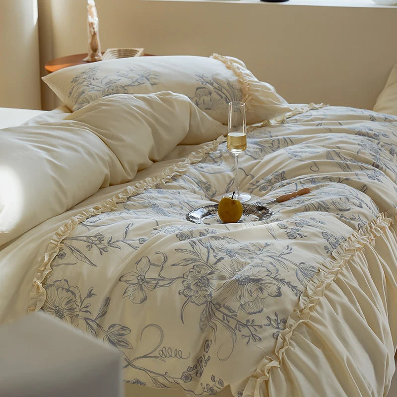 Vintage French Elegant Embroidery Bedding Set 1000TC Egyptian Cotton Brushed Duvet Cover Set Bed Sheets Fitted Sheet Pillowcases