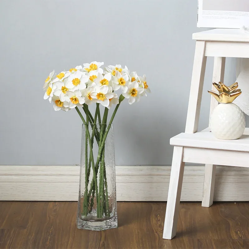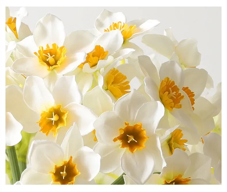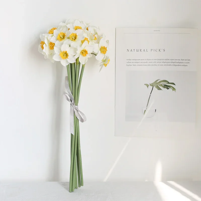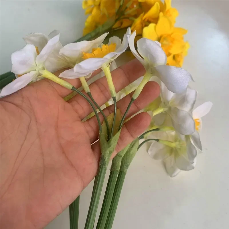 6Pcs/bunch White Artificial Narcissus Flower Bouquet Home Garden Desktop Decoration Floral Party Wedding Bridal Fake Flowers