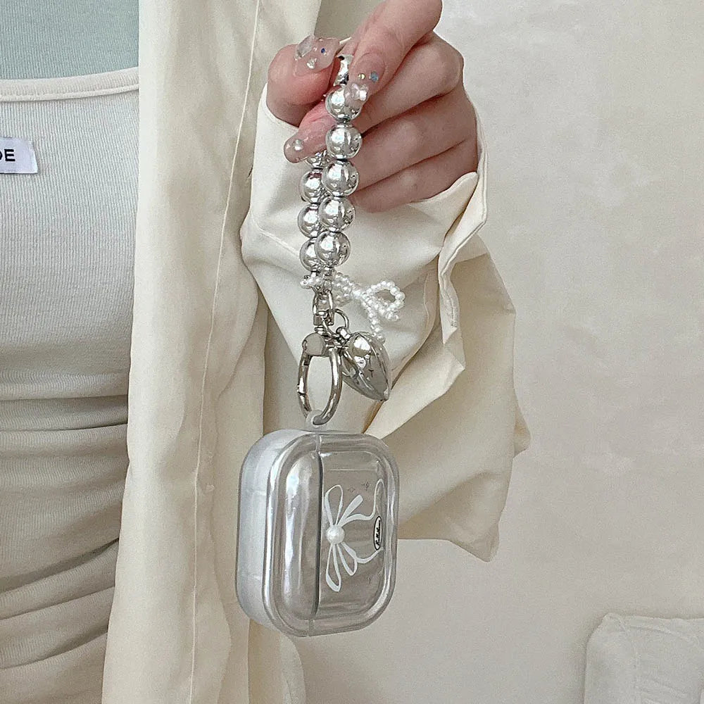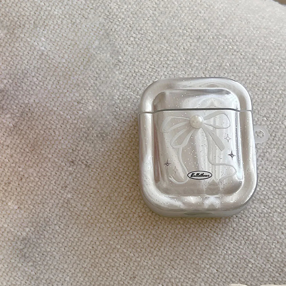 Ribbon Bow Pearl Decoration Case For AirPods 1 2 3 4 Pro 2nd Pro2 Wirelsss Headphones Protective Cover AirPods4 Silver Pendant