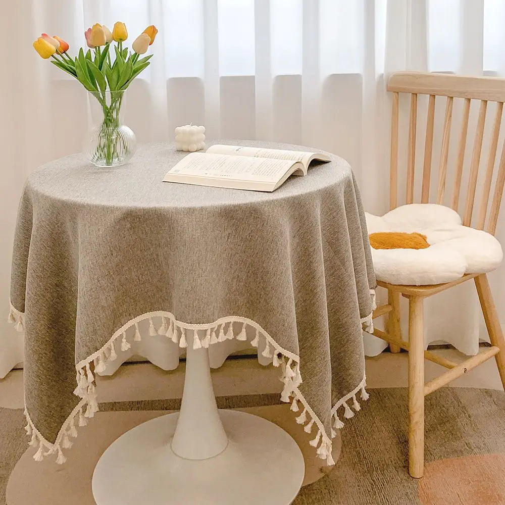 Tassel cotton linen tablecloth desk decoration cloth round tablecloth tea table dining table tablecloth tea table cloth art
