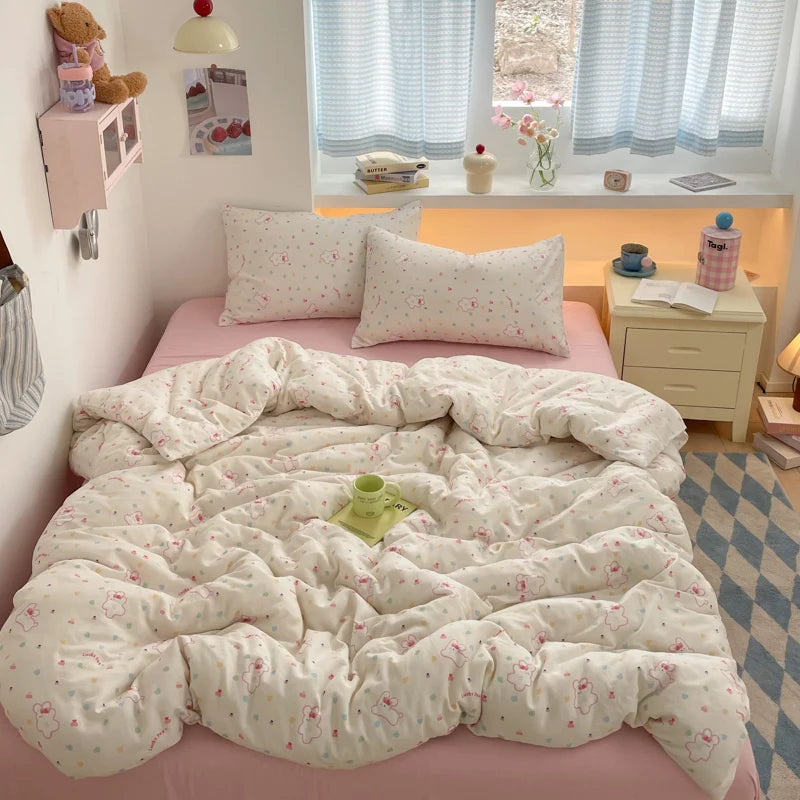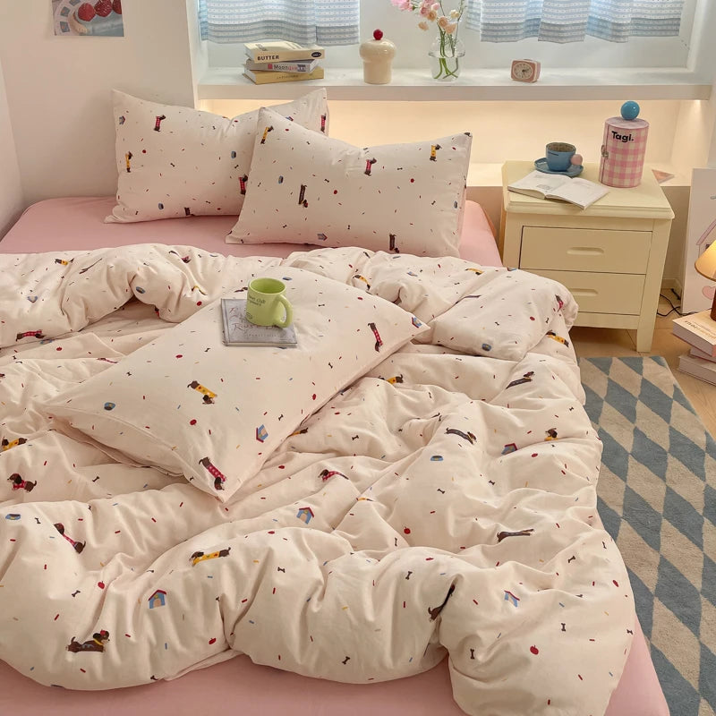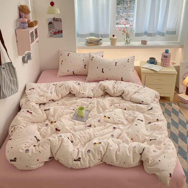 100% Cotton Bedding Set Cartoon Cute Animals Duvet Cover Set Bed Linen Flat Sheets Set 2 Pillowcases Single Double Queen Size