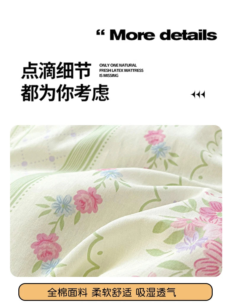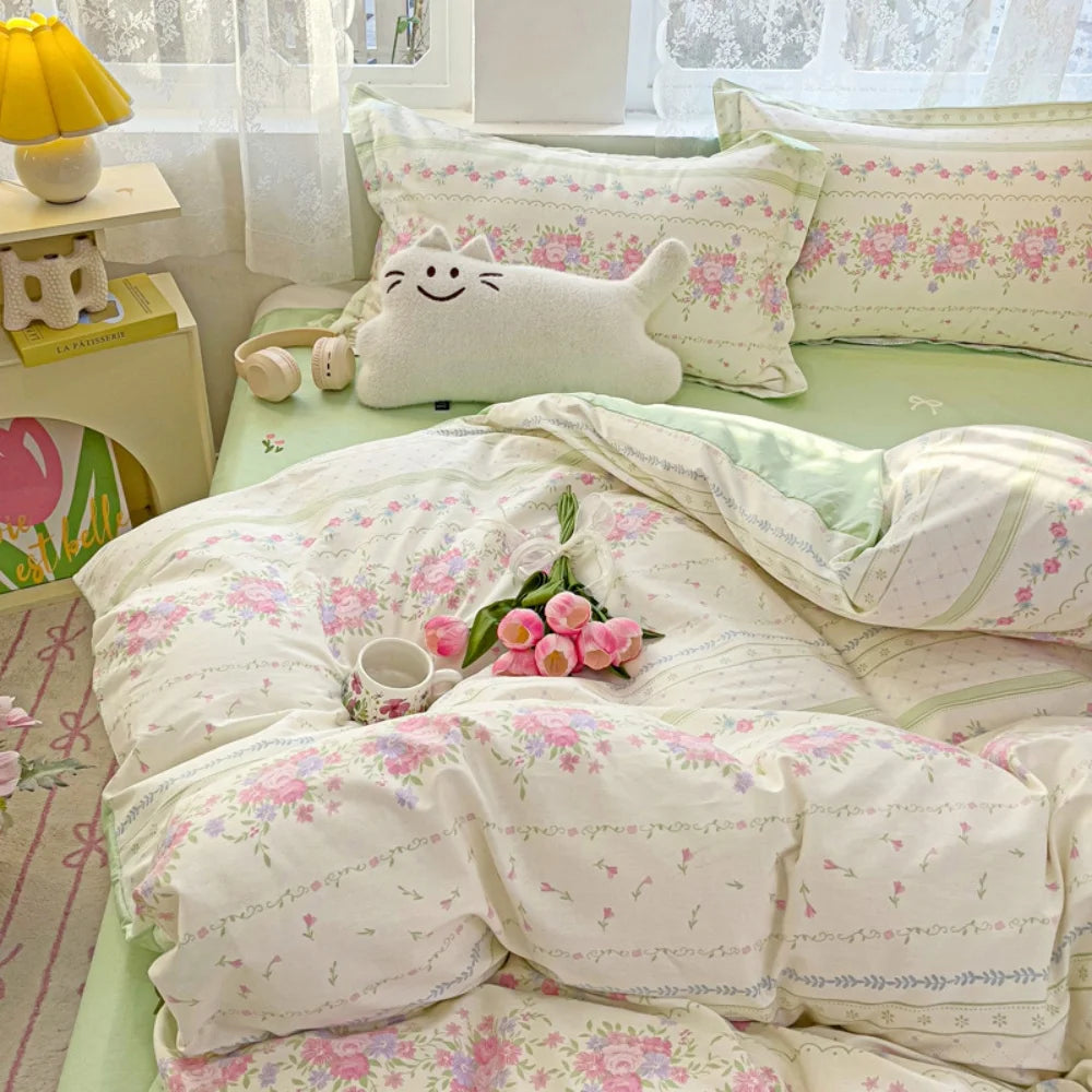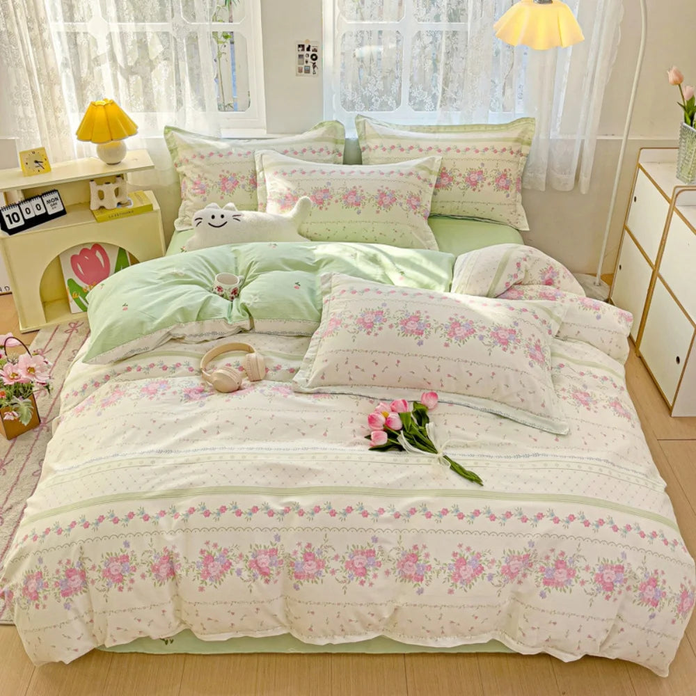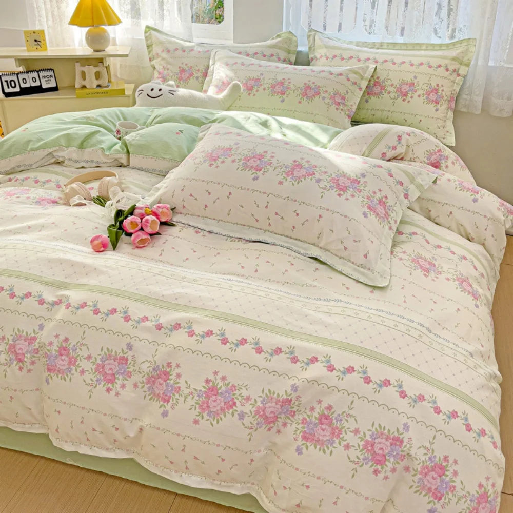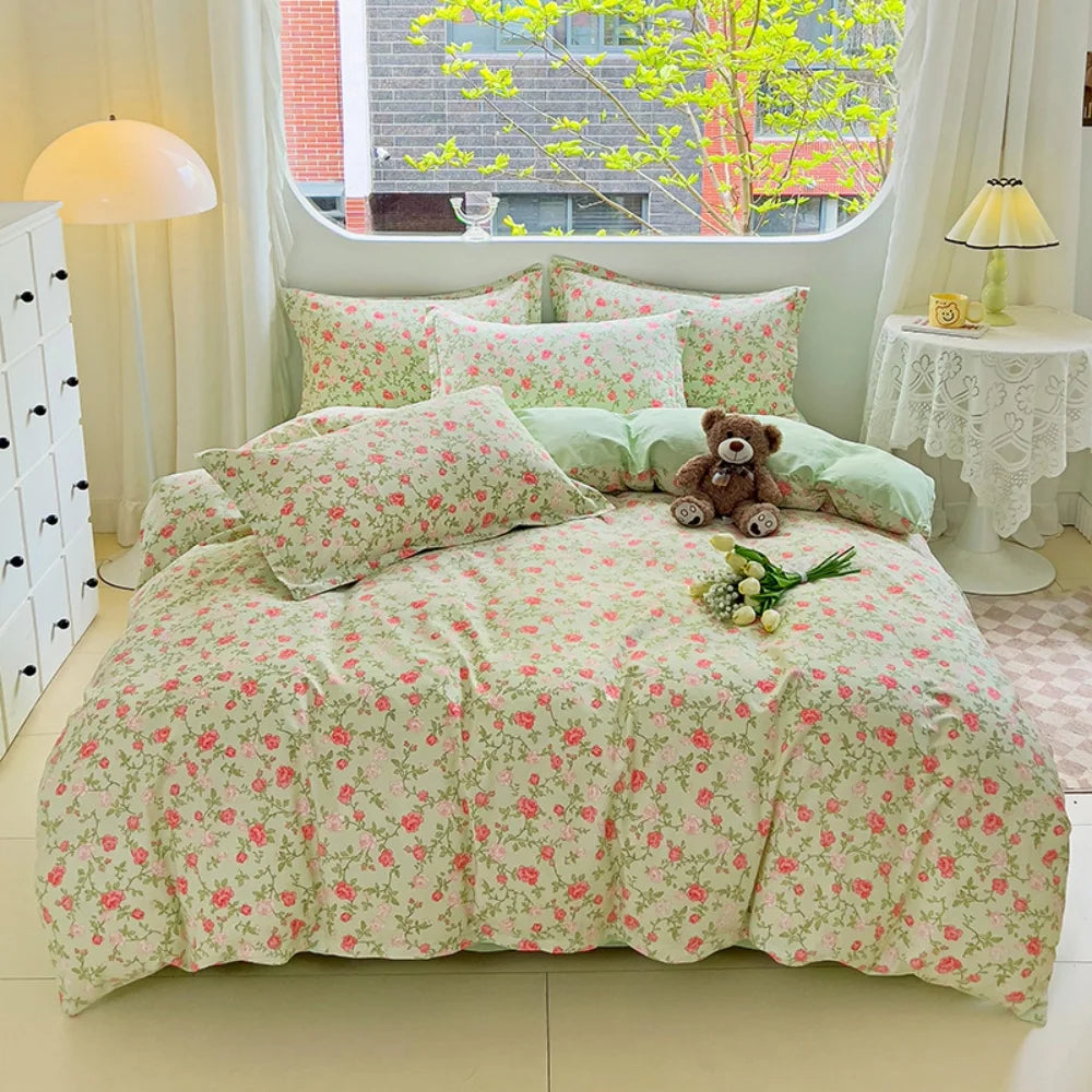 100% Cotton Four Piece Set Soft Skin-friendly Duvet Cover Set Single Couple Flower Printed Comforter Bedding Set for Adults Kids