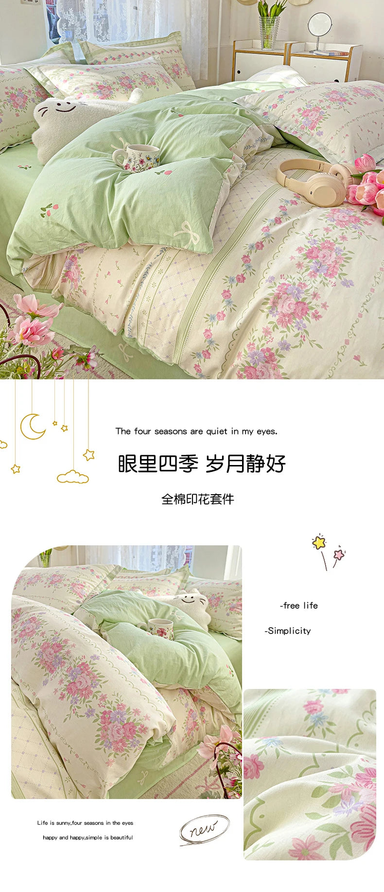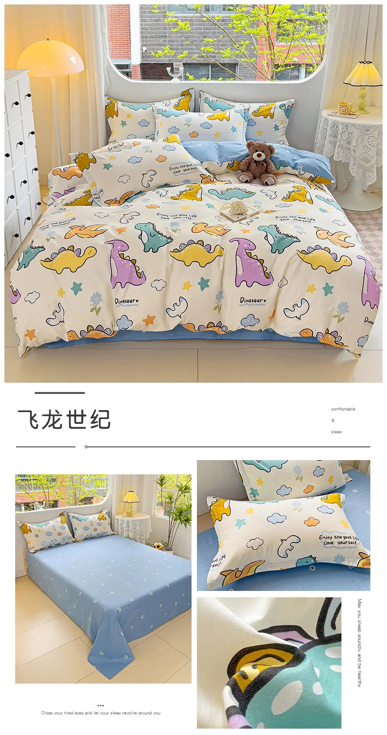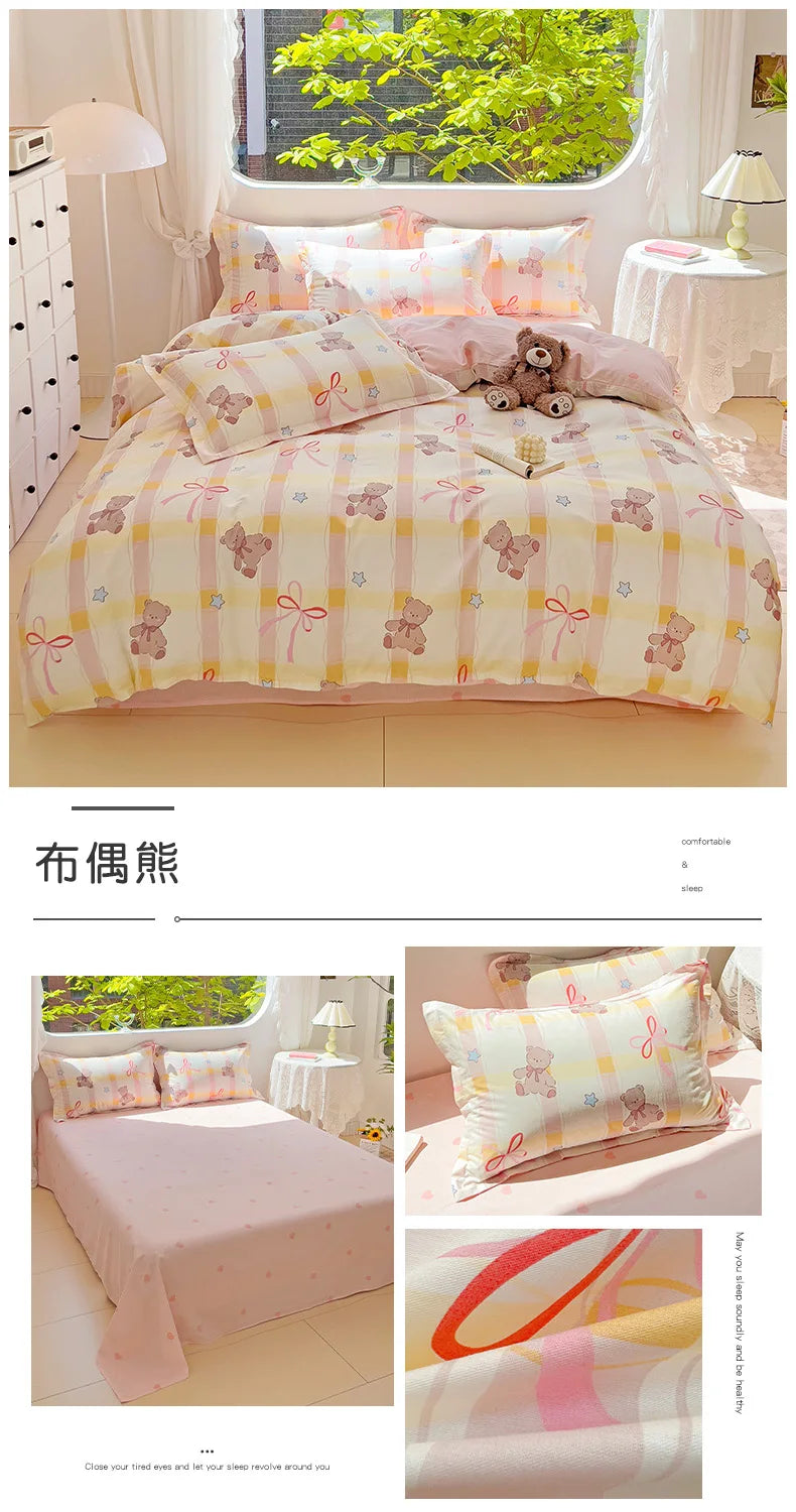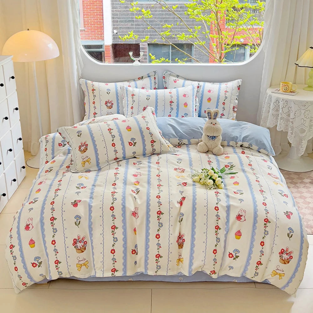 100% Cotton Four Piece Set Soft Skin-friendly Duvet Cover Set Single Couple Flower Printed Comforter Bedding Set for Adults Kids
