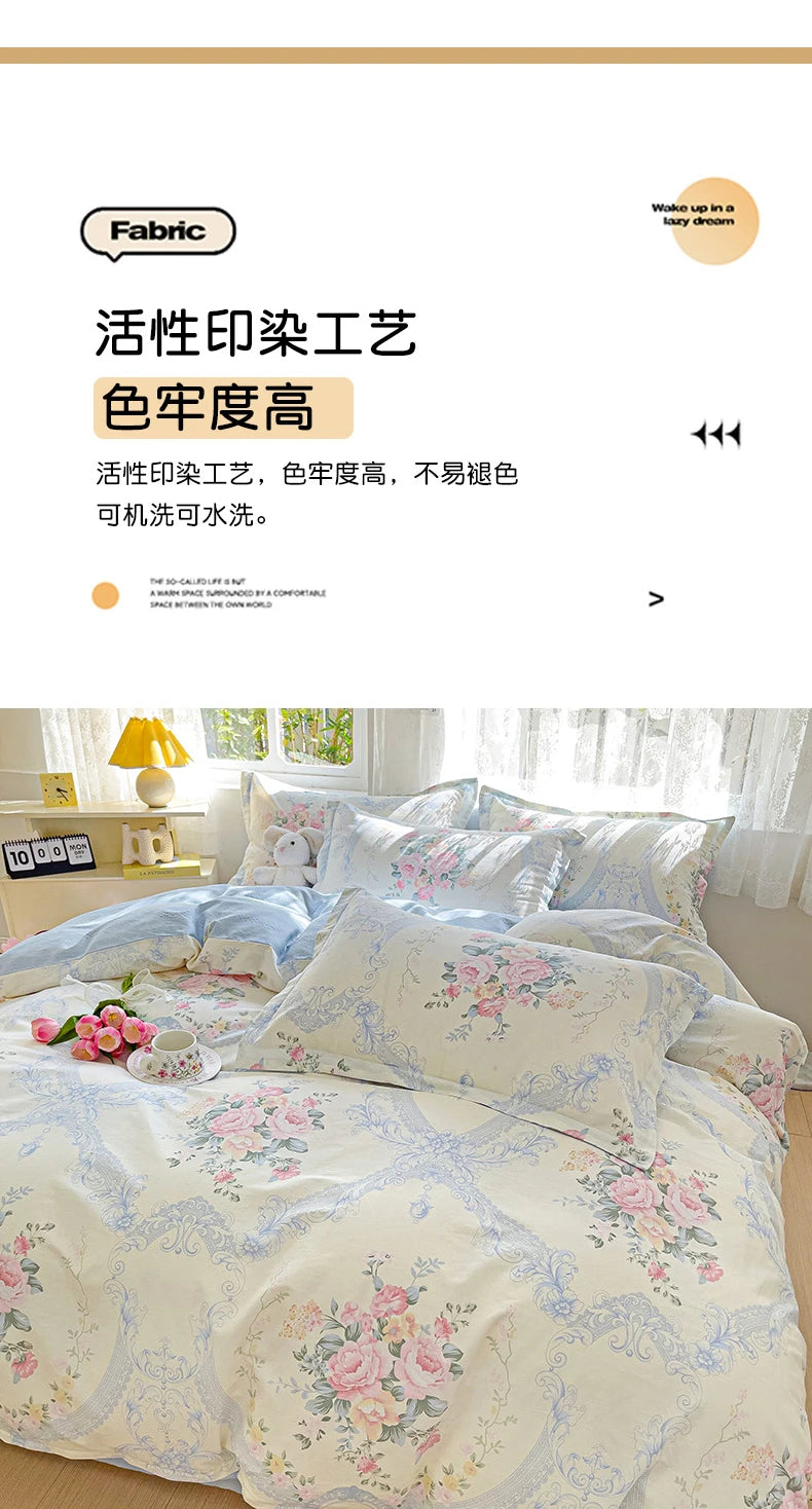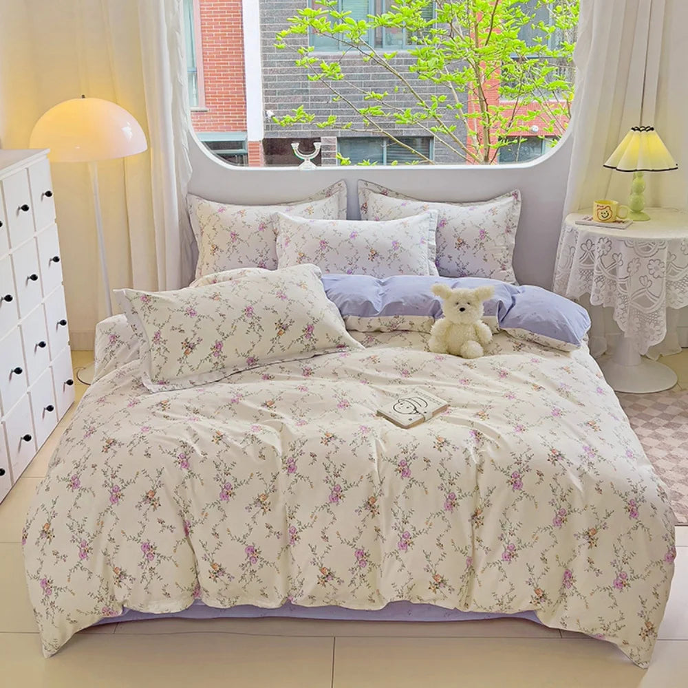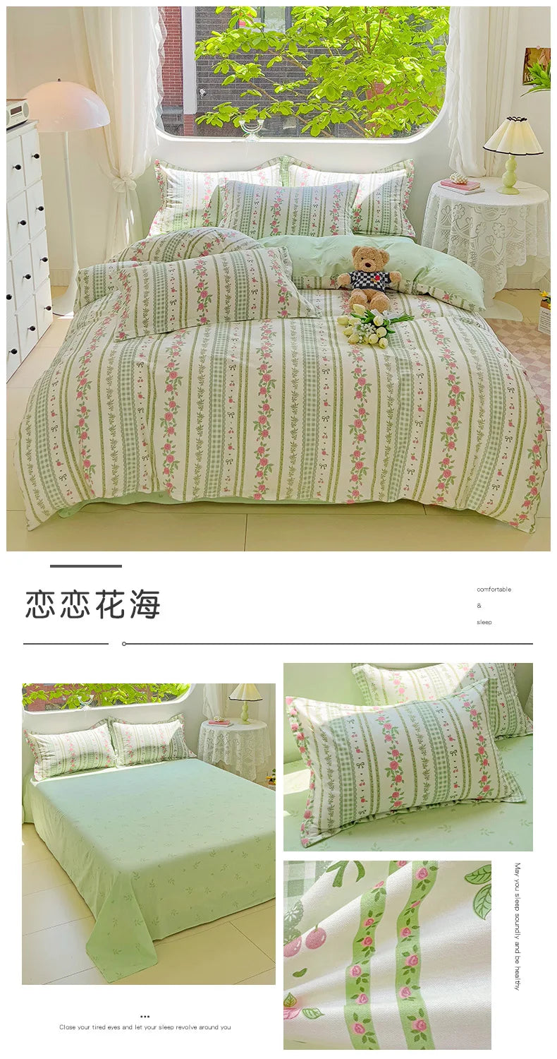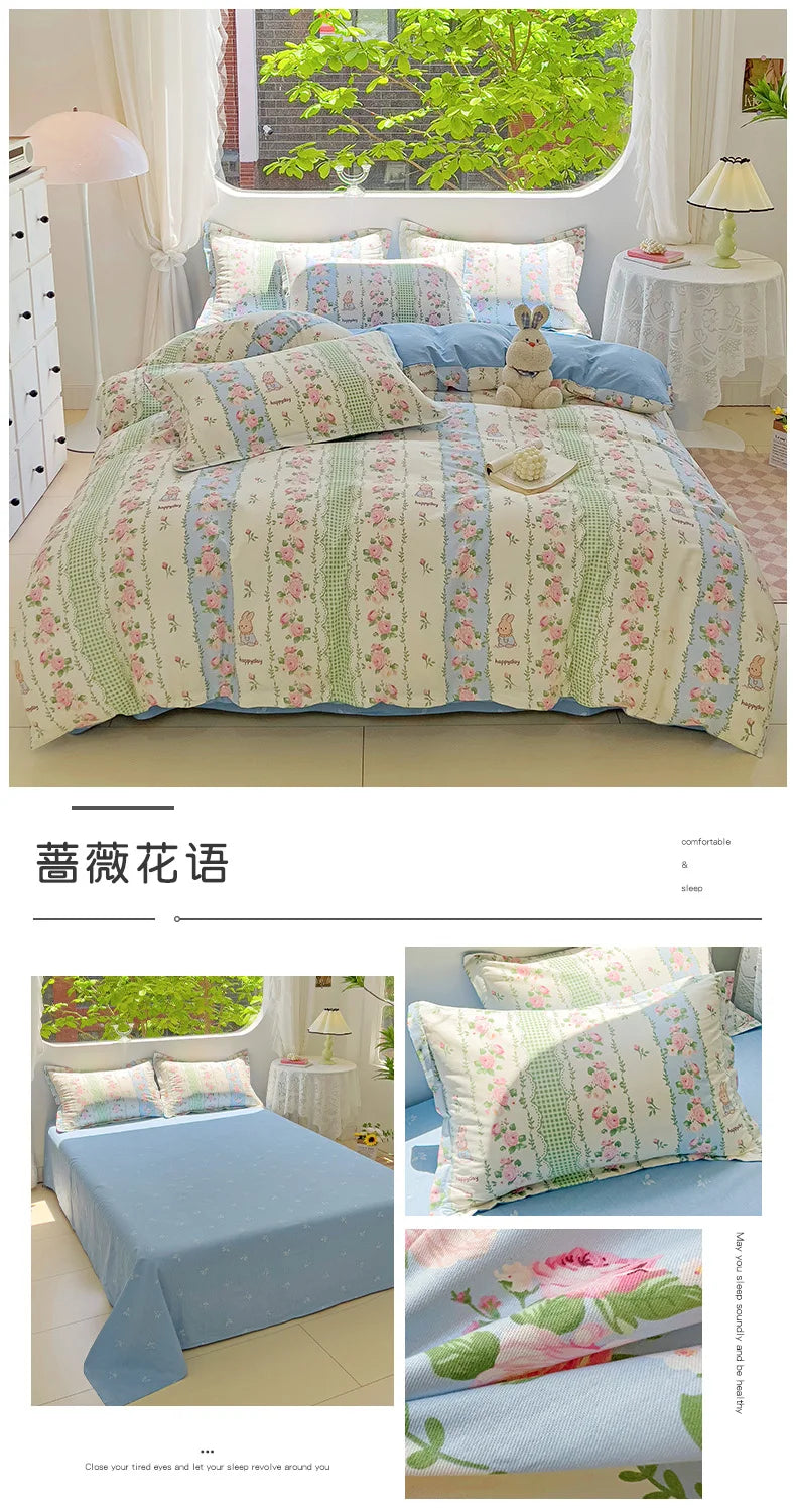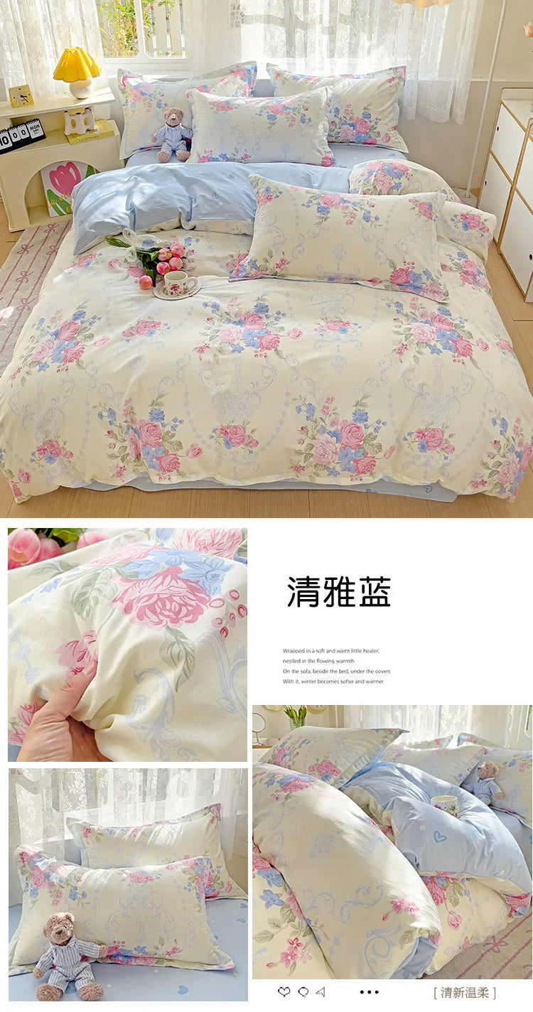 100% Cotton Skin-friendly Four Piece Set Soft Duvet Cover Set Single Couple Flower Printed Comforter Bedding Set for Adults Kids