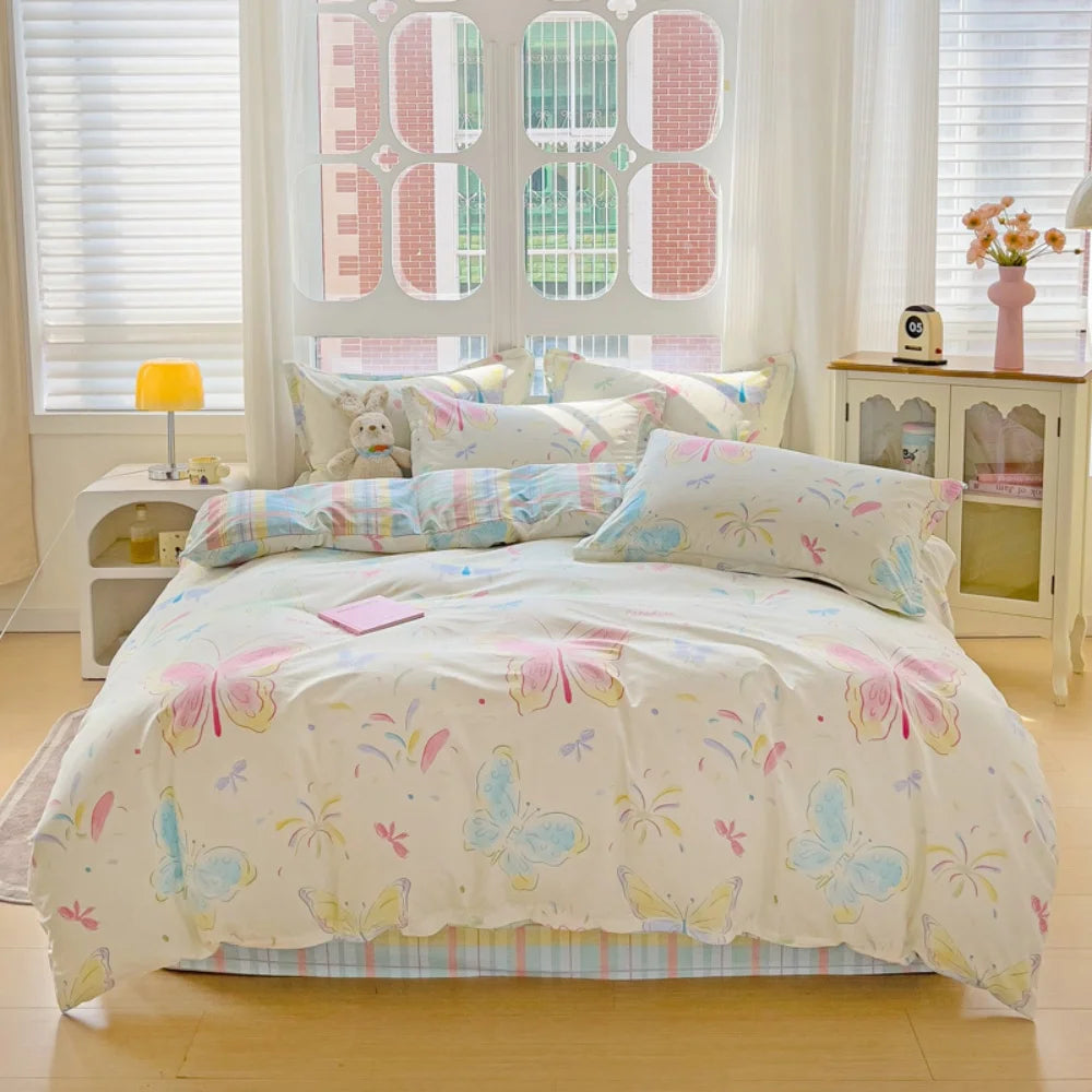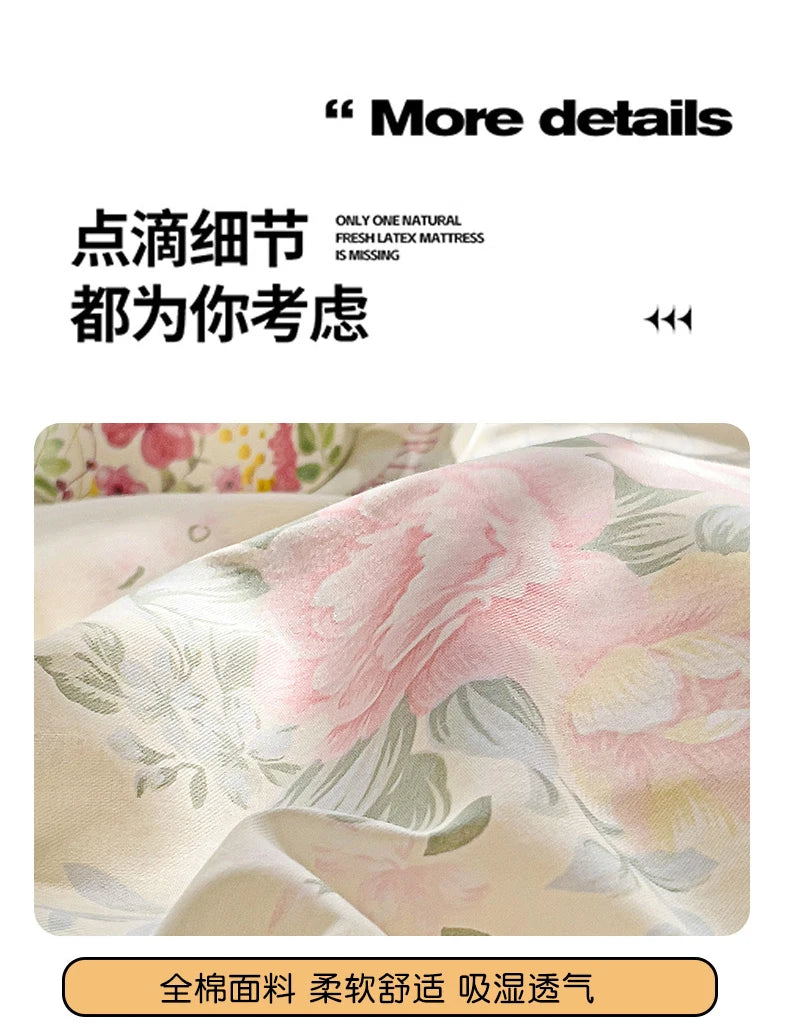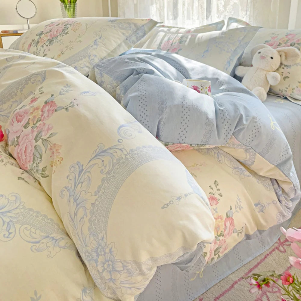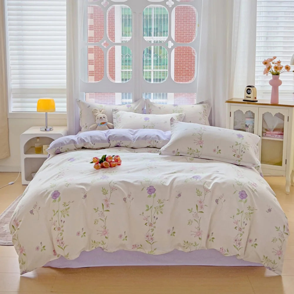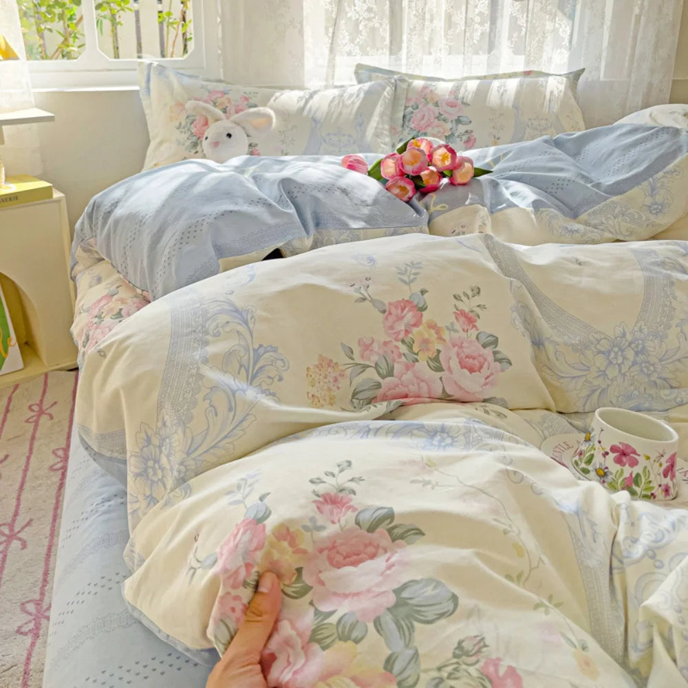 100% Cotton Skin-friendly Four Piece Set Soft Duvet Cover Set Single Couple Flower Printed Comforter Bedding Set for Adults Kids