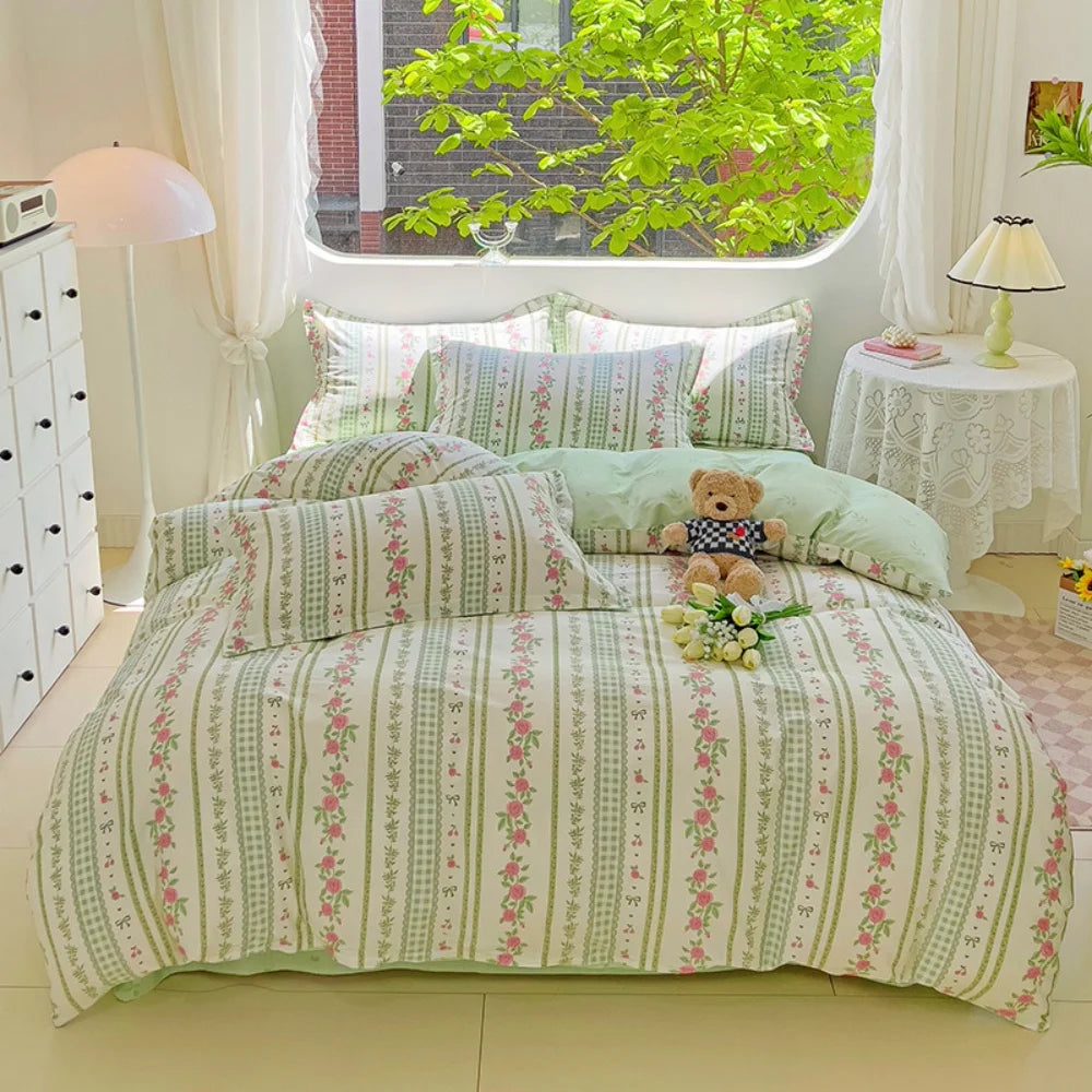 New Stripe Series Quilt Cover Skin Friendly 4-piece Bedding Set Pillow Case with Bed Sheet Four General 150x200 200x230