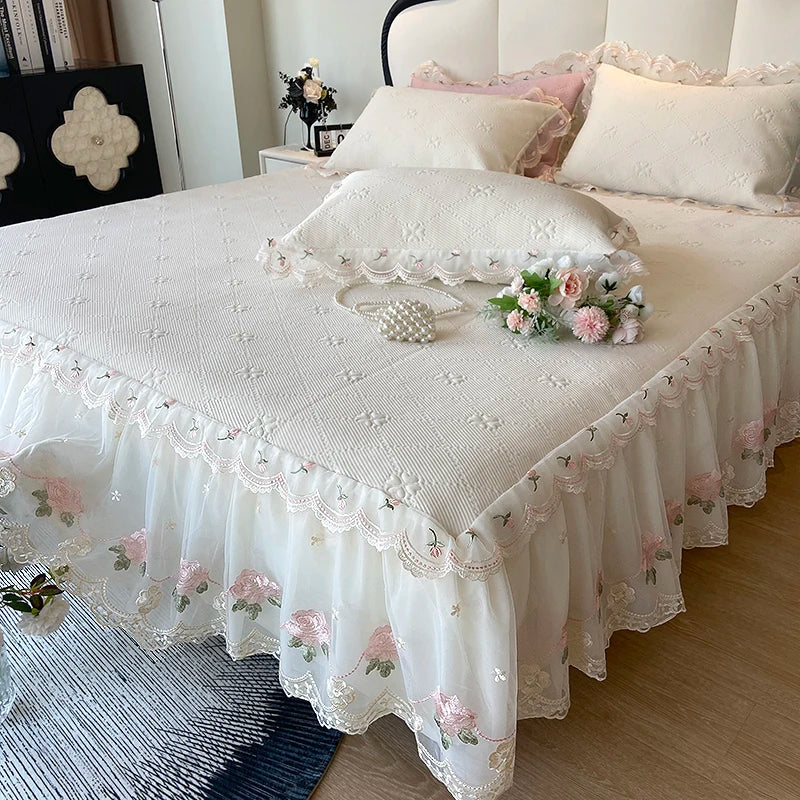 2025 Summer Cool Bed Skirt Sheet Princess Bed Skirt Mattress Ruffled Lace Bedsheet Not Stuffy With Pillowcases Twin Queen Size