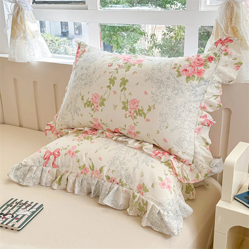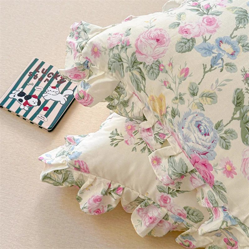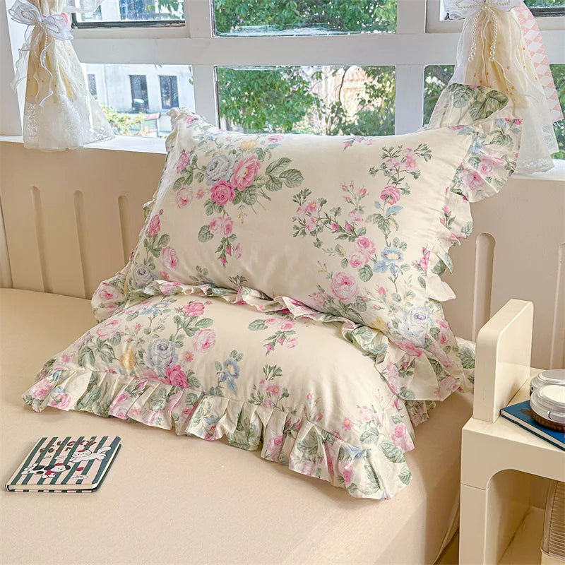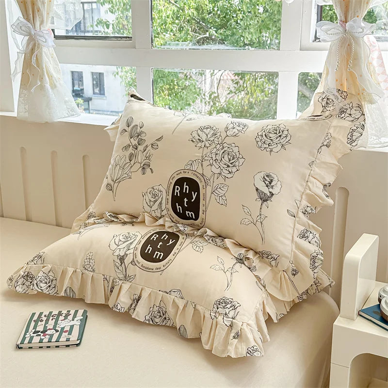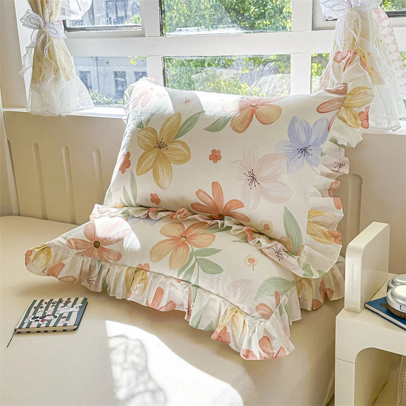 2pcs Flower Prints Ruffles 100% Cotton Pillowcases 48x74cm Sizes Cushion Cover for Bed Floral Style Adults Kids Pillowslip 베개커버