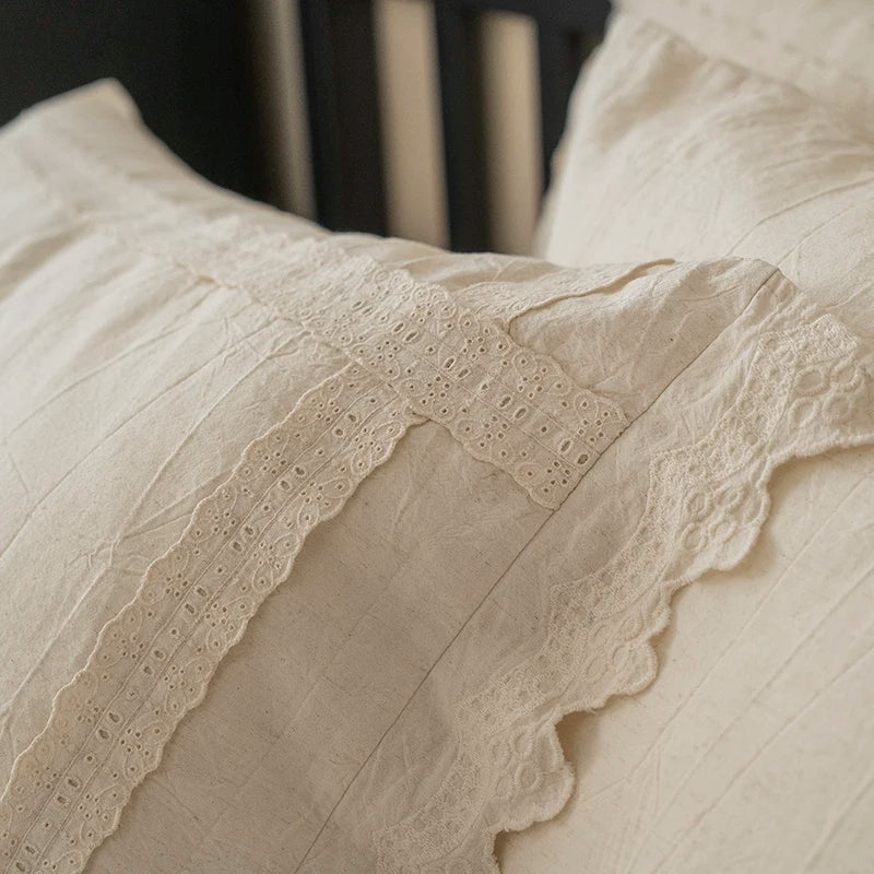 4/5Pcs French Vintage Bedding Sets 85% Cotton and 15% Linen Stitch Embroidery Double Bed Sheet Coverlet Quilt Cover Pillowcases