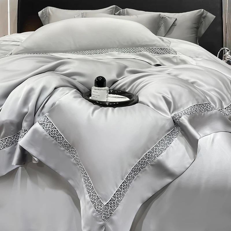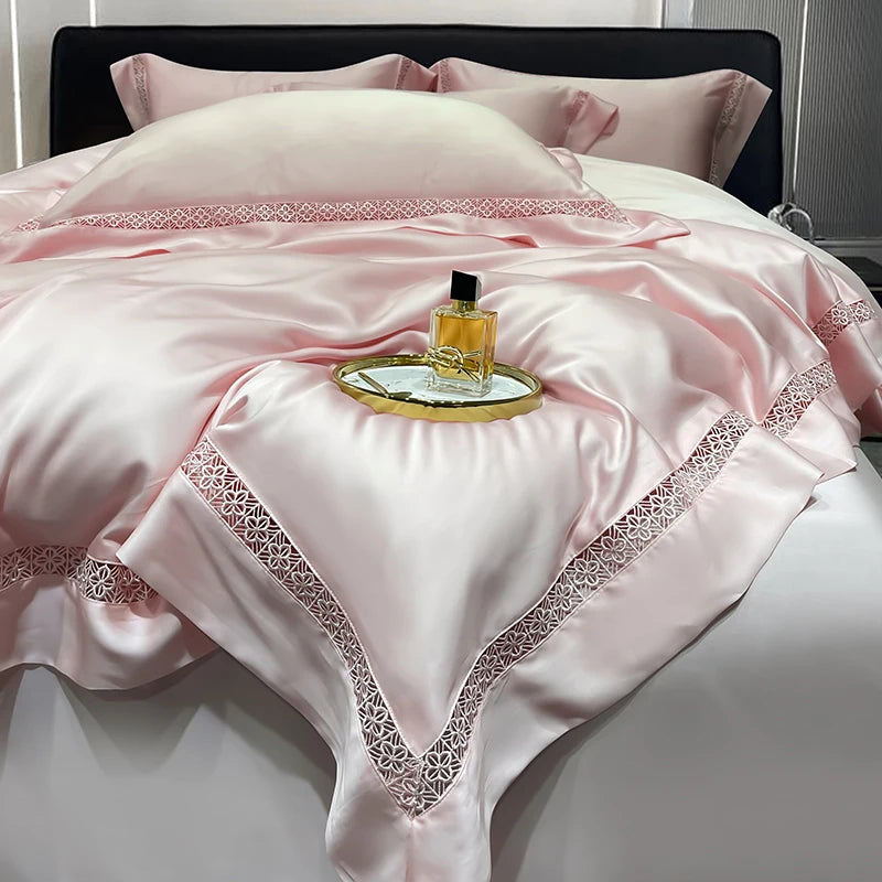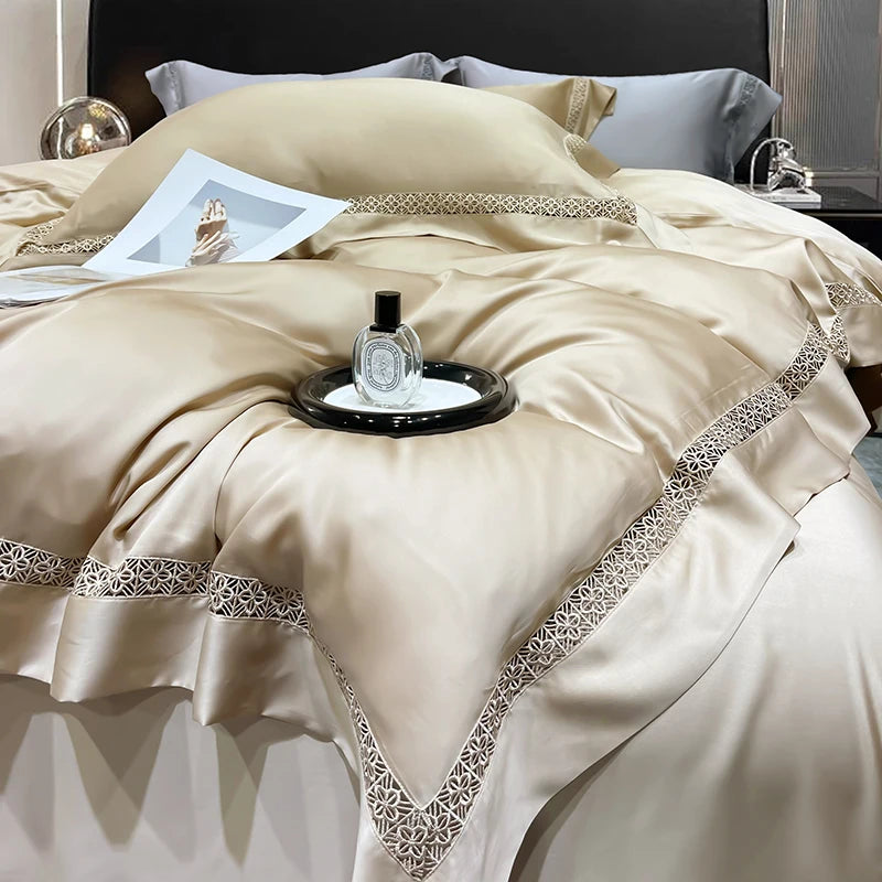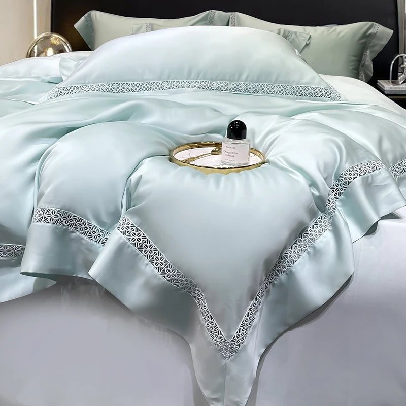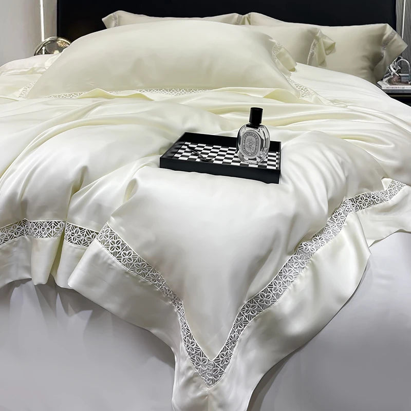 800TC Lyocell Soft Silky Cooling Summer Luxury Hollow Wide Edge Bedding Set Duvet Cover Bed Sheet/Fitted Sheet Pillowcases 4Pcs