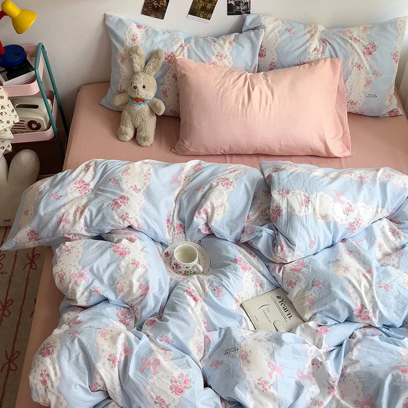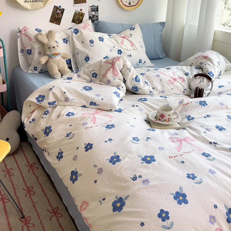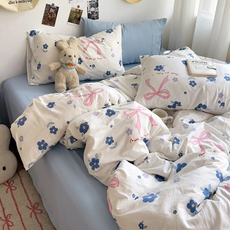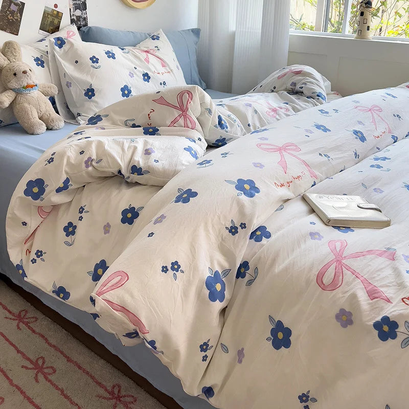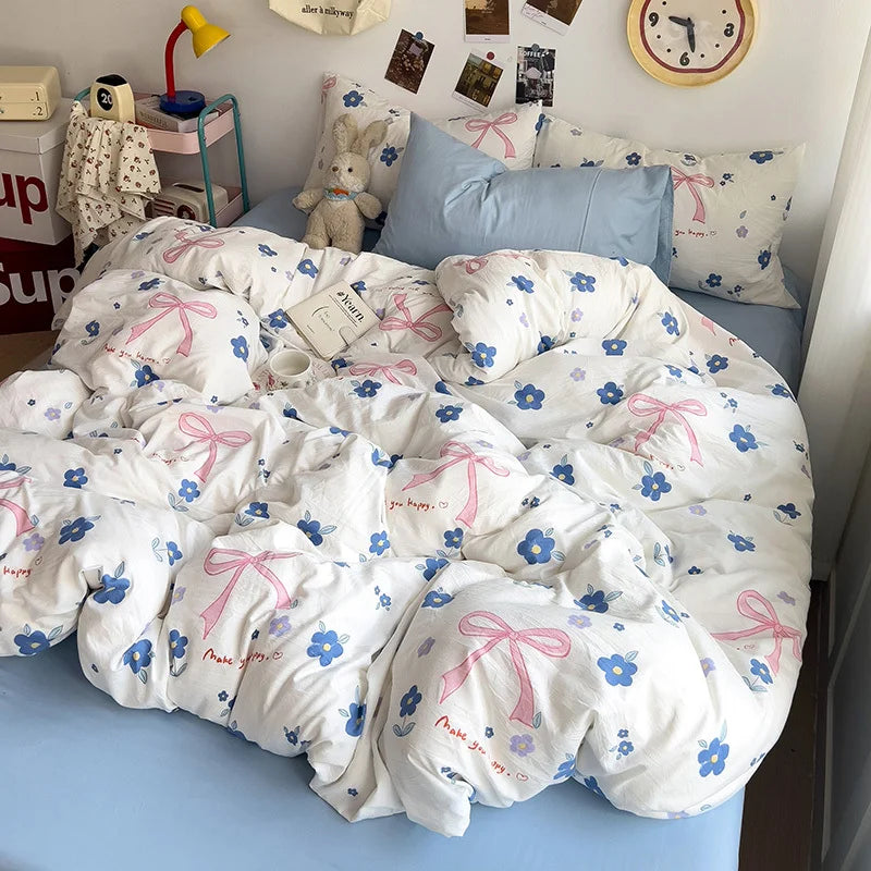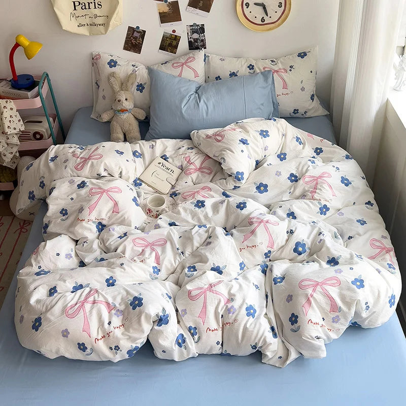 Bed Linen Bedding Set A-Class Washed Cotton Four-Piece Bed Sheets Set Comfort Sets Solid Couple Bed Quilt Cover Home Textile