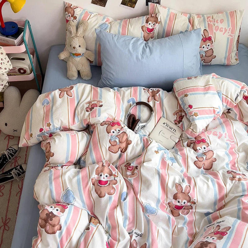 100% cotton Soft Bedding Set Stripe Printing Duvet Cover with Pillow Case Bedclothes Bedspread Pillowcases Comforter Sets