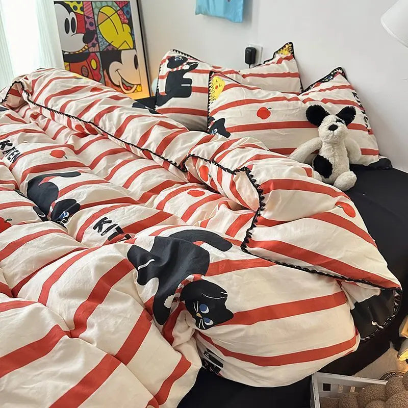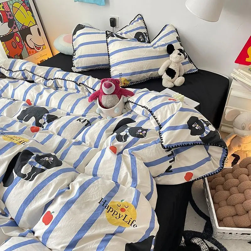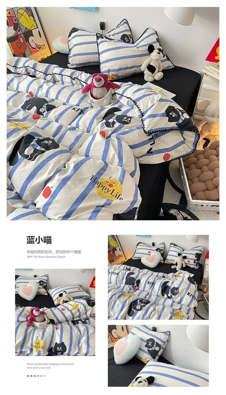 New Stripe Series Quilt Cover Skin Friendly 4-piece Bedding Set Pillow Case with Bed Sheet Four General 150x200 200x230