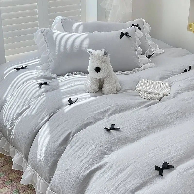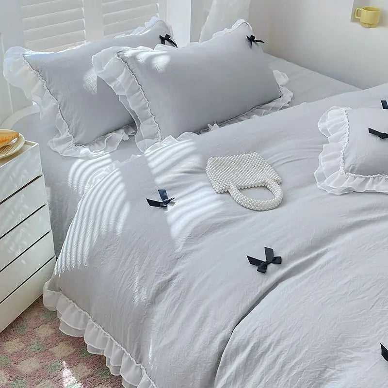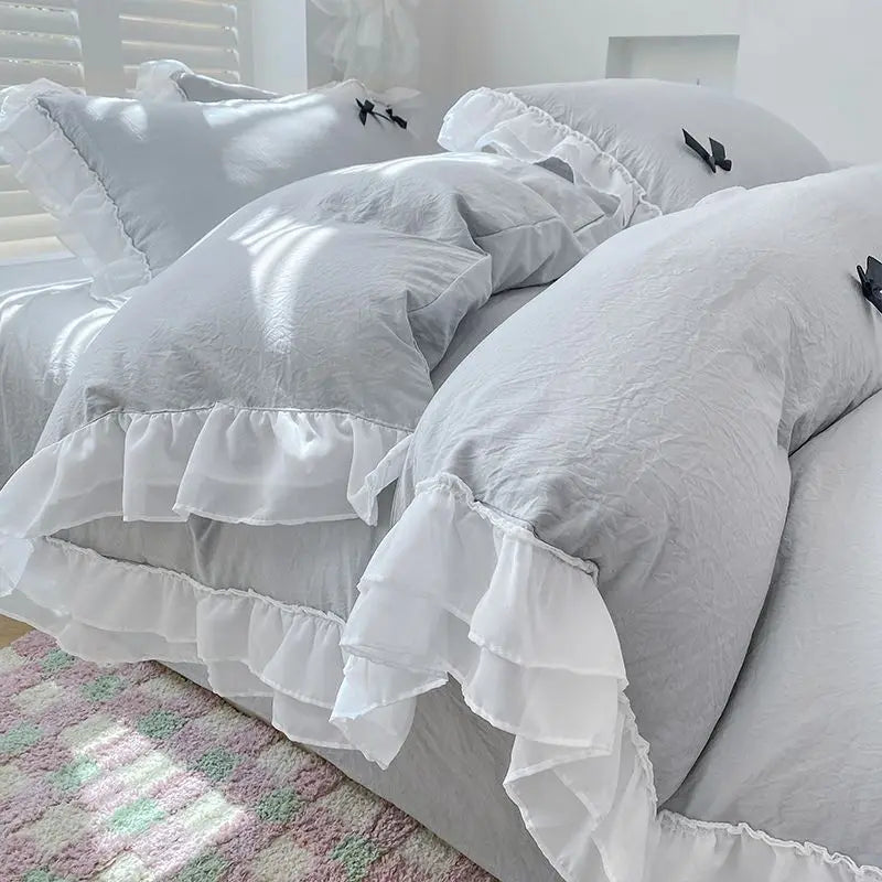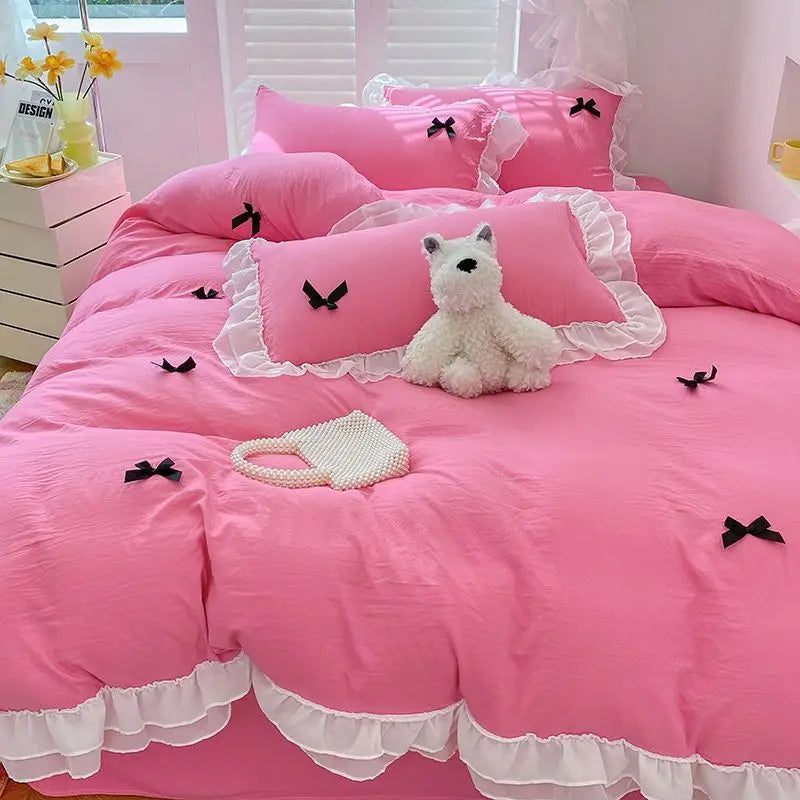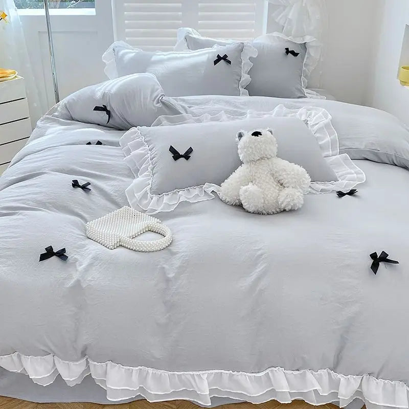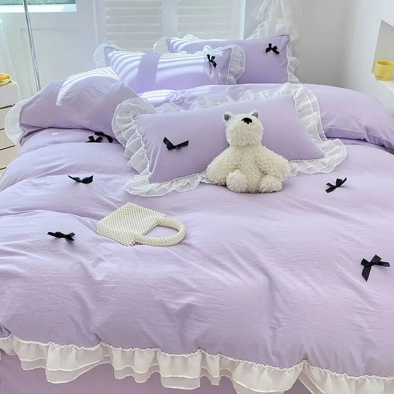 Bedding Set INS Girls Princess Soft 2024NEW Washed Cotton Bed Sheet Queen King Size Duvet Set Comforter Set Duvet Set Bed Linens