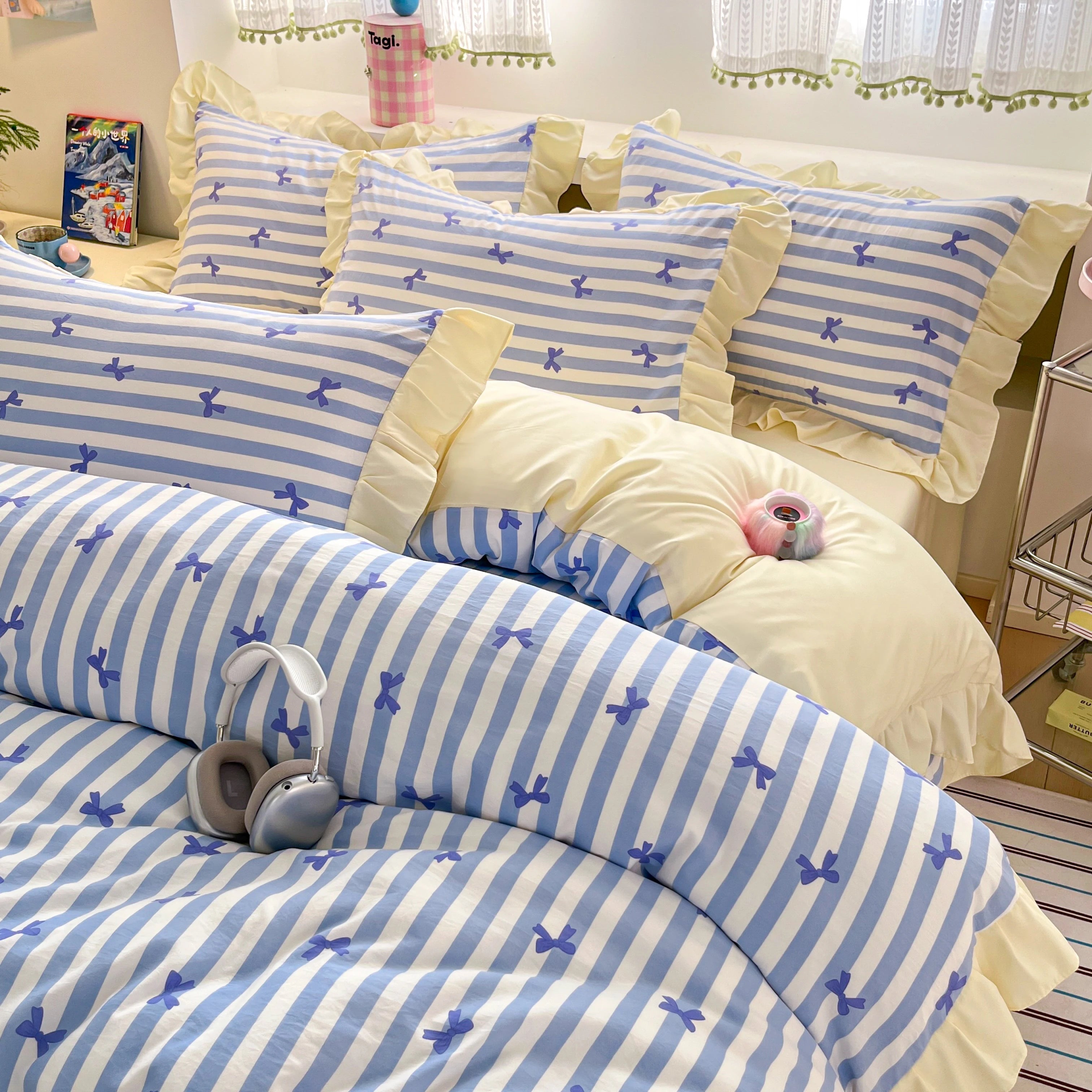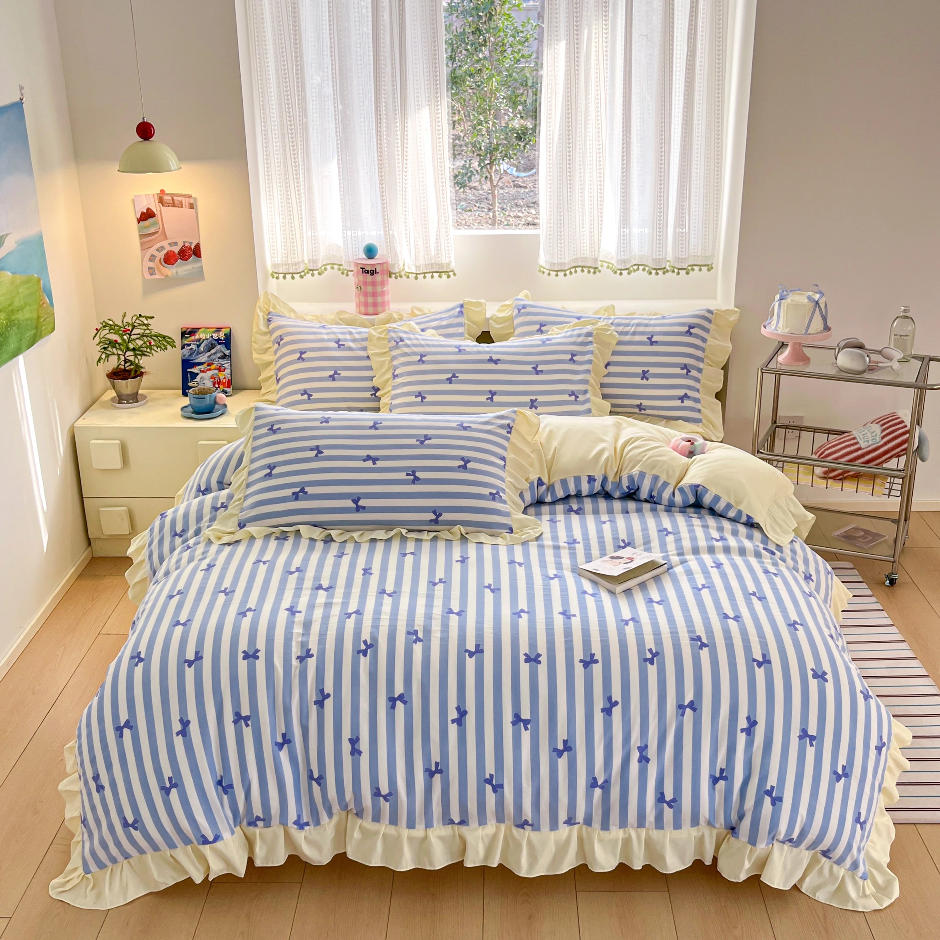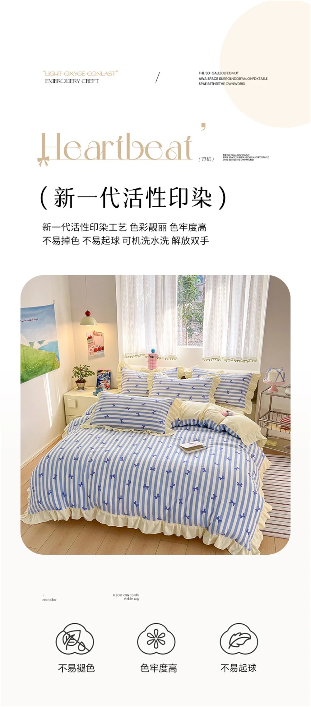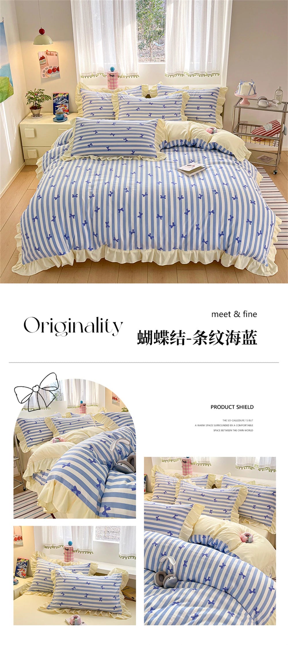 New Stripe Series Quilt Cover Skin Friendly 4-piece Bedding Set Pillow Case with Bed Sheet Four General 150x200 200x230