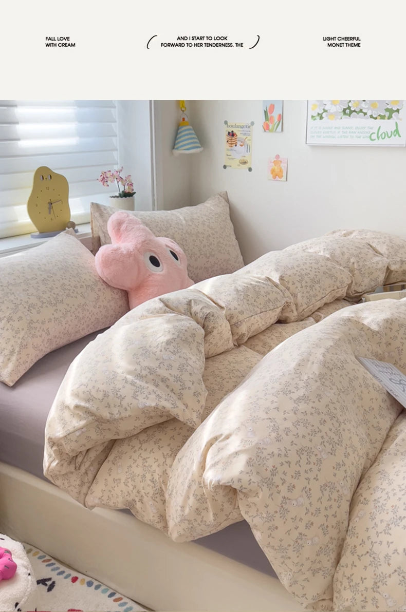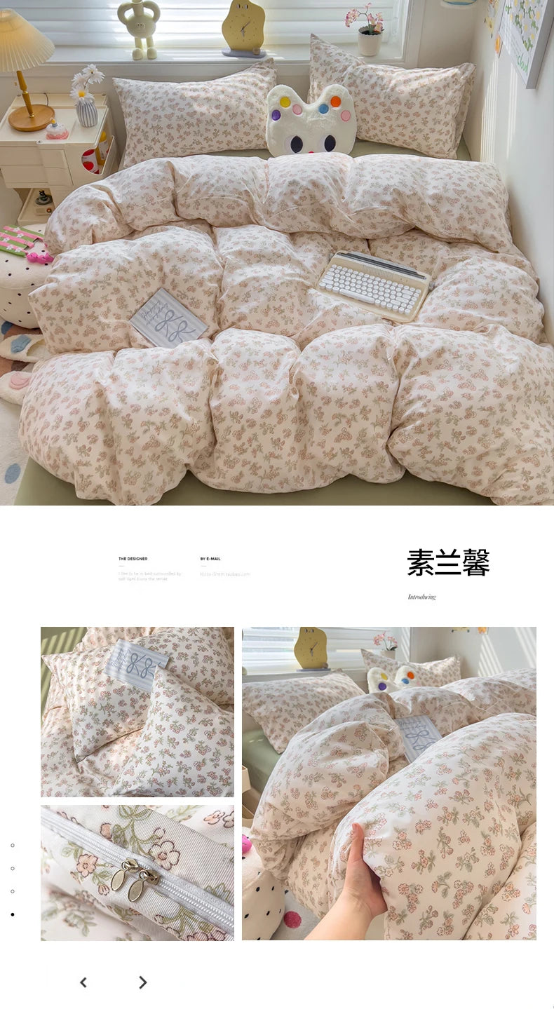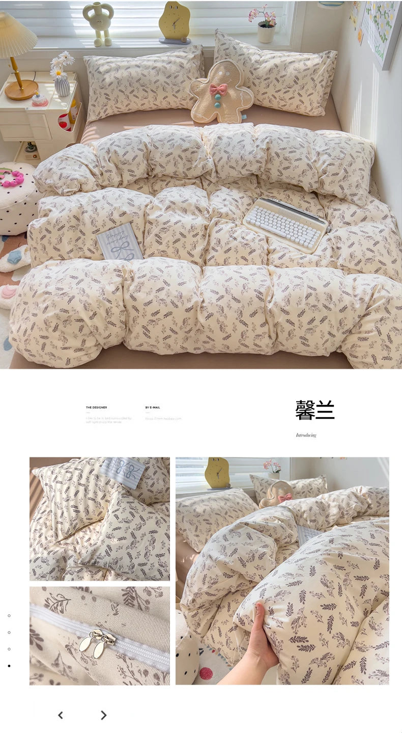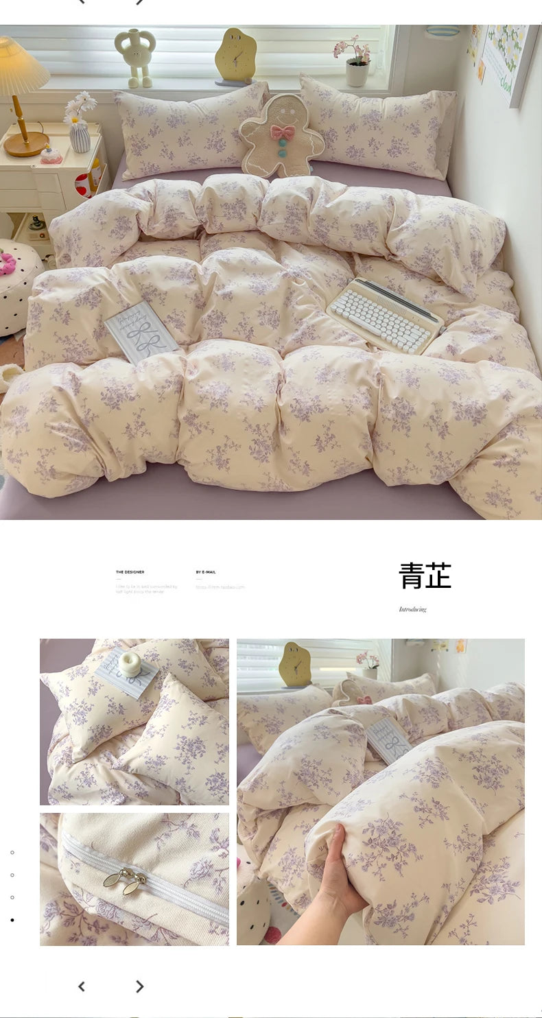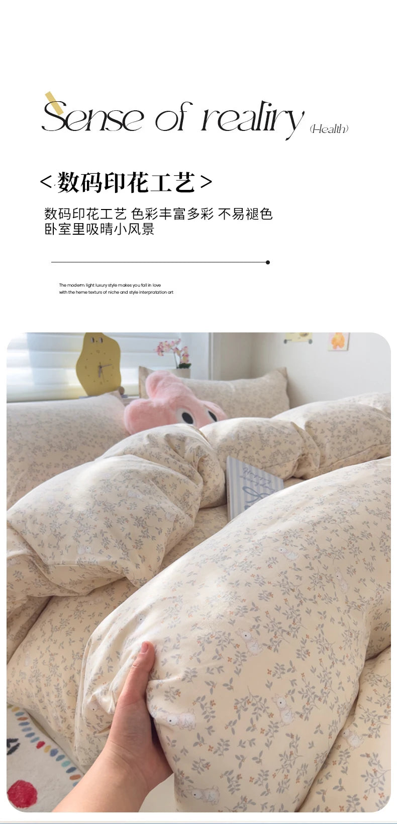 Class A Double Yarn Bedding Set Quilt Comforter Duvet Cover Set Printed Cotton Bedspread Skin Friendly Breathable Four-Piece Set