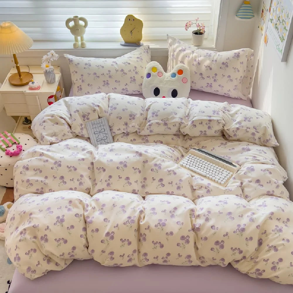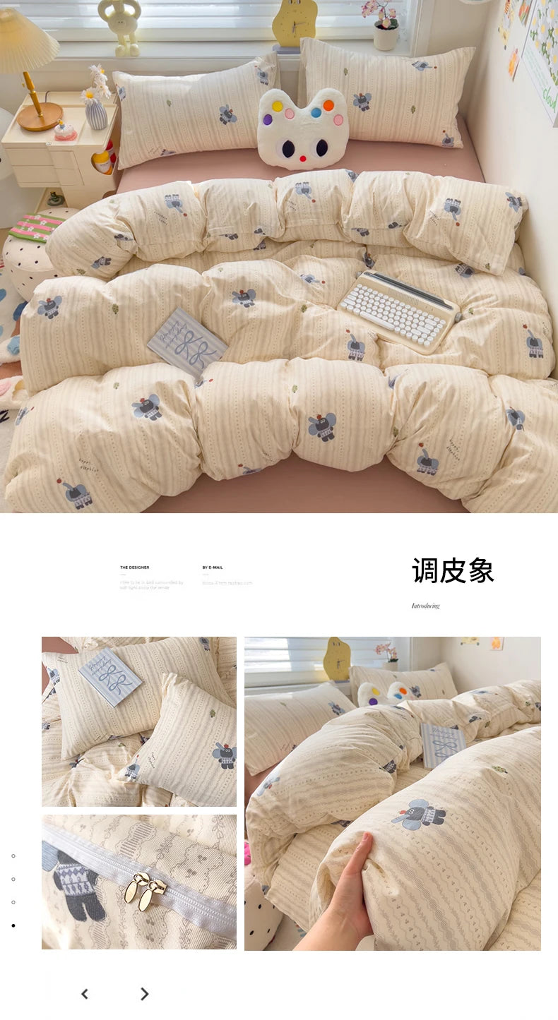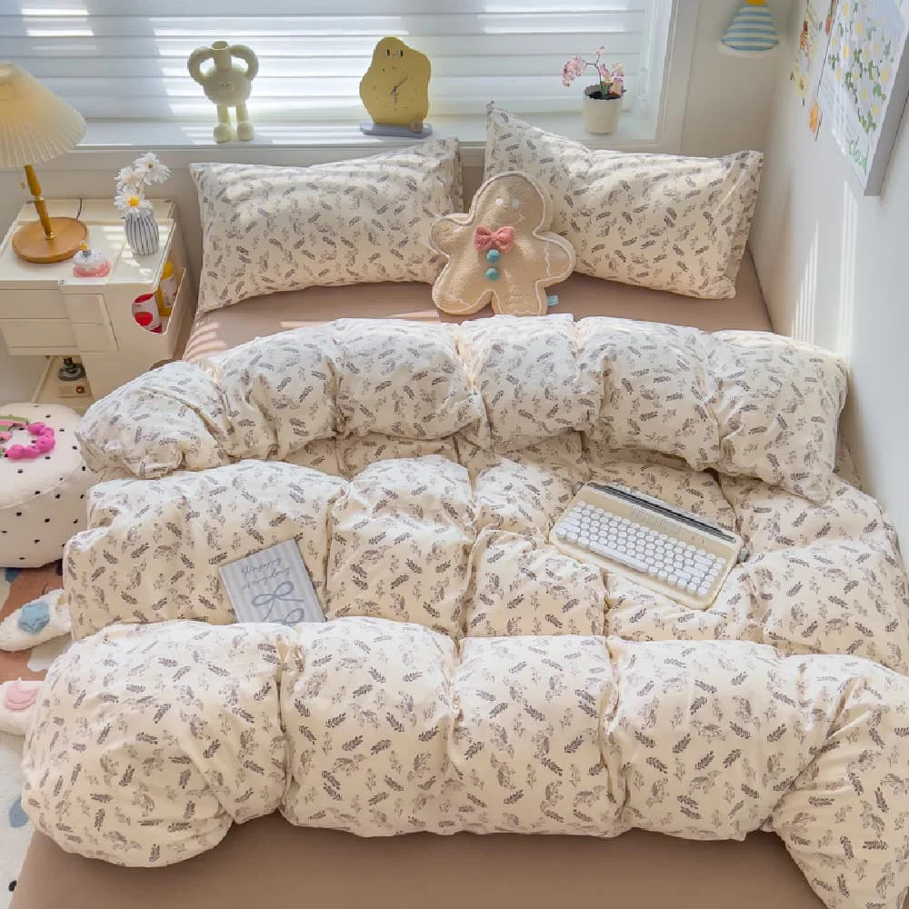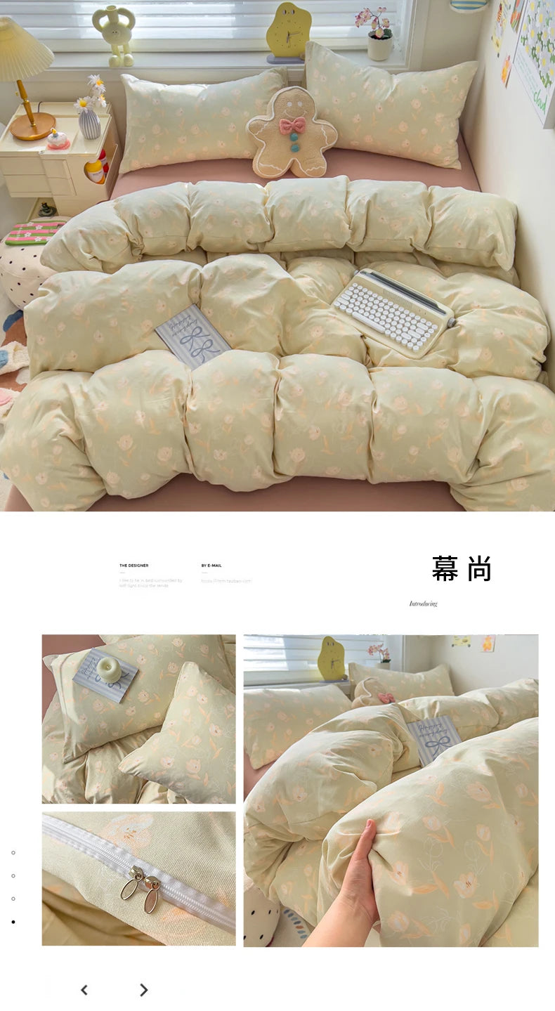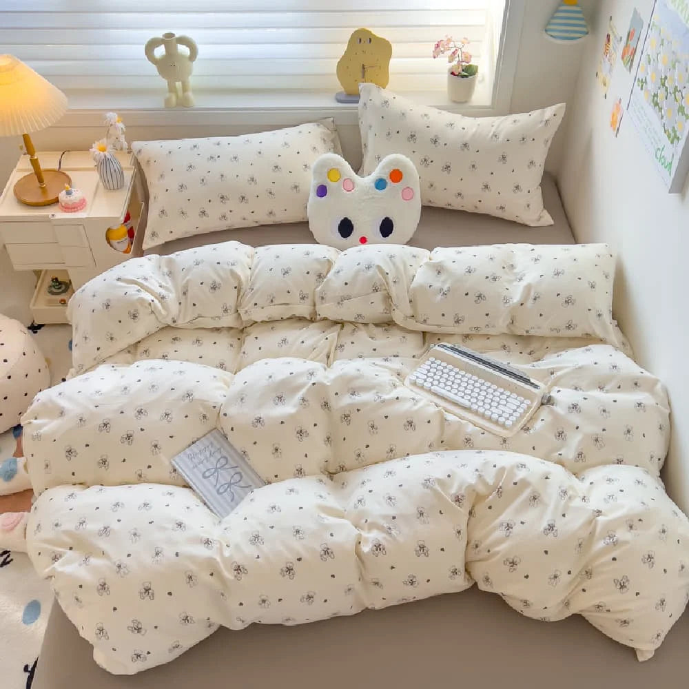 Class A Double Yarn Bedding Set Quilt Comforter Duvet Cover Set Printed Cotton Bedspread Skin Friendly Breathable Four-Piece Set