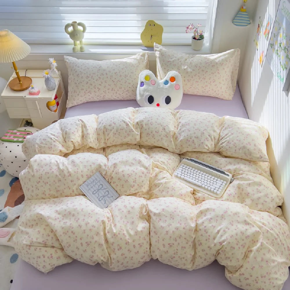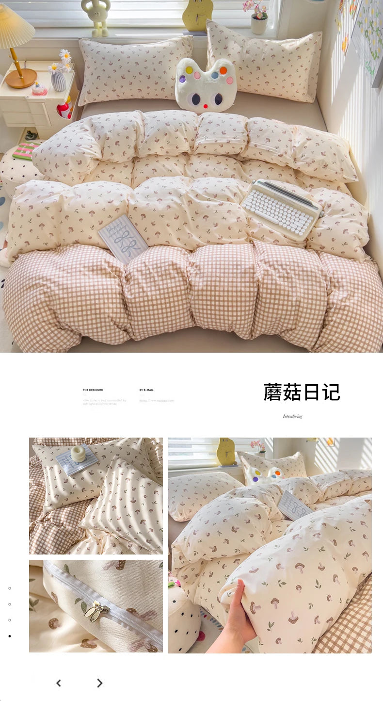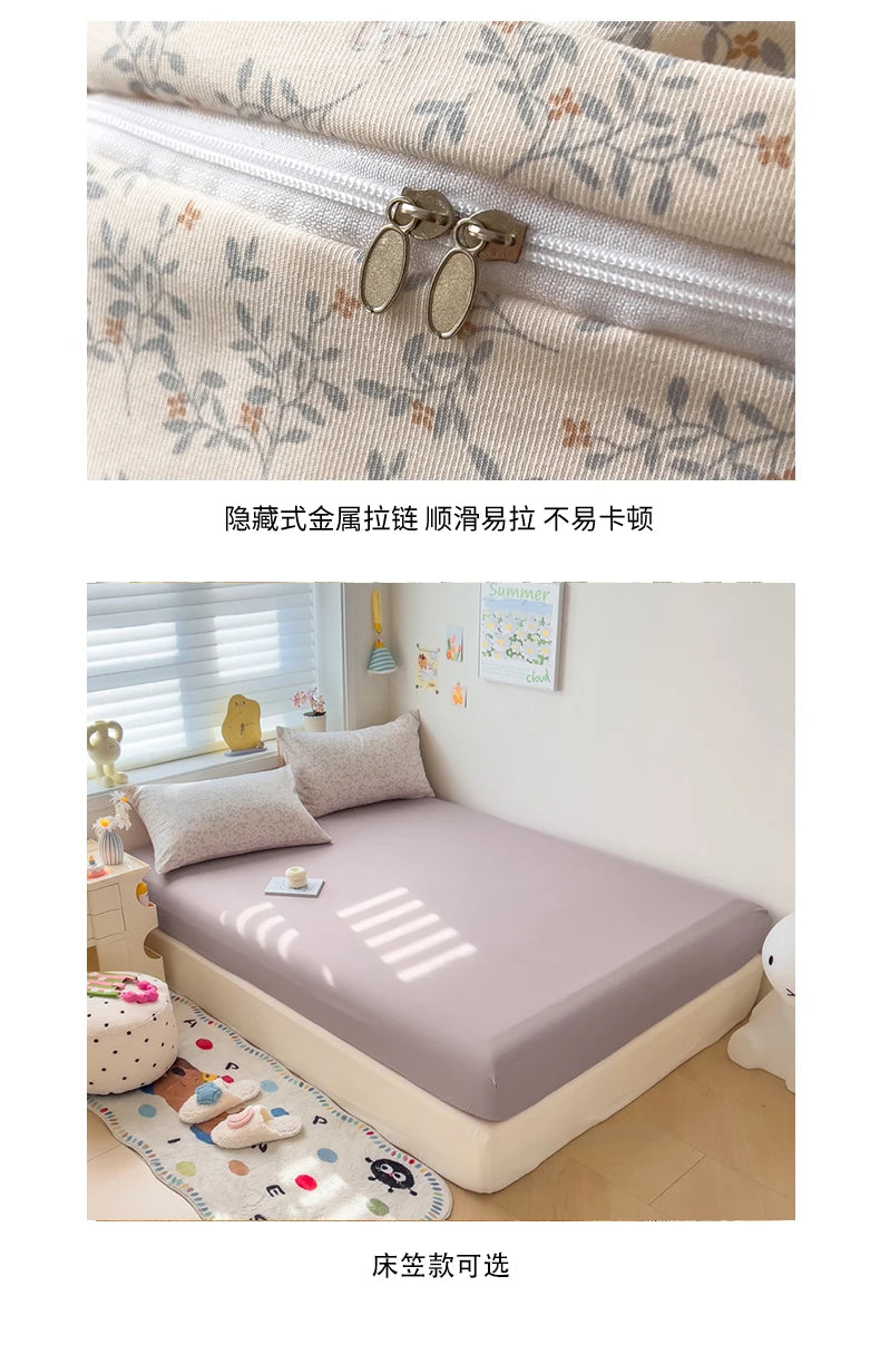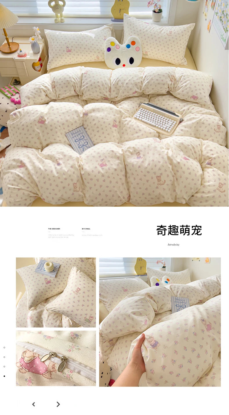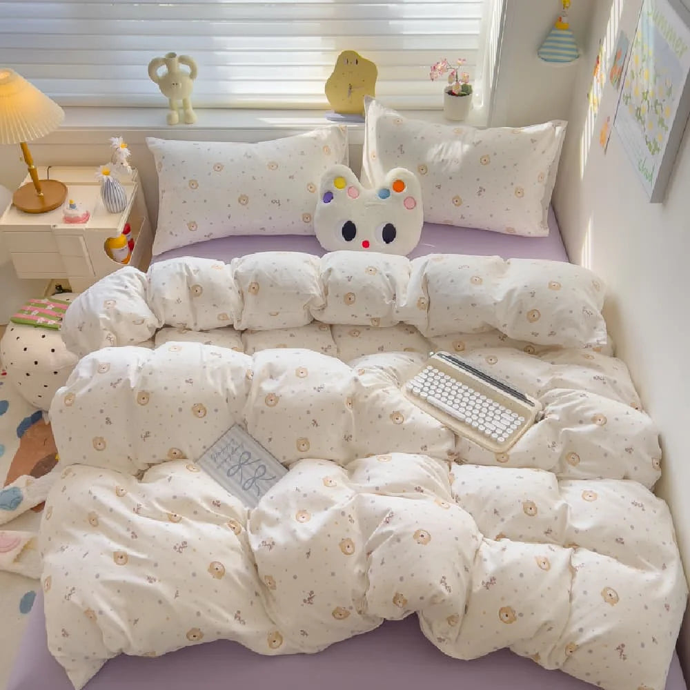 Class A Double Yarn Bedding Set Quilt Comforter Duvet Cover Set Printed Cotton Bedspread Skin Friendly Breathable Four-Piece Set