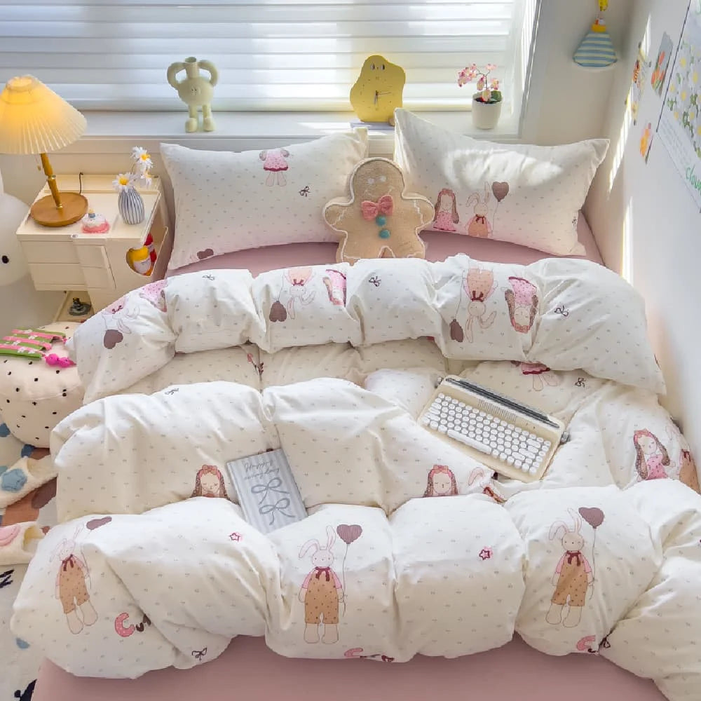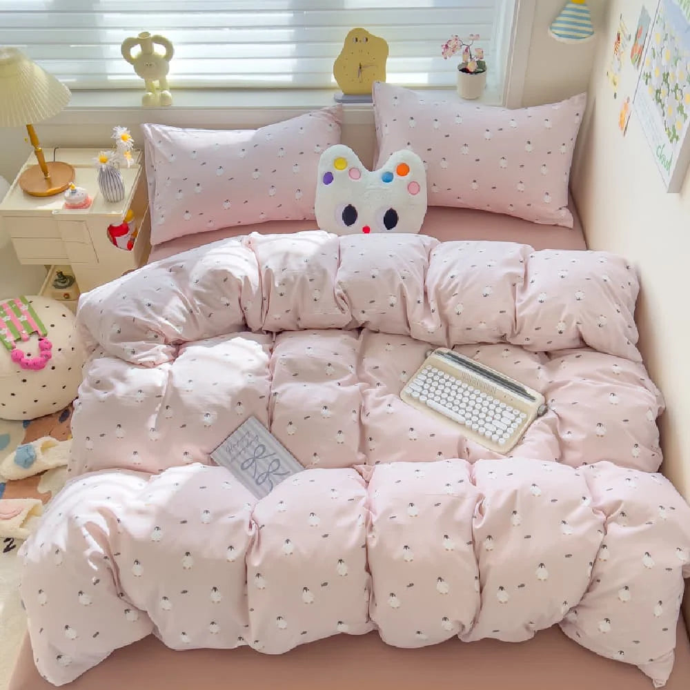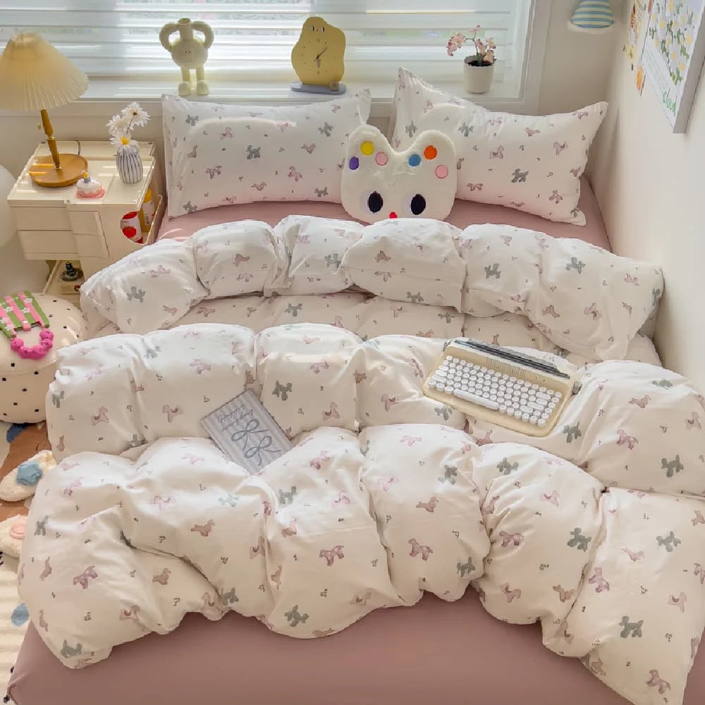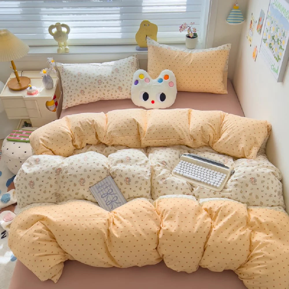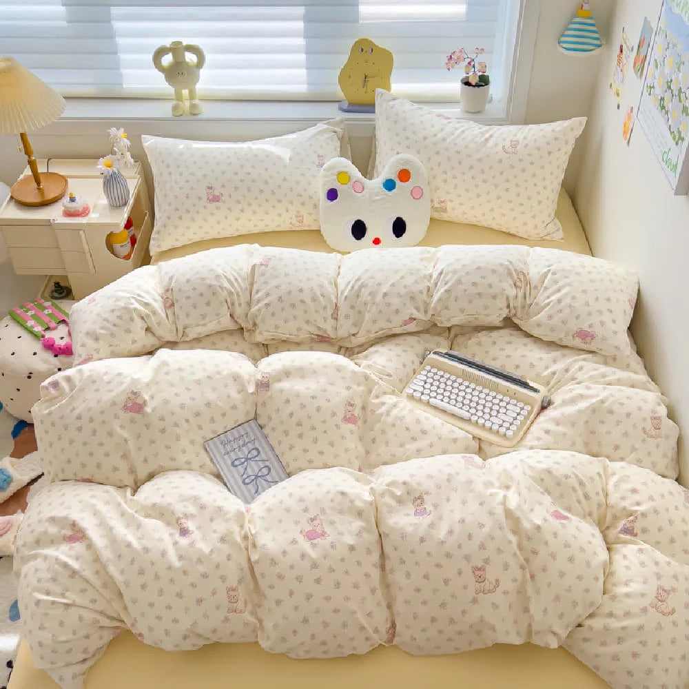 Class A Double Yarn Bedding Set Quilt Comforter Duvet Cover Set Printed Cotton Bedspread Skin Friendly Breathable Four-Piece Set