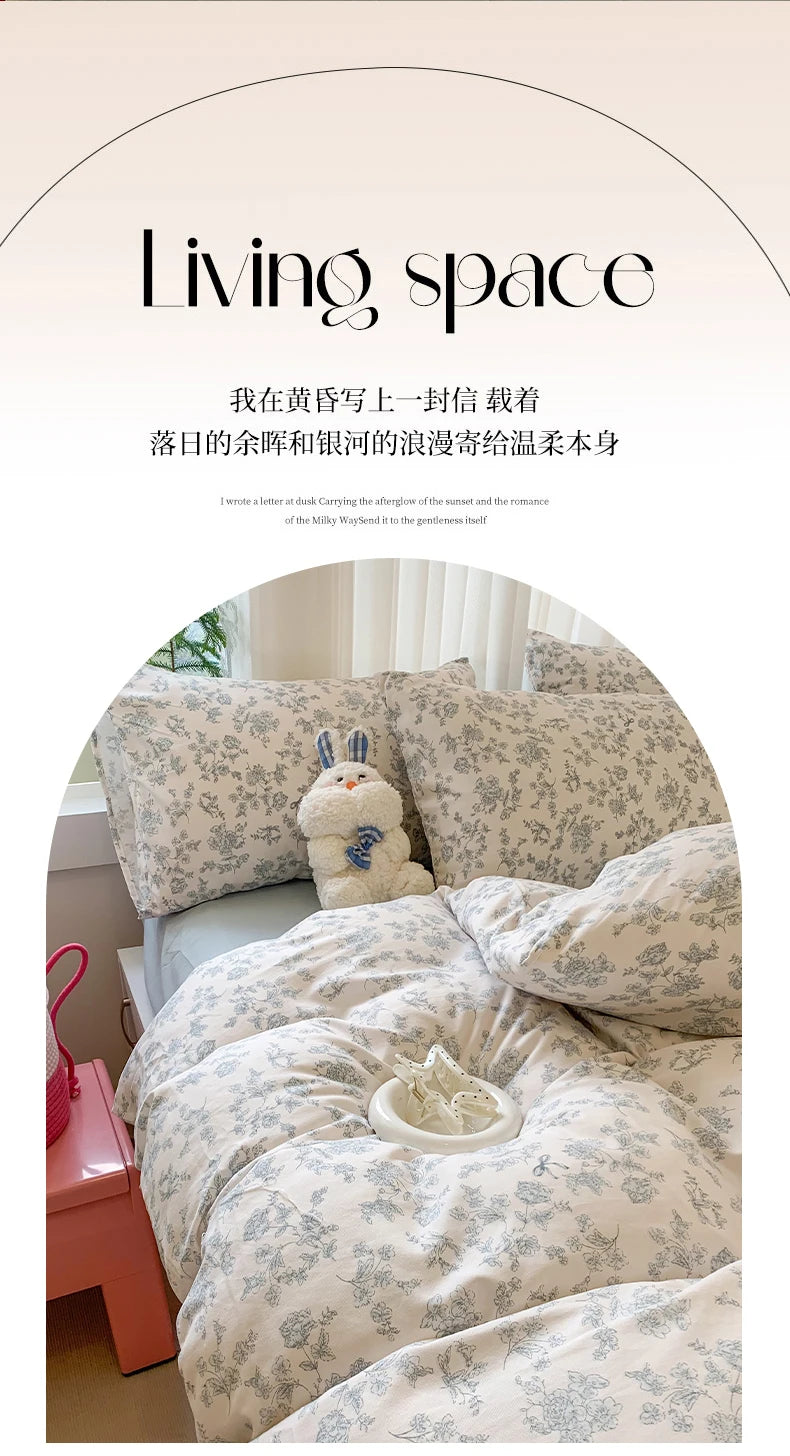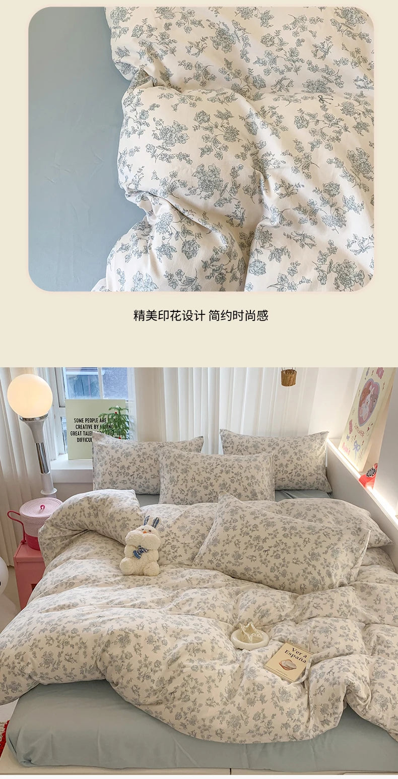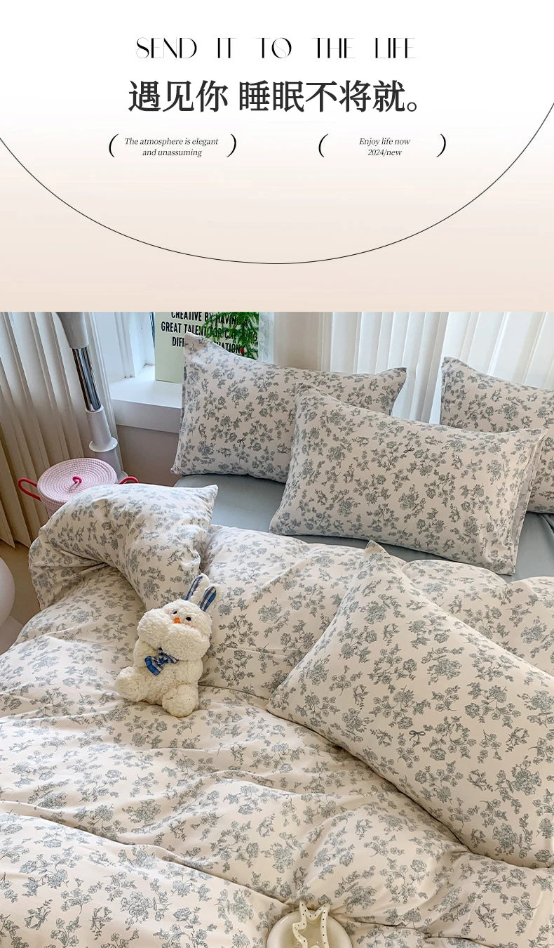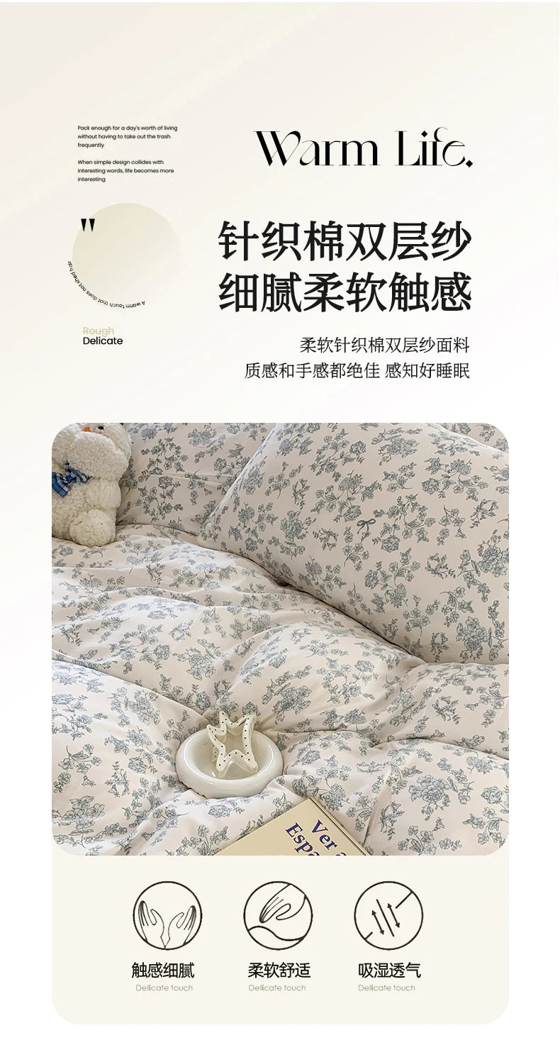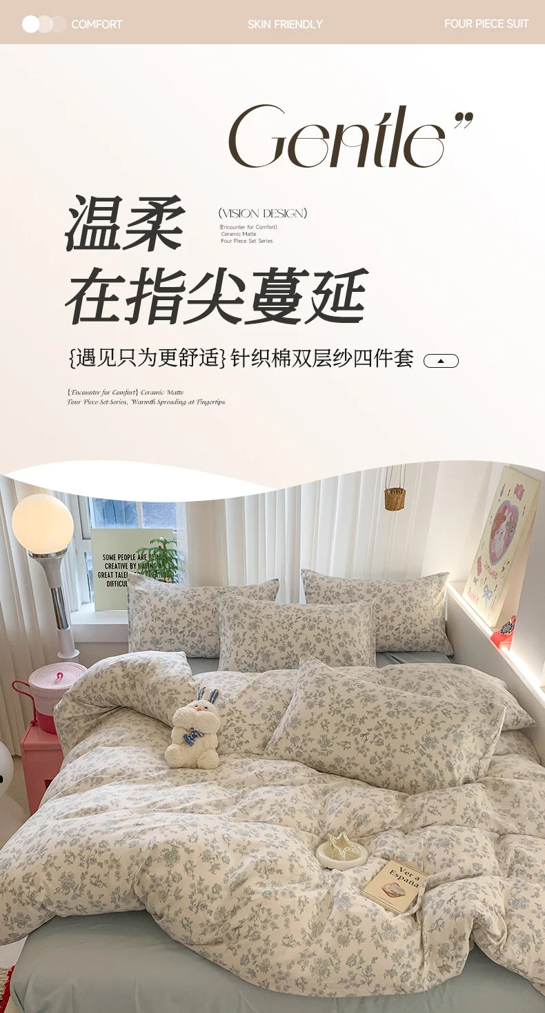Class A Knitted Bedding Set Floral Style Bed Linen Set Soft Double Yarn Four-Piece Set Quilt Cover Set Bed Sheets Gift for Home