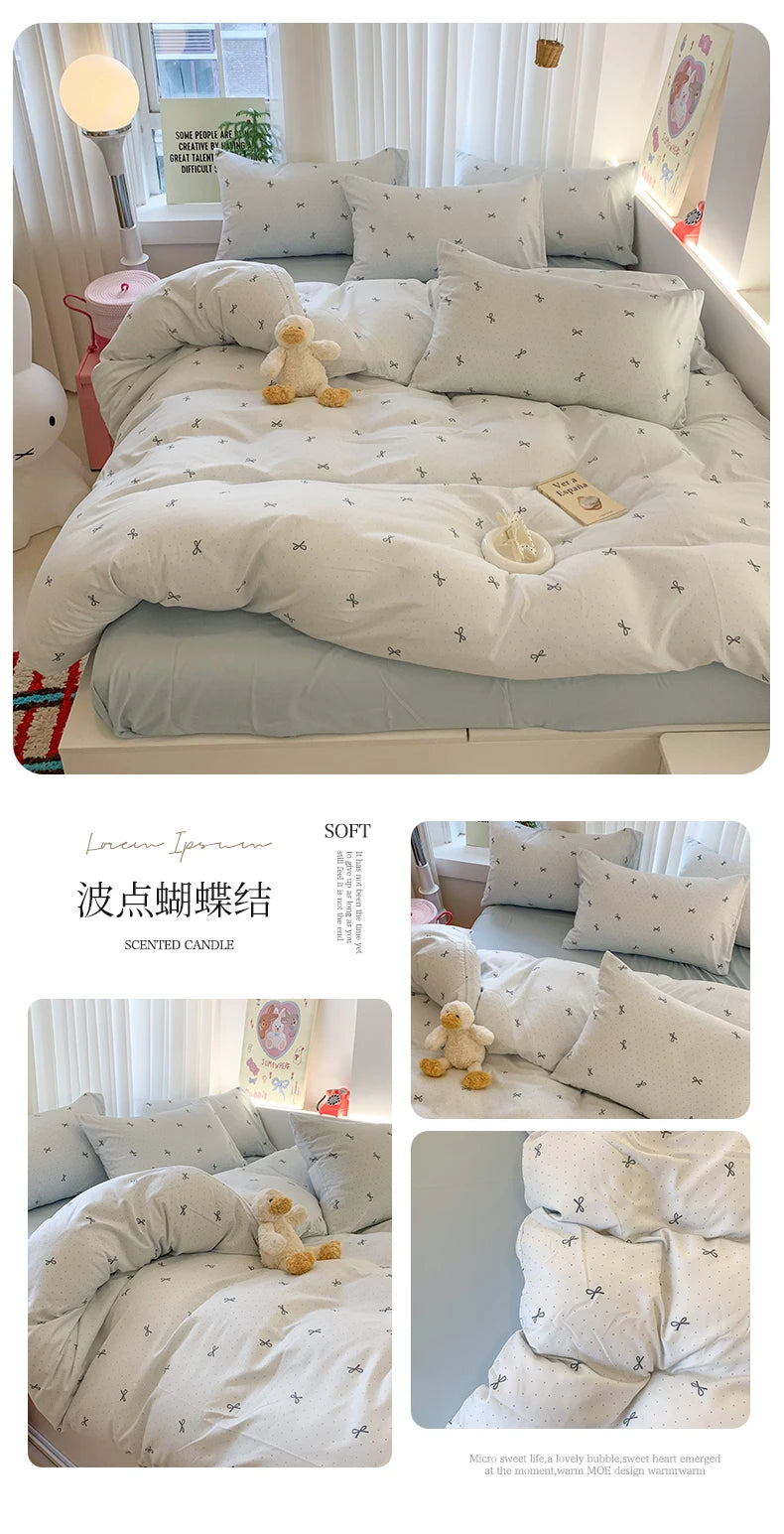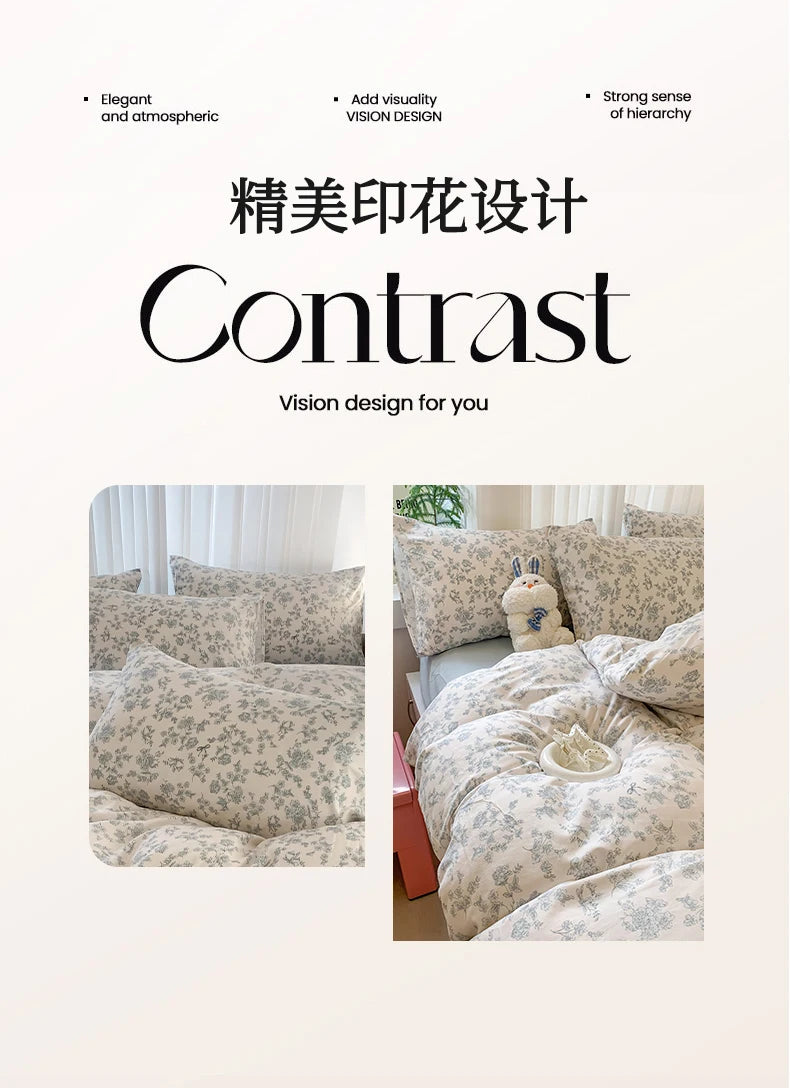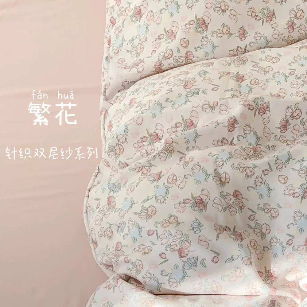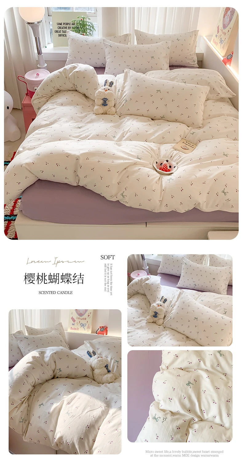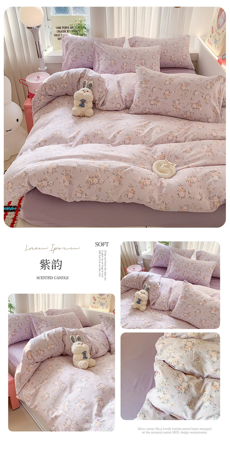 Class A Knitted Bedding Set Floral Style Bed Linen Set Soft Double Yarn Four-Piece Set Quilt Cover Set Bed Sheets Gift for Home