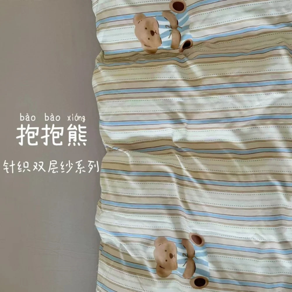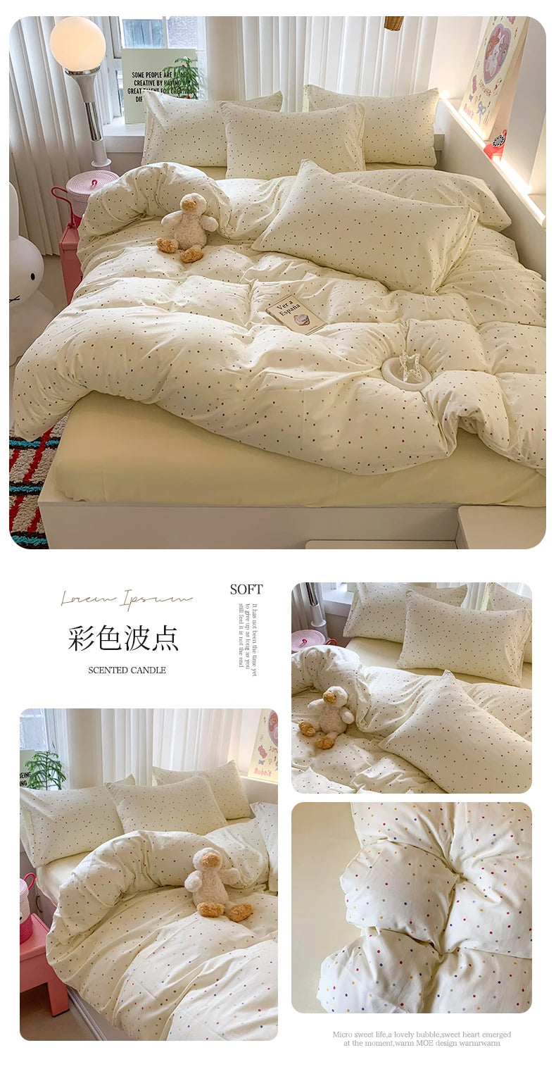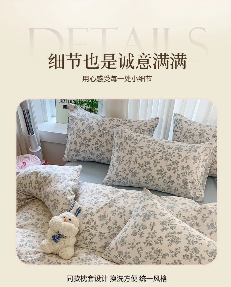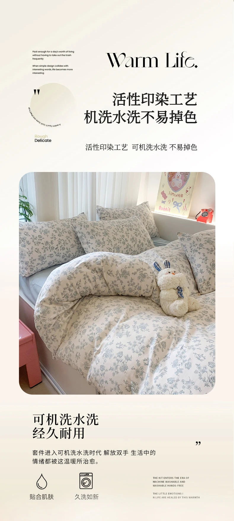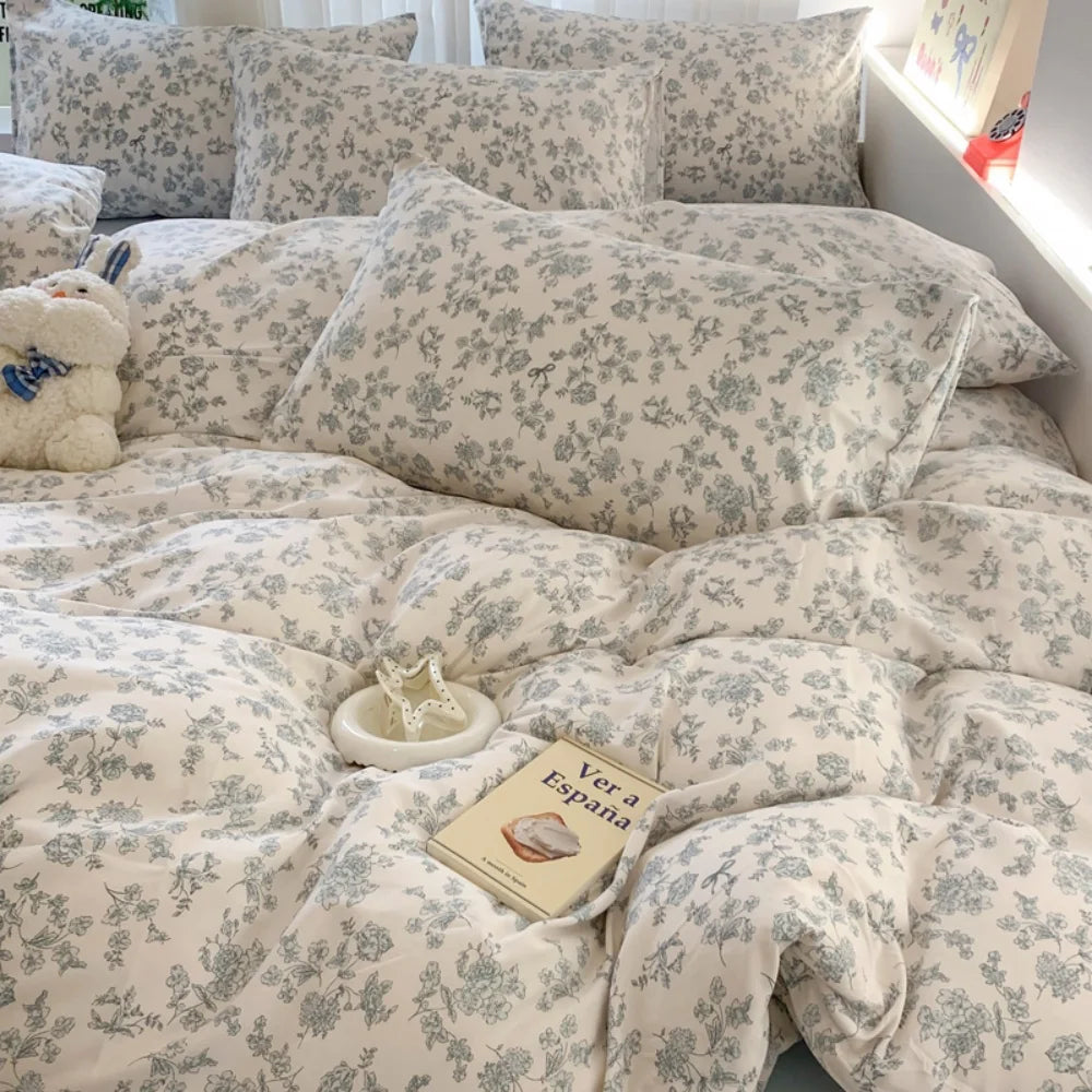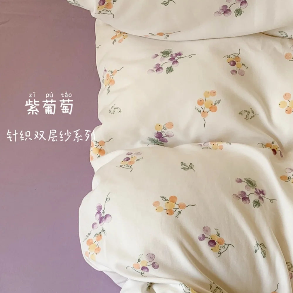 Class A Knitted Bedding Set Floral Style Bed Linen Set Soft Double Yarn Four-Piece Set Quilt Cover Set Bed Sheets Gift for Home
