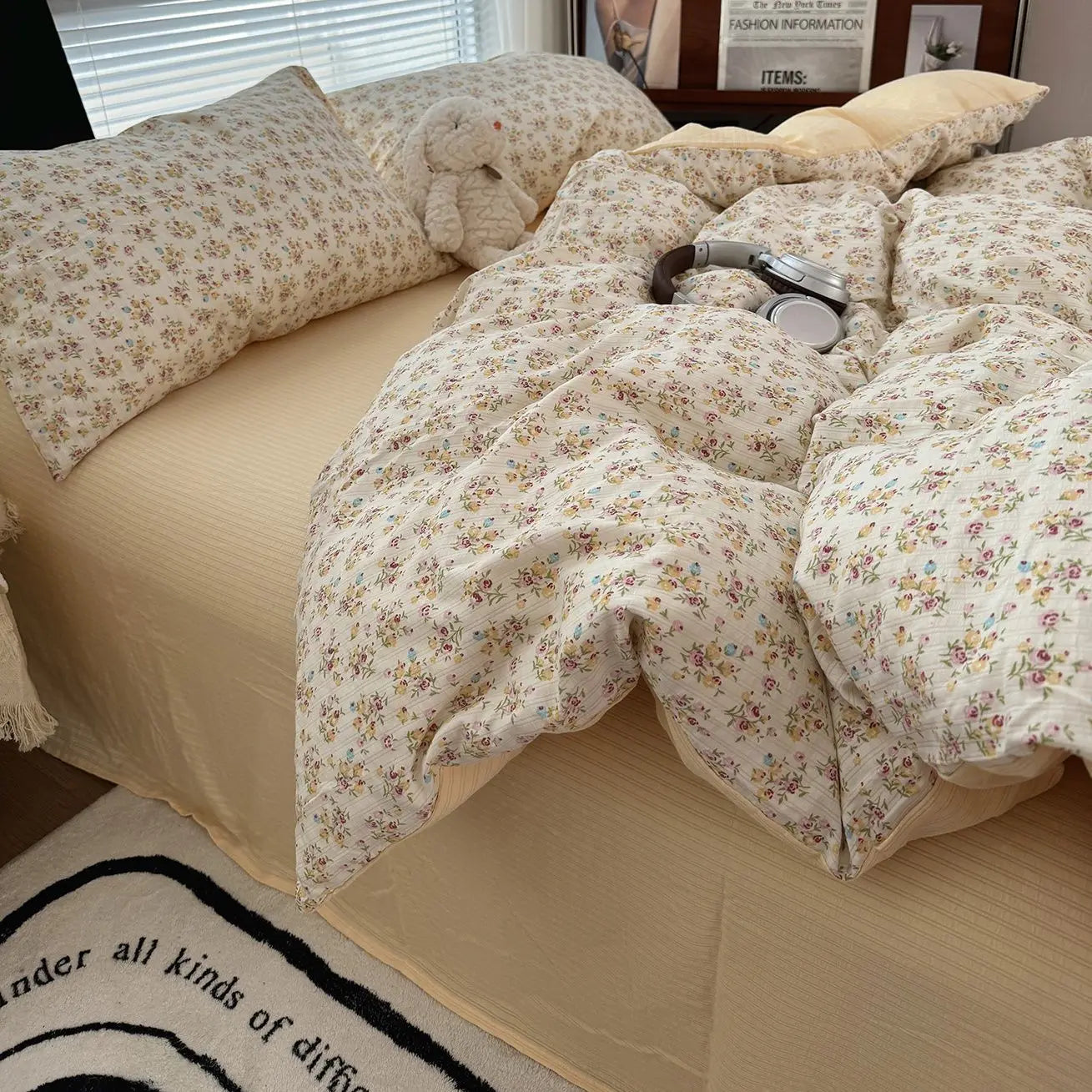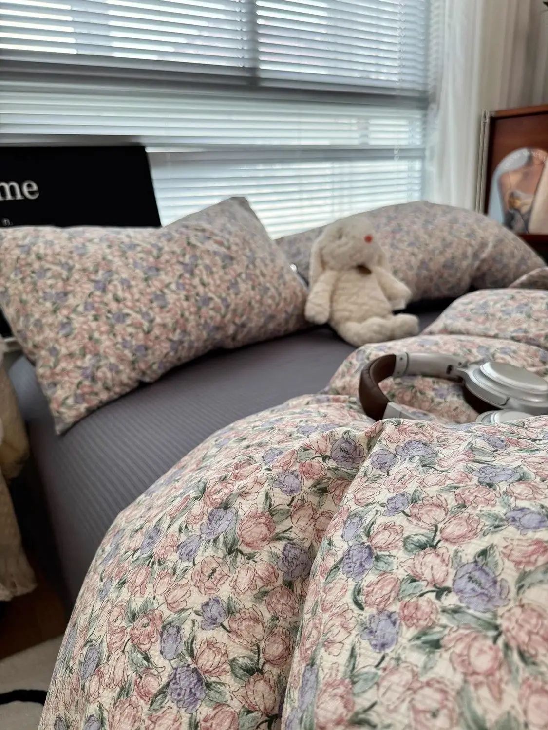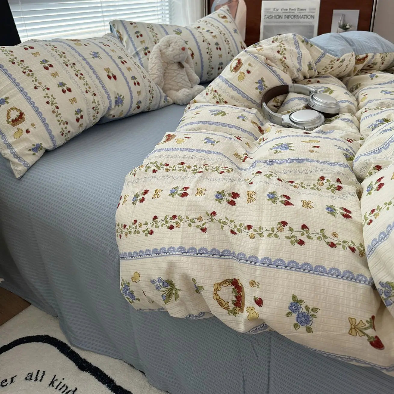 Duvet Cover Set A-class Ultra Soft Jacquard Double-layer Yarn Washed Cotton Bedding Set Floral Bed Sheet