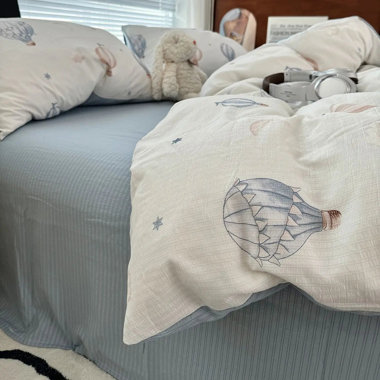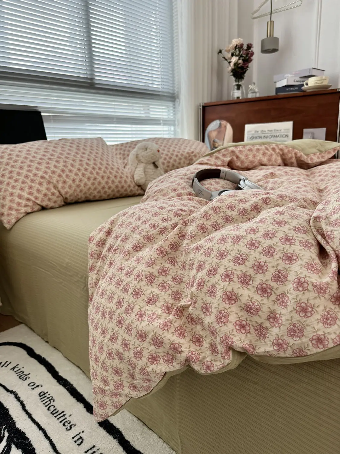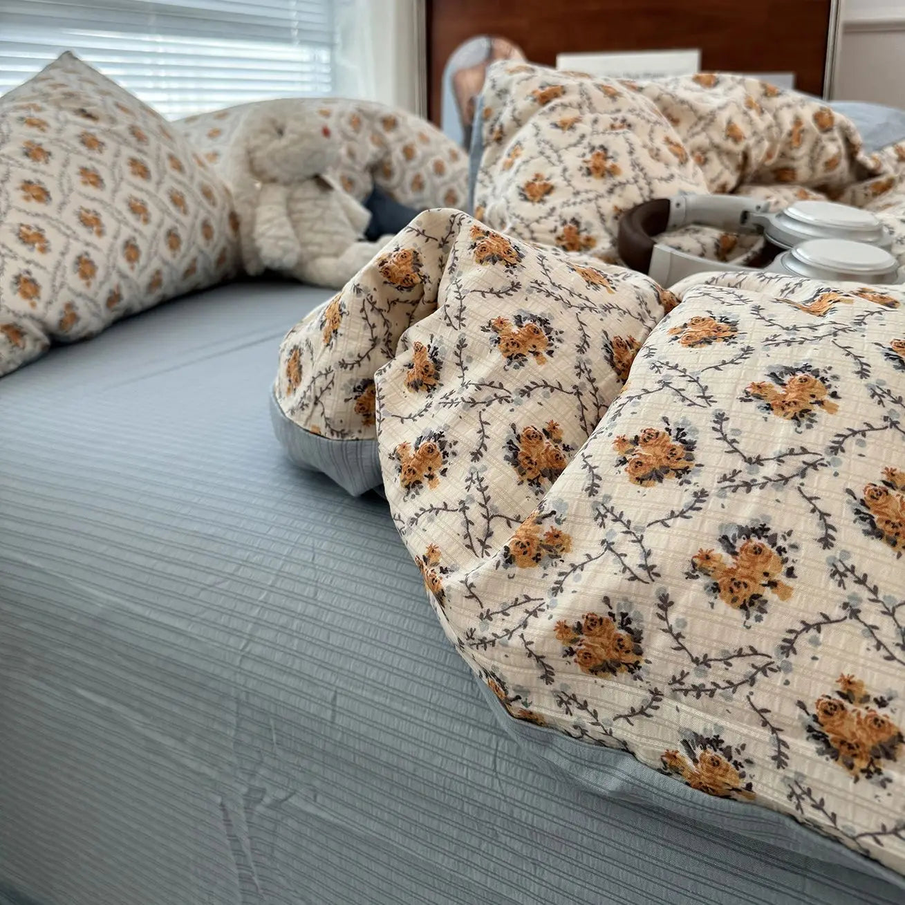 Duvet Cover Set A-class Ultra Soft Jacquard Double-layer Yarn Washed Cotton Bedding Set Floral Bed Sheet