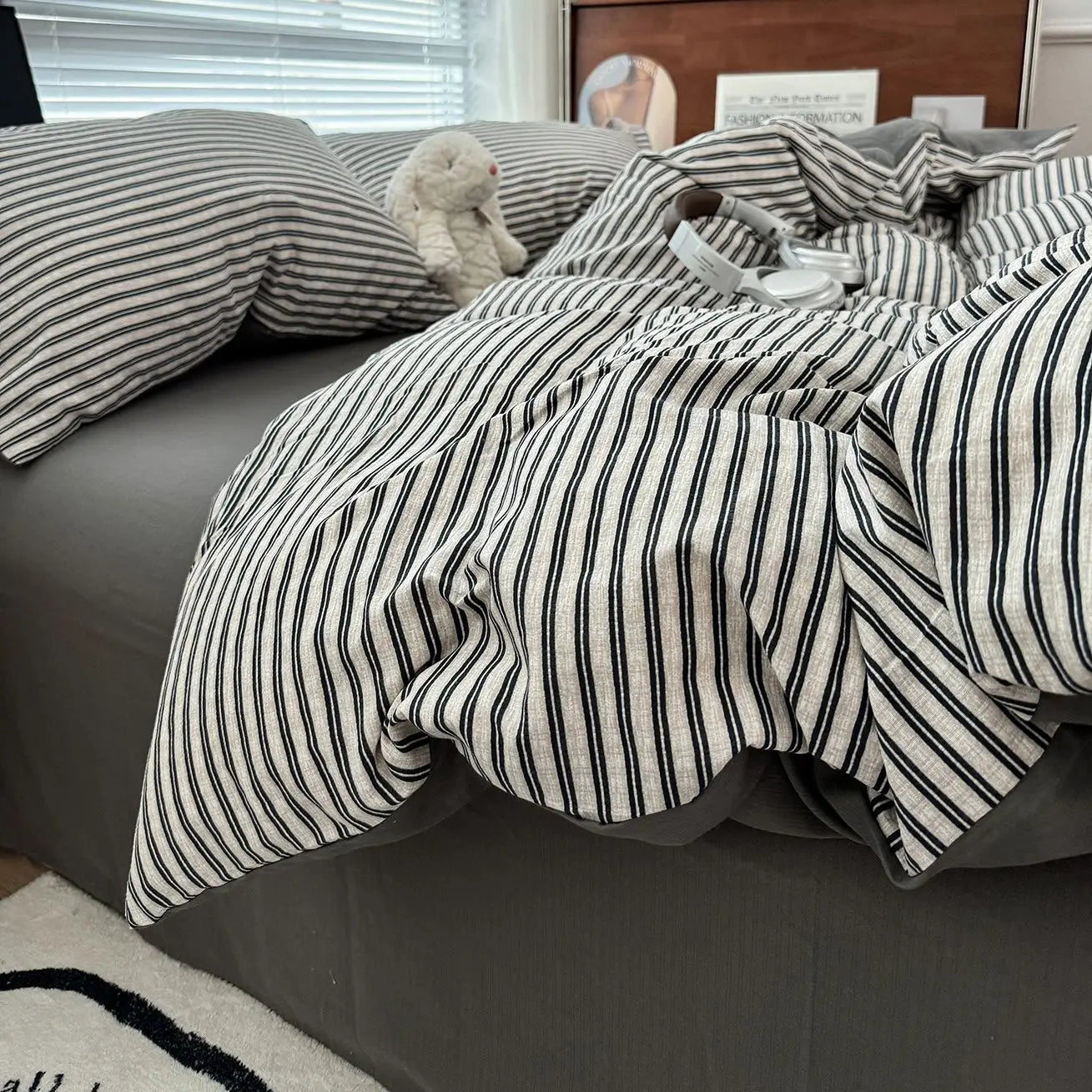 New Stripe Series Quilt Cover Skin Friendly 4-piece Bedding Set Pillow Case with Bed Sheet Four General 150x200 200x230