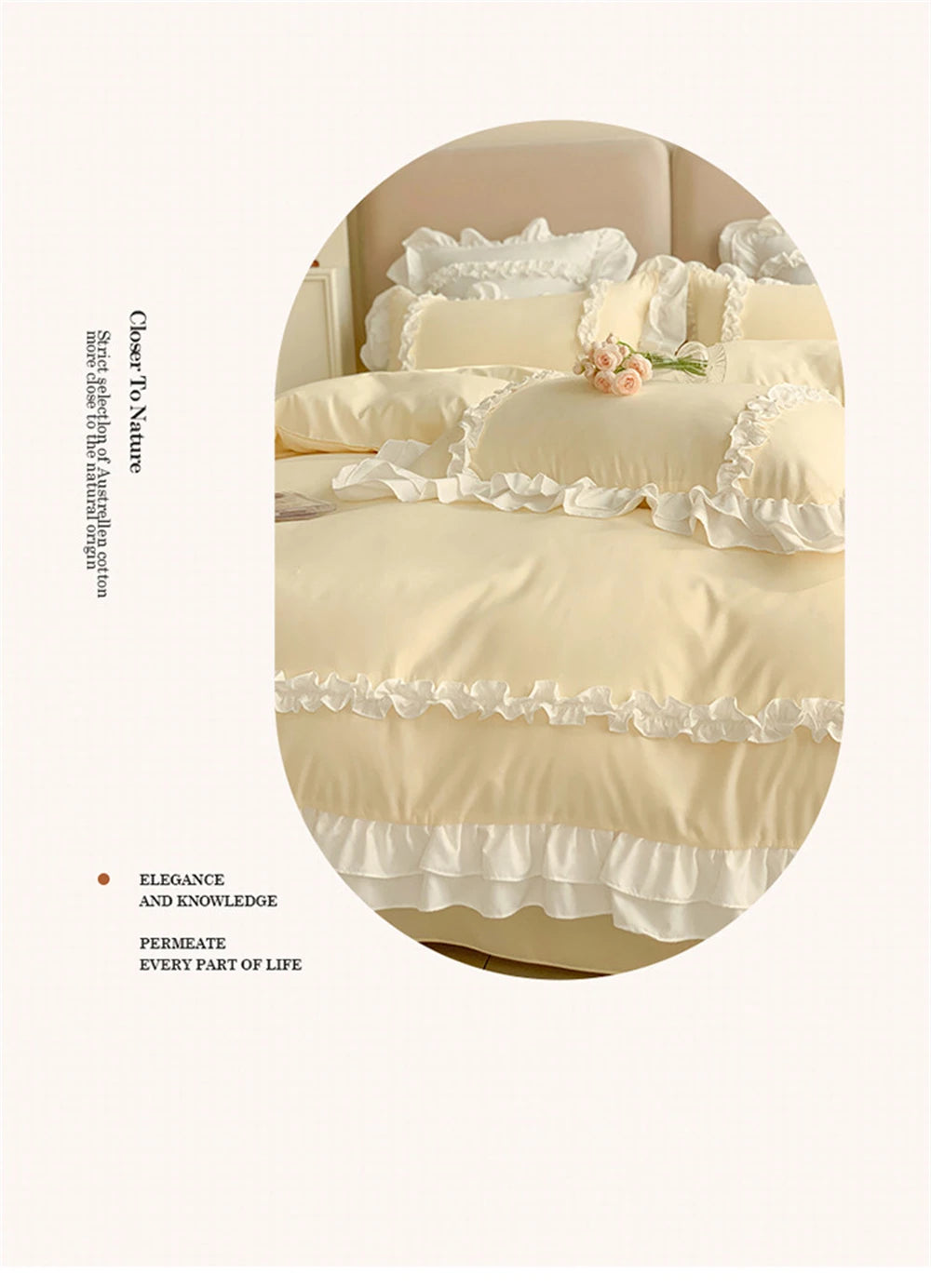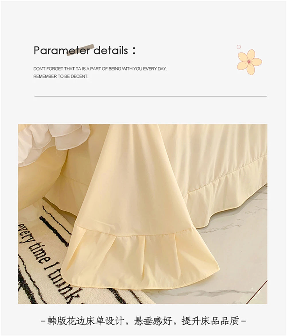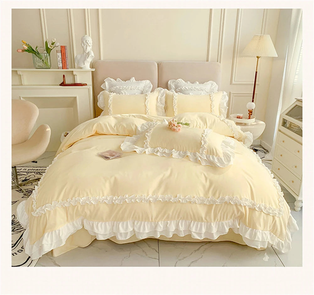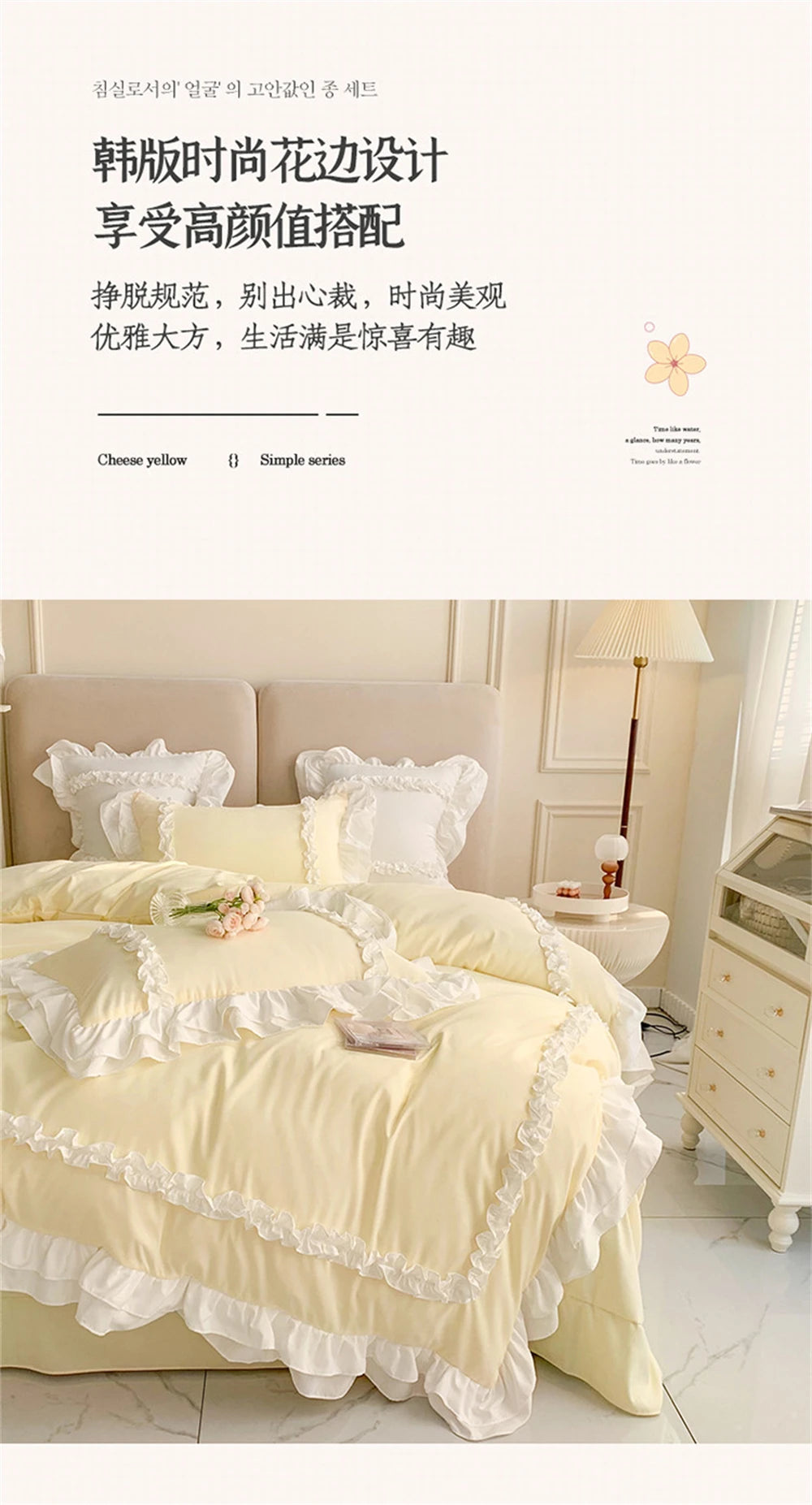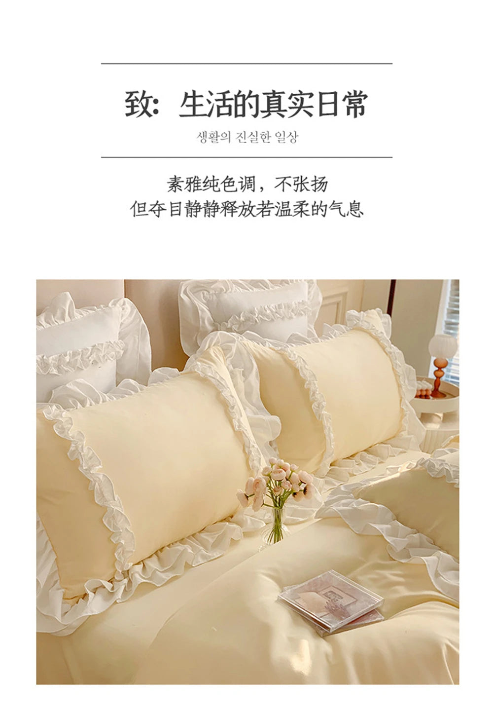 Elegant Lace Bedding Sets Luxury Bed Linen Korean Princess Style Washed Cotton Ruffle Duvet Cover Bed Sheet Pillowcases for Girl