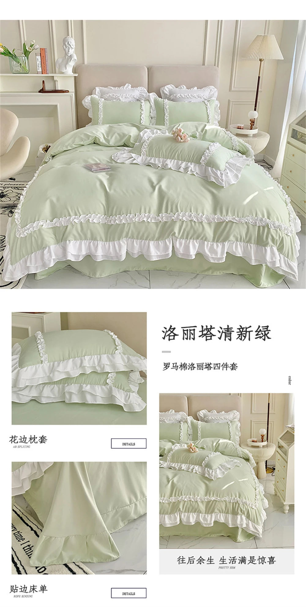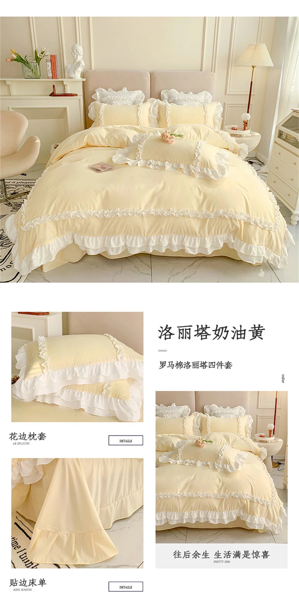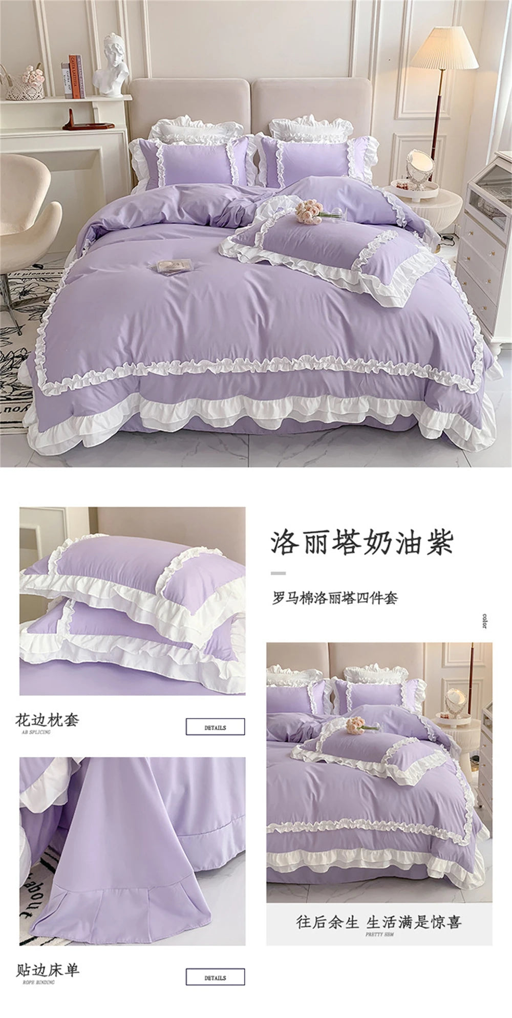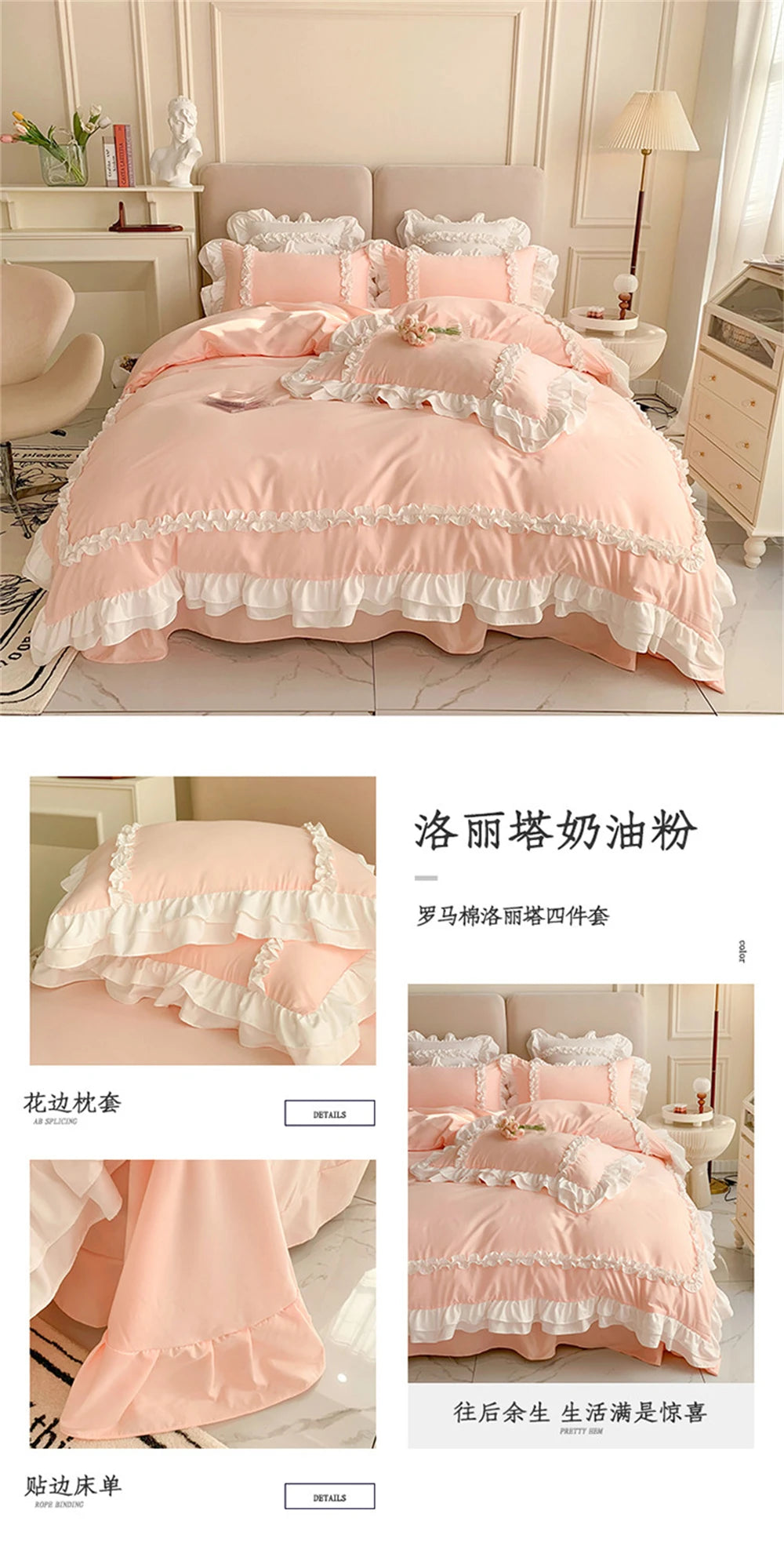 Elegant Lace Bedding Sets Luxury Bed Linen Korean Princess Style Washed Cotton Ruffle Duvet Cover Bed Sheet Pillowcases for Girl