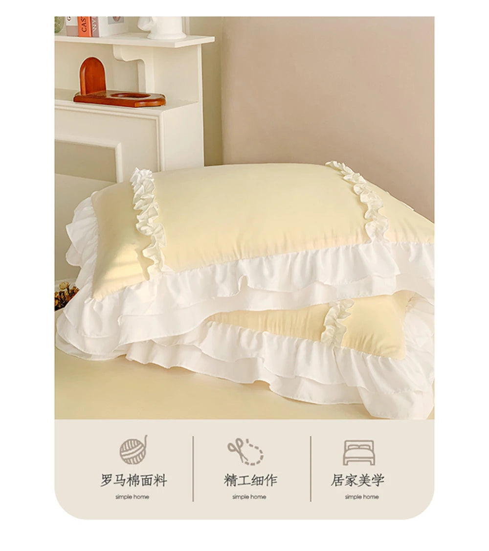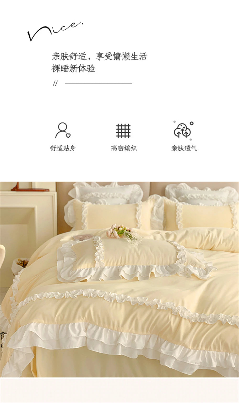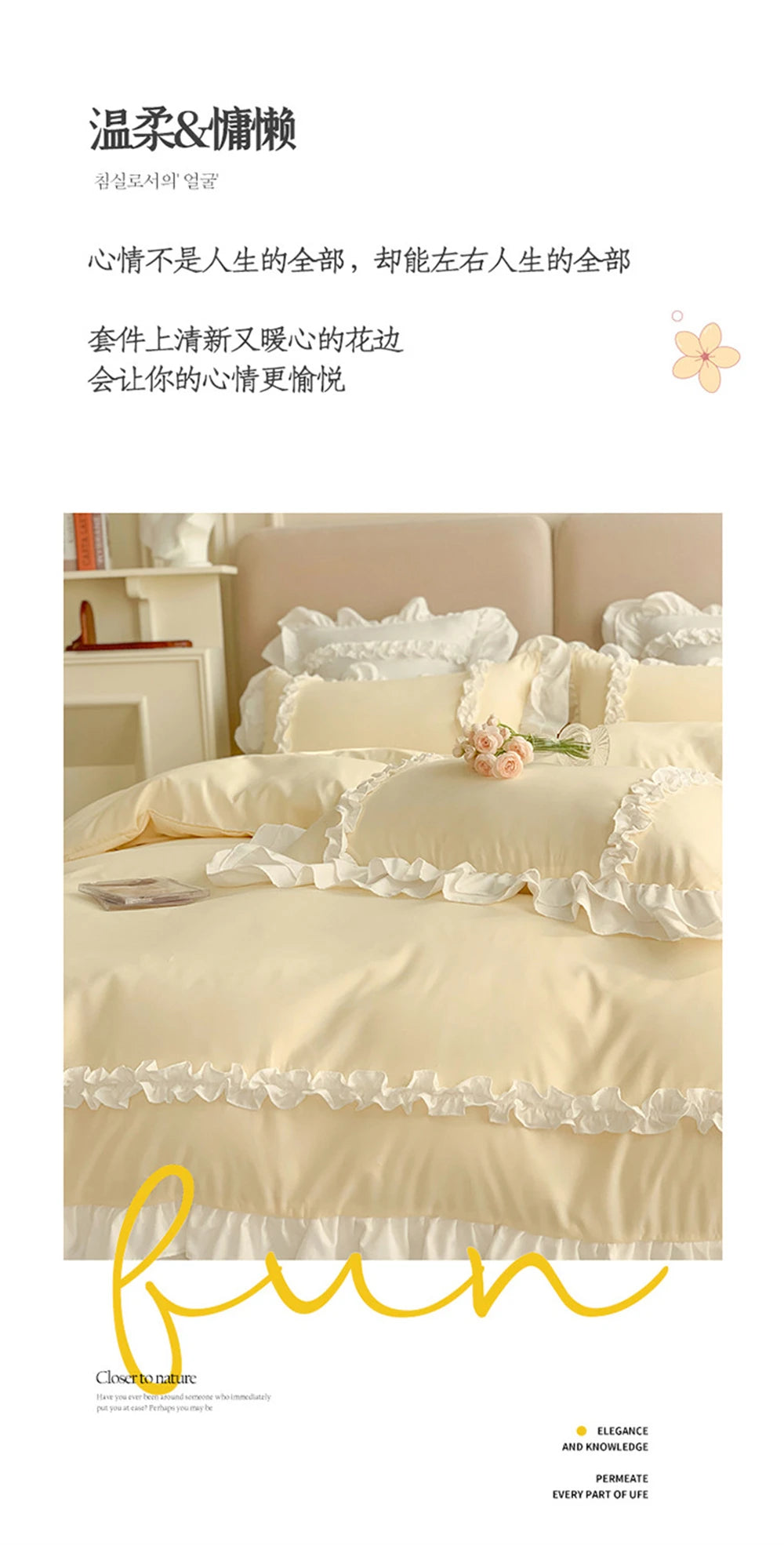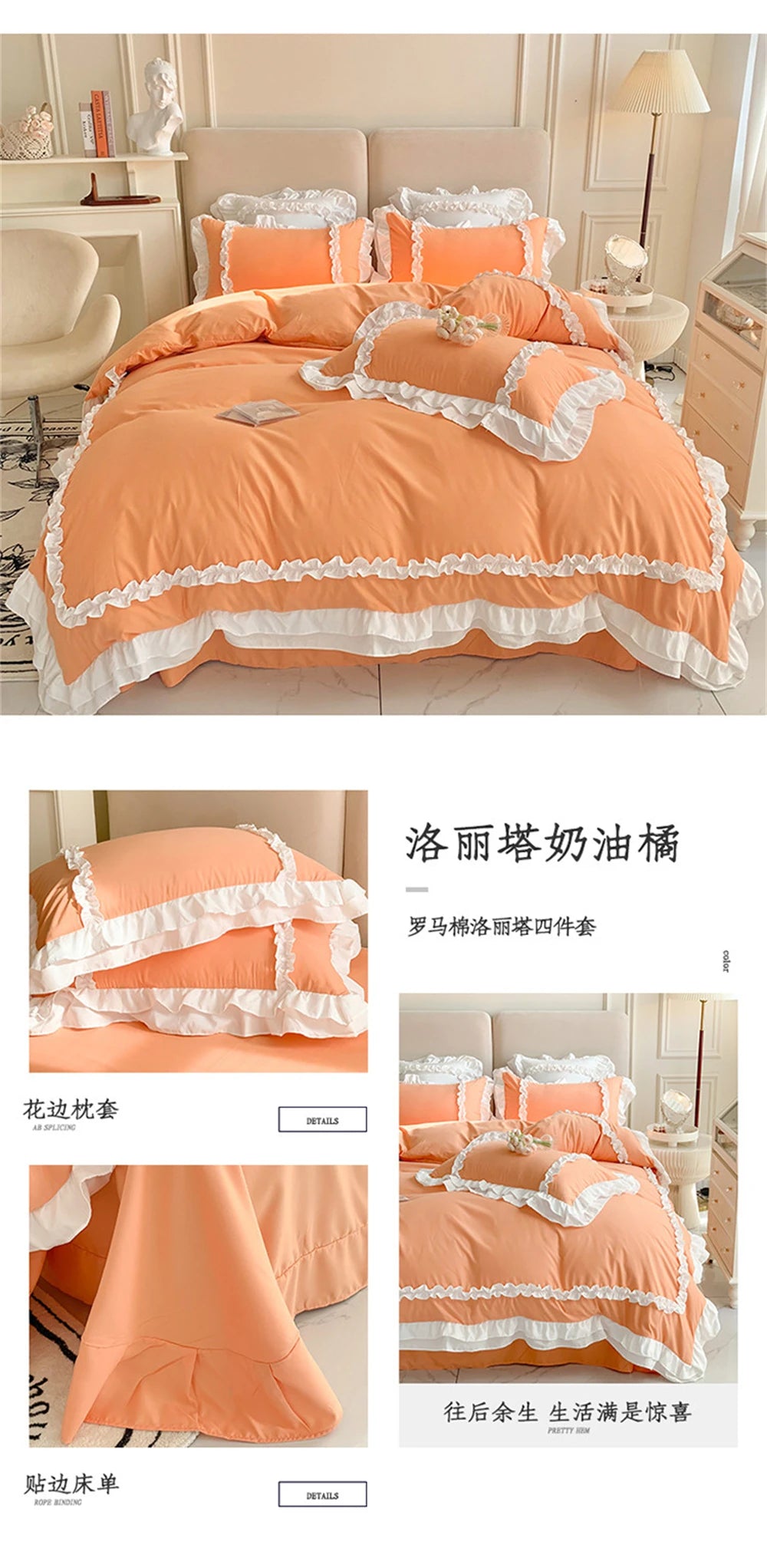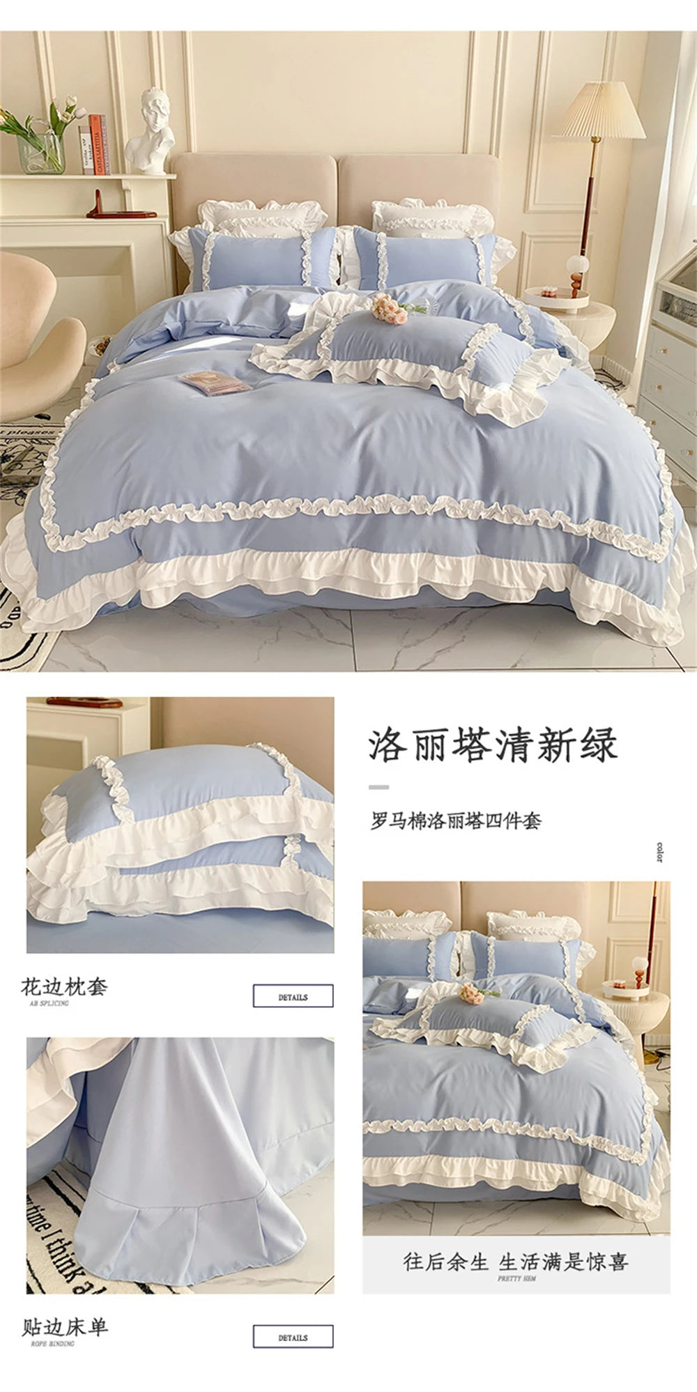 Elegant Lace Bedding Sets Luxury Bed Linen Korean Princess Style Washed Cotton Ruffle Duvet Cover Bed Sheet Pillowcases for Girl