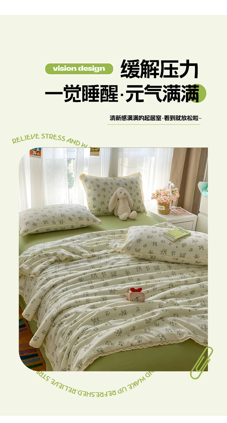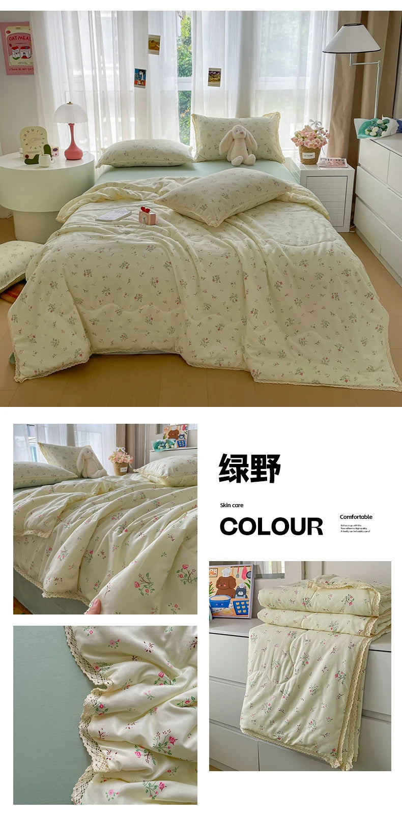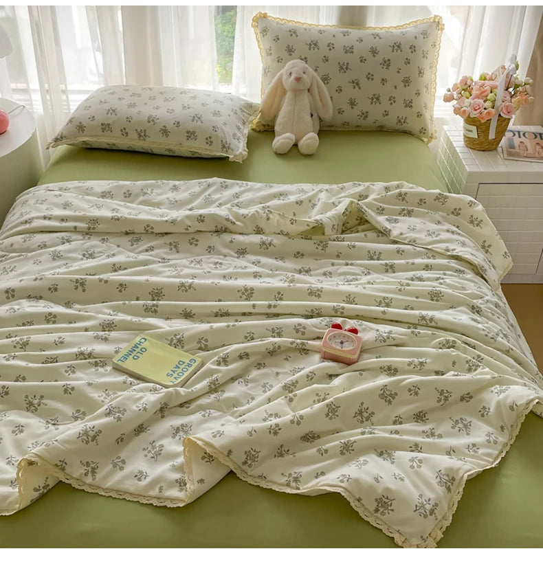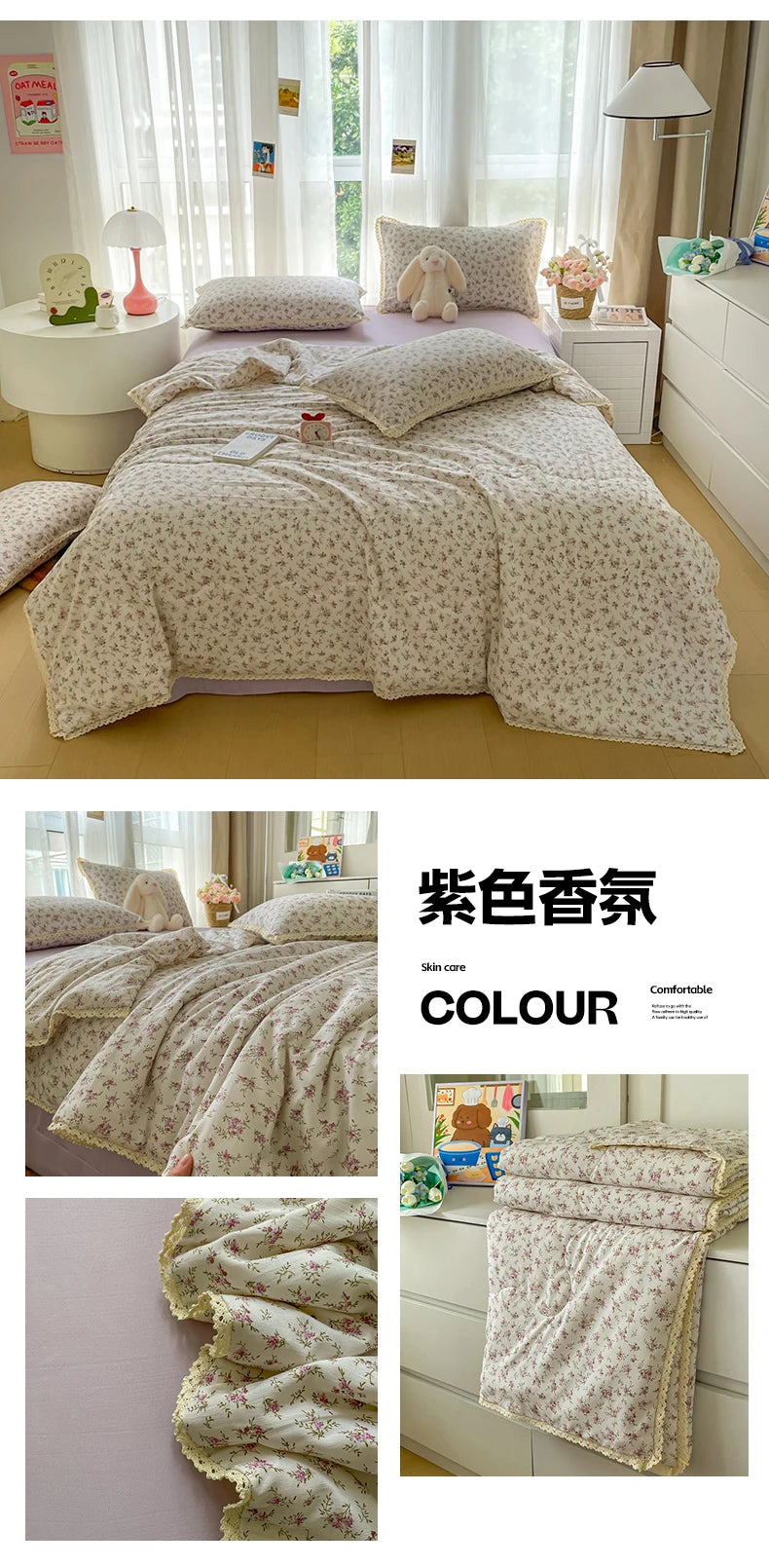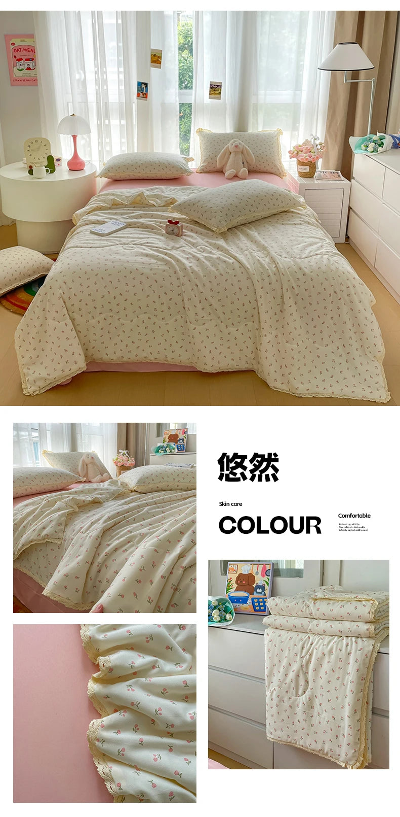 Floral Printed Summer Quilt Four Piece Set Soft Bedroom Decor Bedding Set Summer Quilt Bed Sheet With Pillowcases Home Textiles