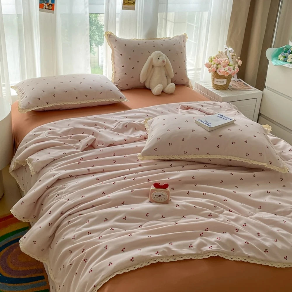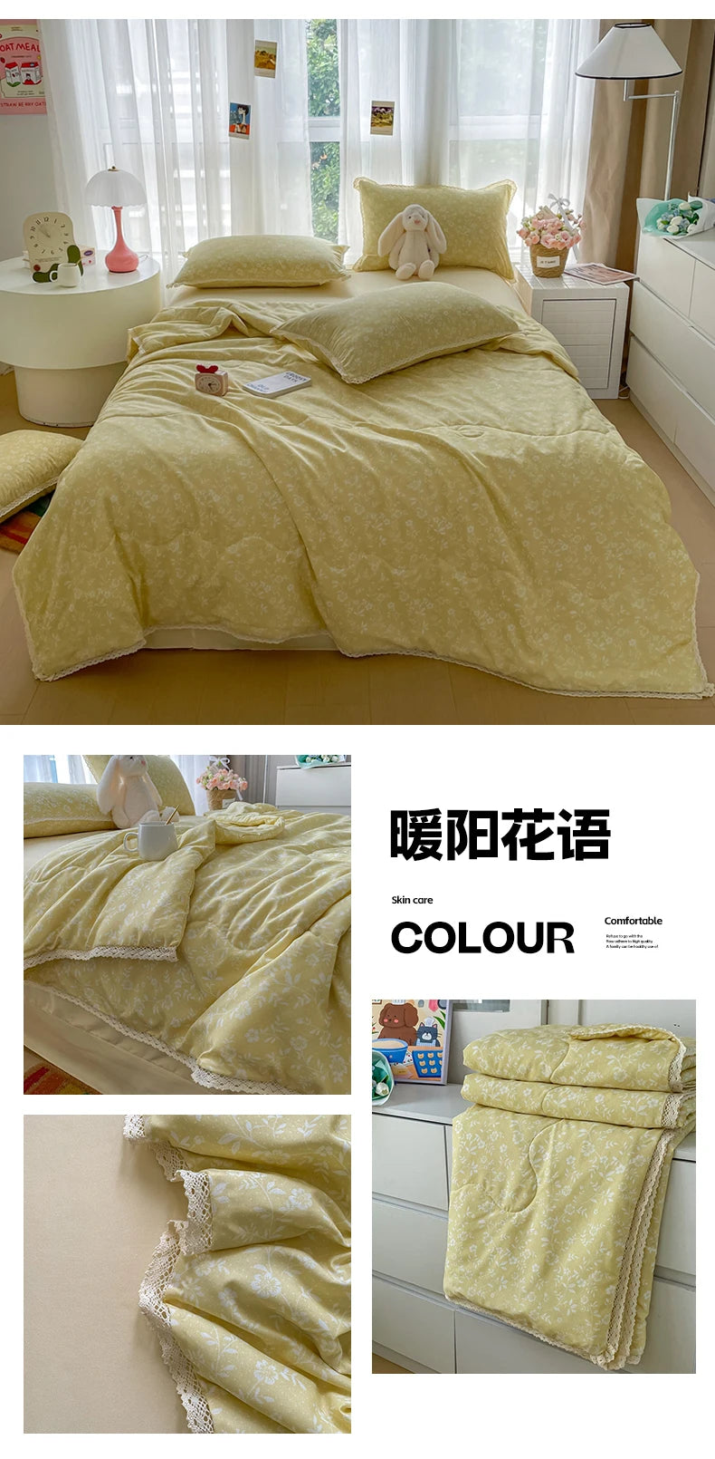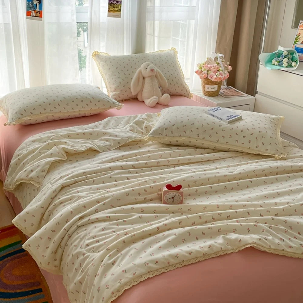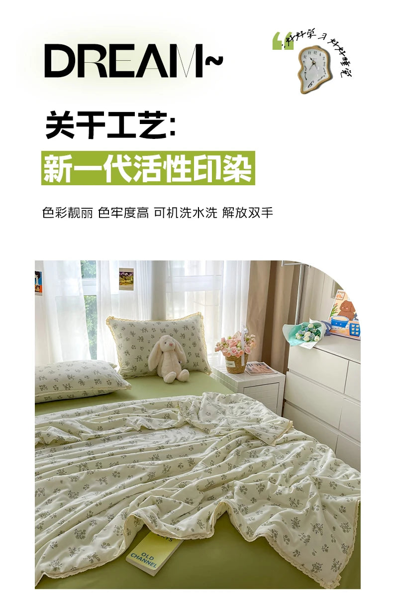 Floral Printed Summer Quilt Four Piece Set Soft Bedroom Decor Bedding Set Summer Quilt Bed Sheet With Pillowcases Home Textiles