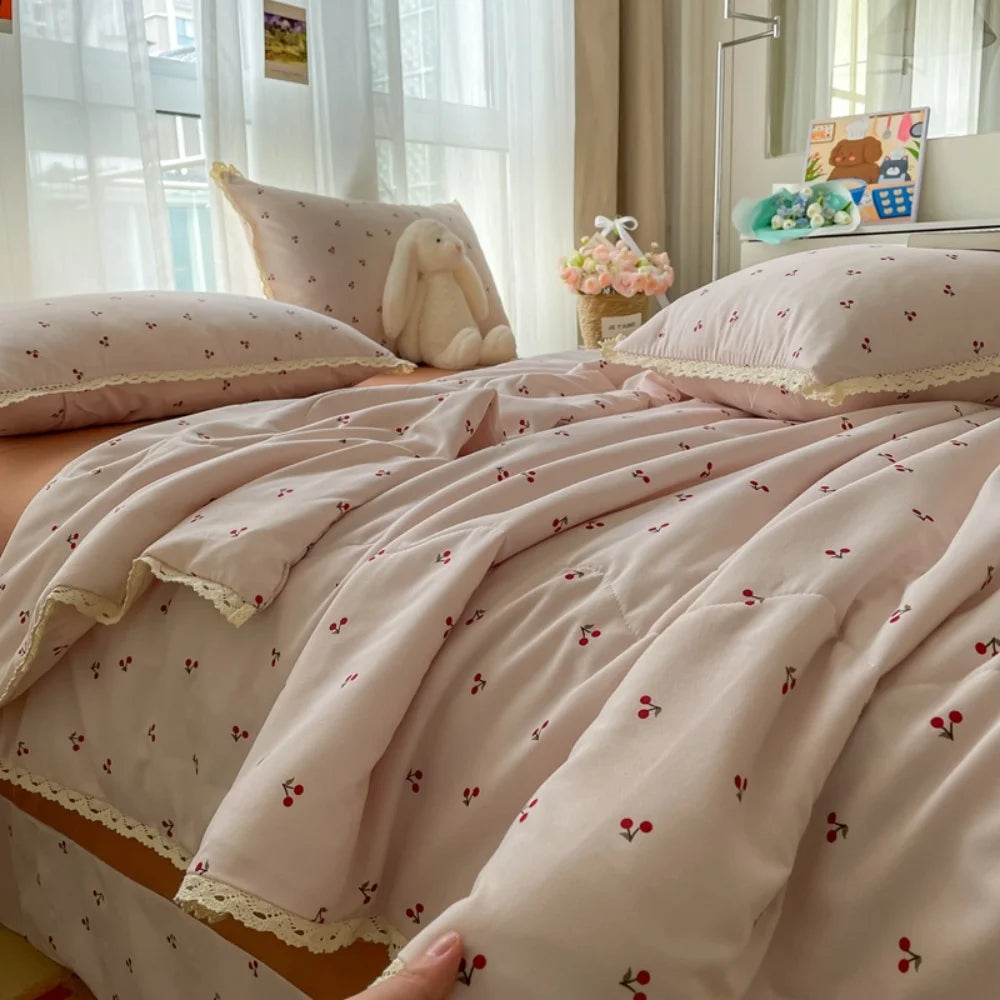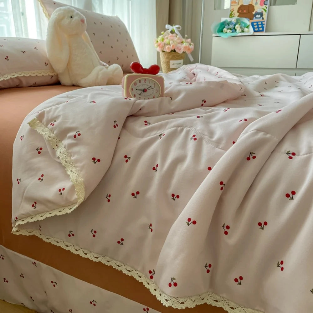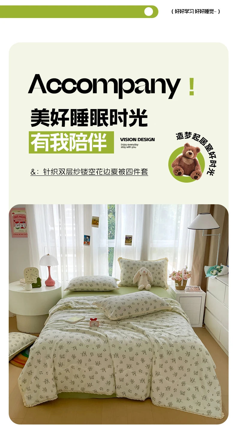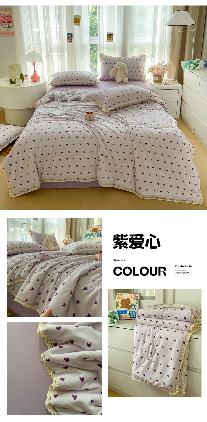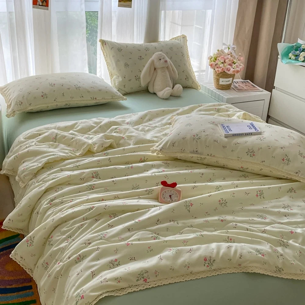 Floral Printed Summer Quilt Four Piece Set Soft Bedroom Decor Bedding Set Summer Quilt Bed Sheet With Pillowcases Home Textiles