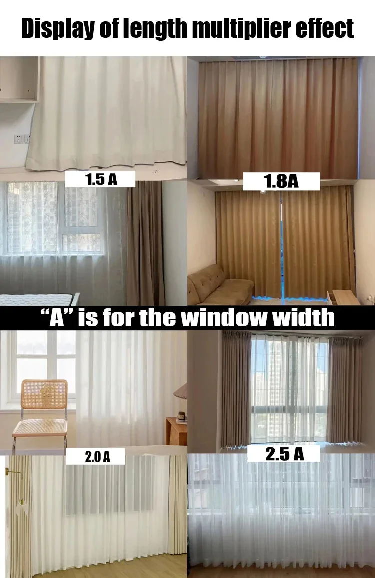 Note that the upper width of the curtain is machined to approximately half the size due to the fixed pleats.