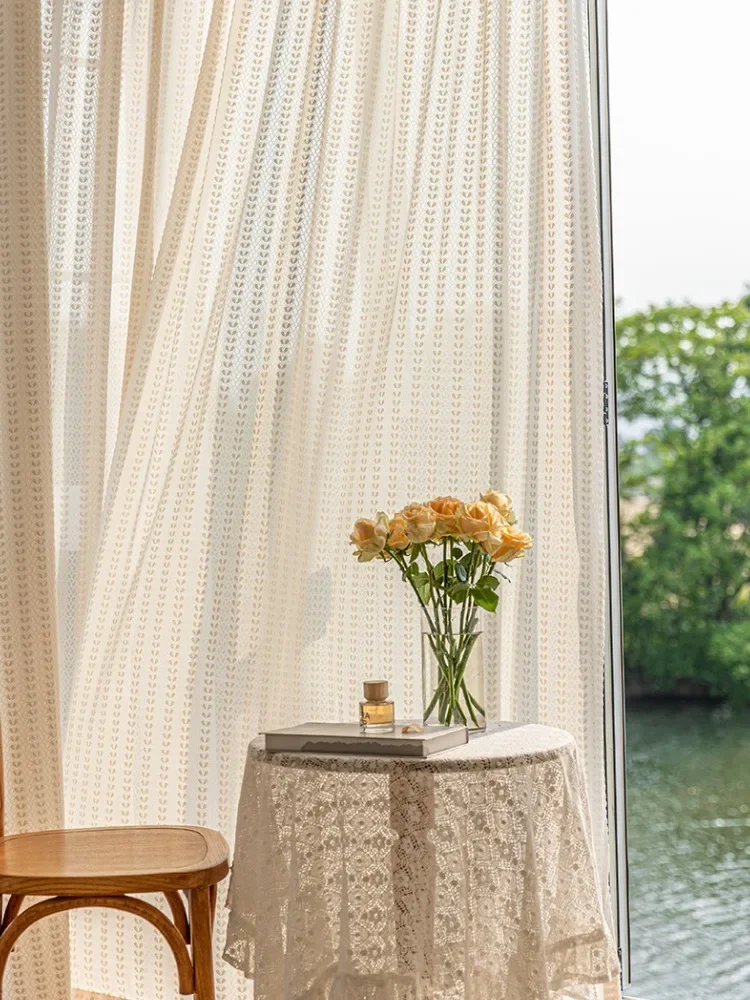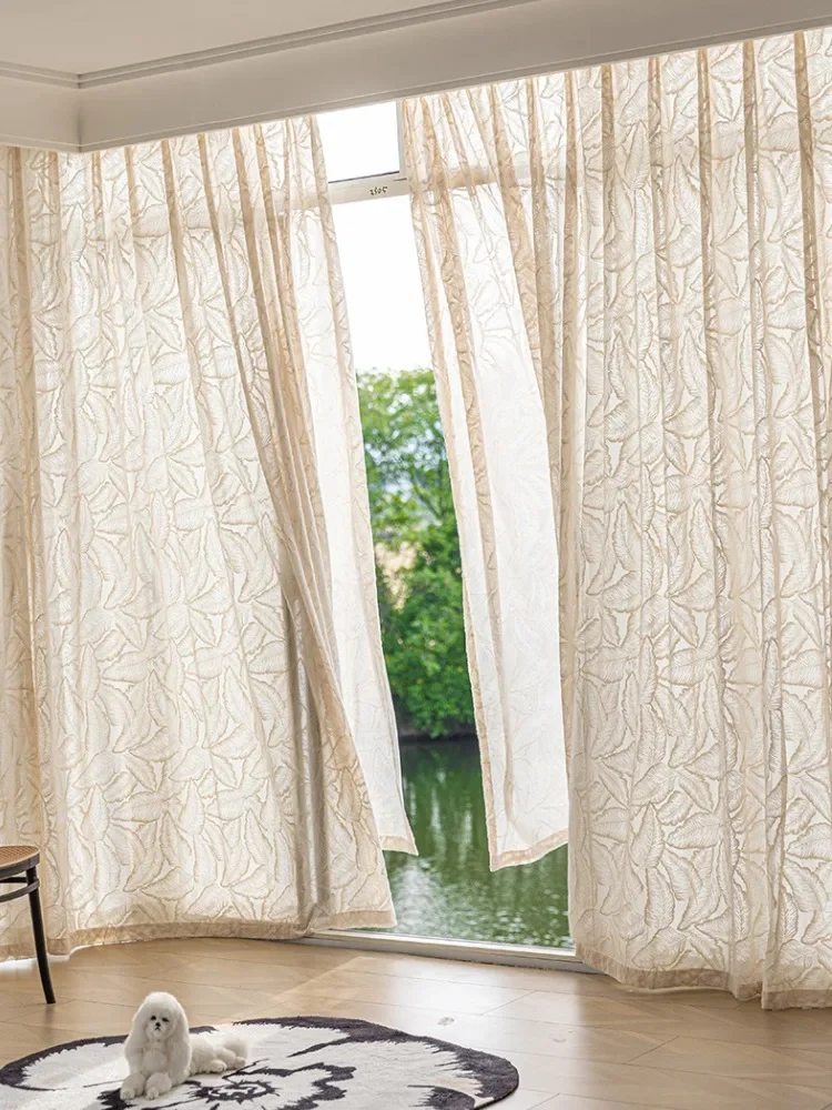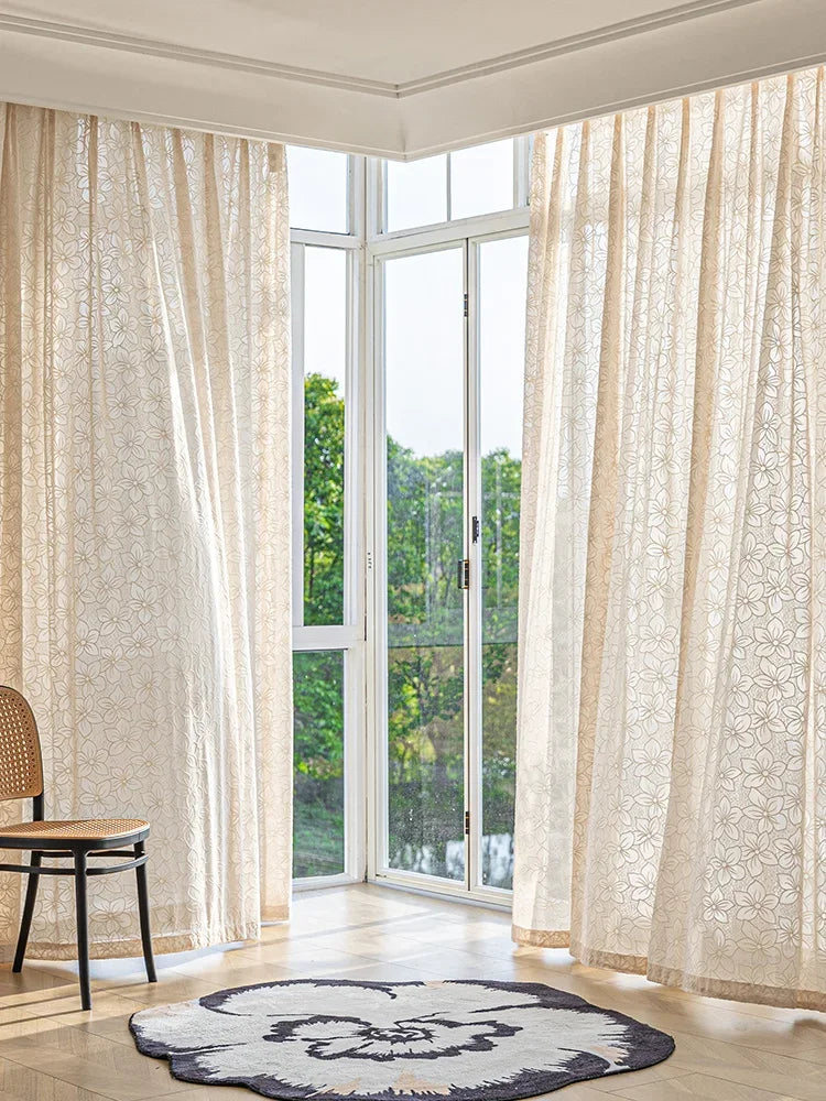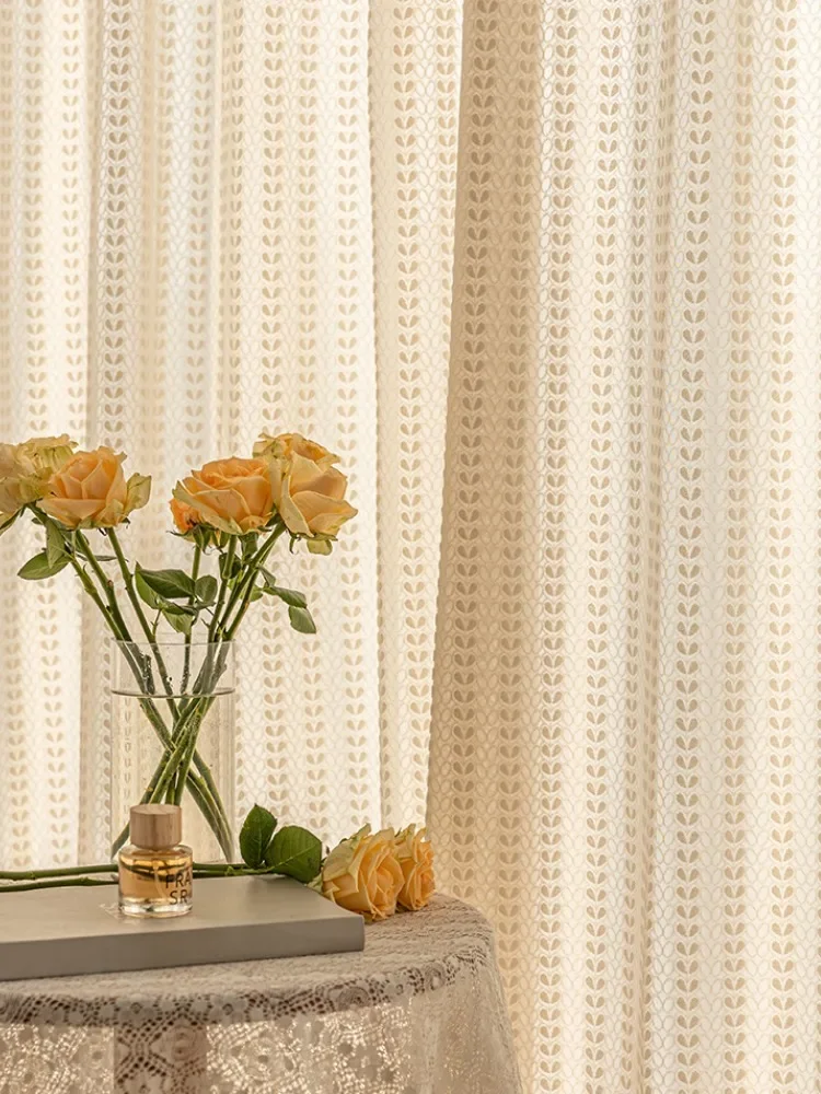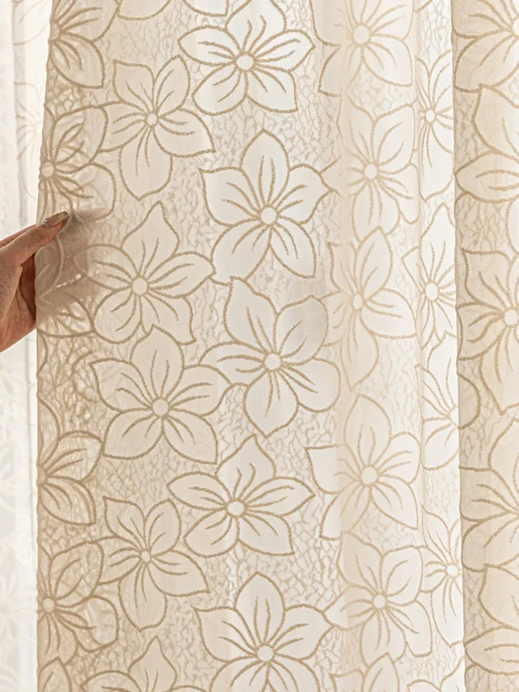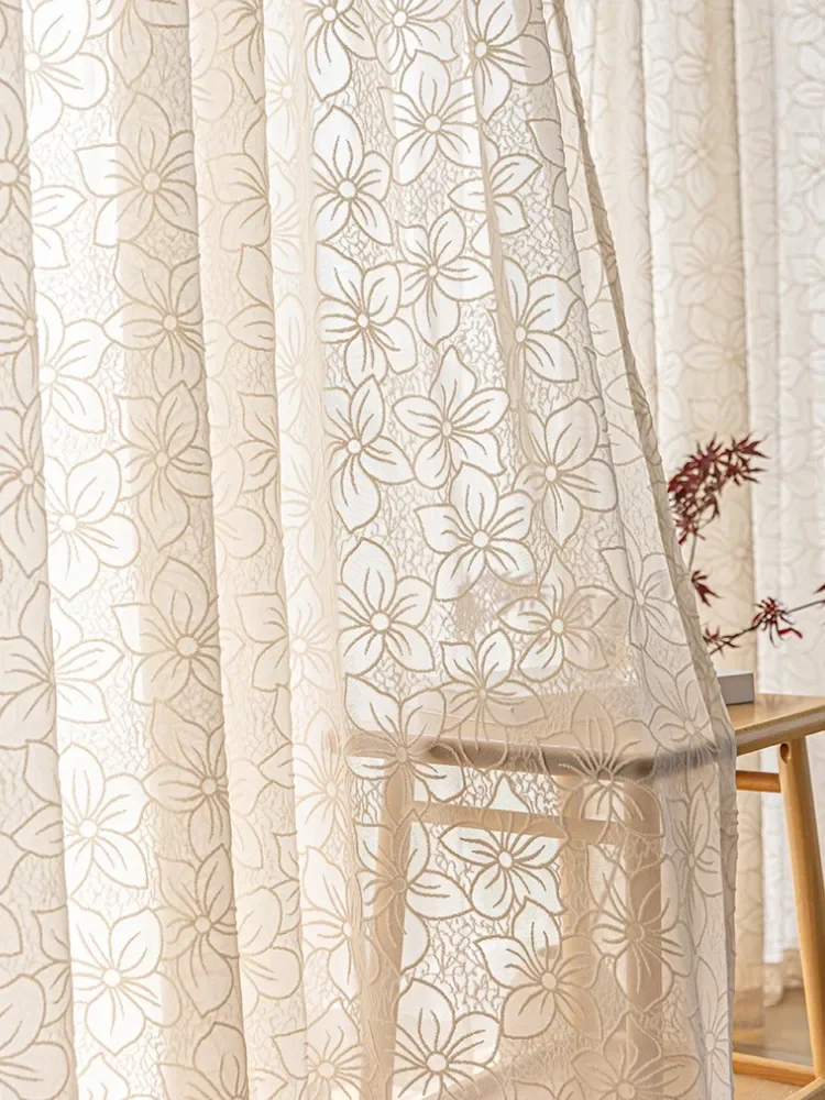 French Style Living Room Curtain Cream Beige Bedroom Decorative Curtains Floral Pattern Light-transmitting Study Curtains IG 커튼