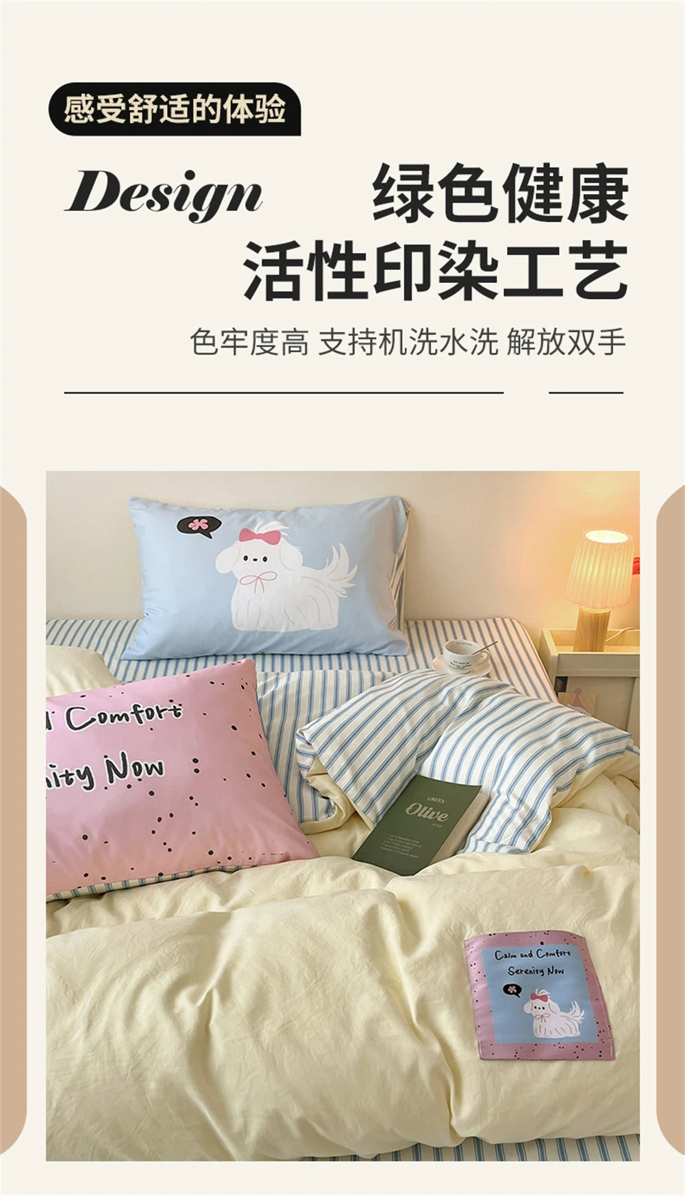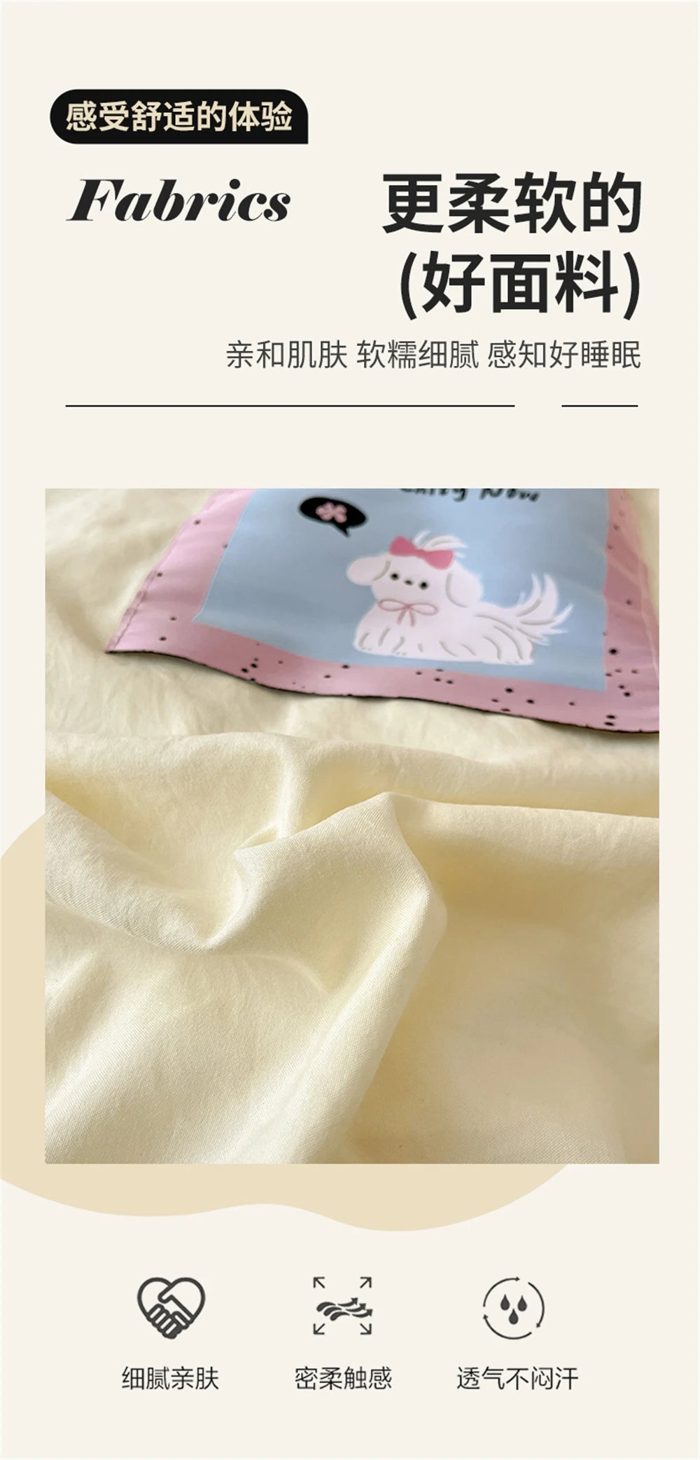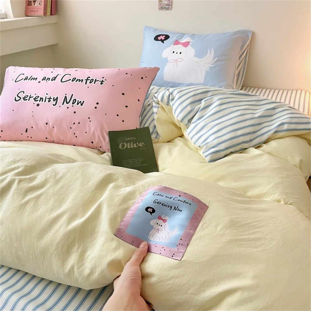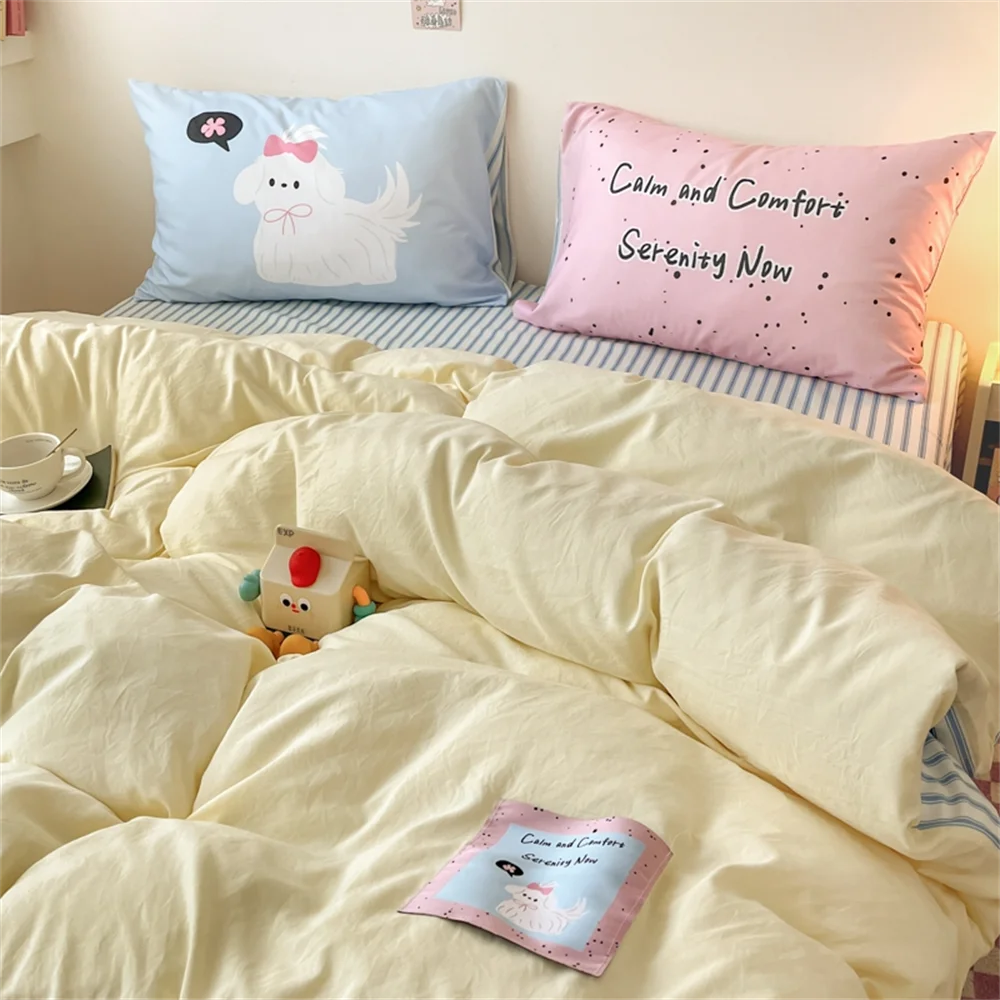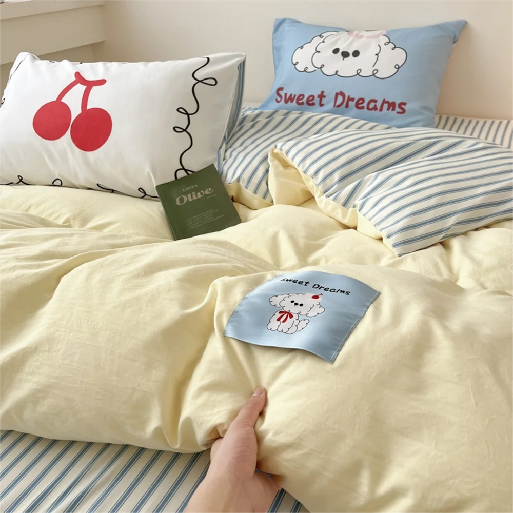 Kawaii Cartoon Dog Washed Cotton Bedding Set for Girl Boys Skin-friendly Duvet Cover Set with Sheet Soft Comfortable Quilt Cover
