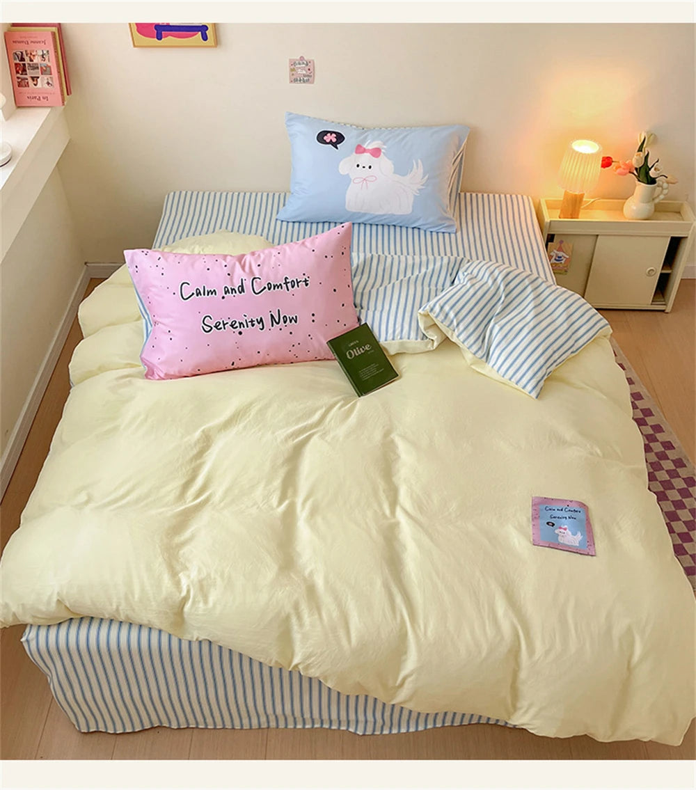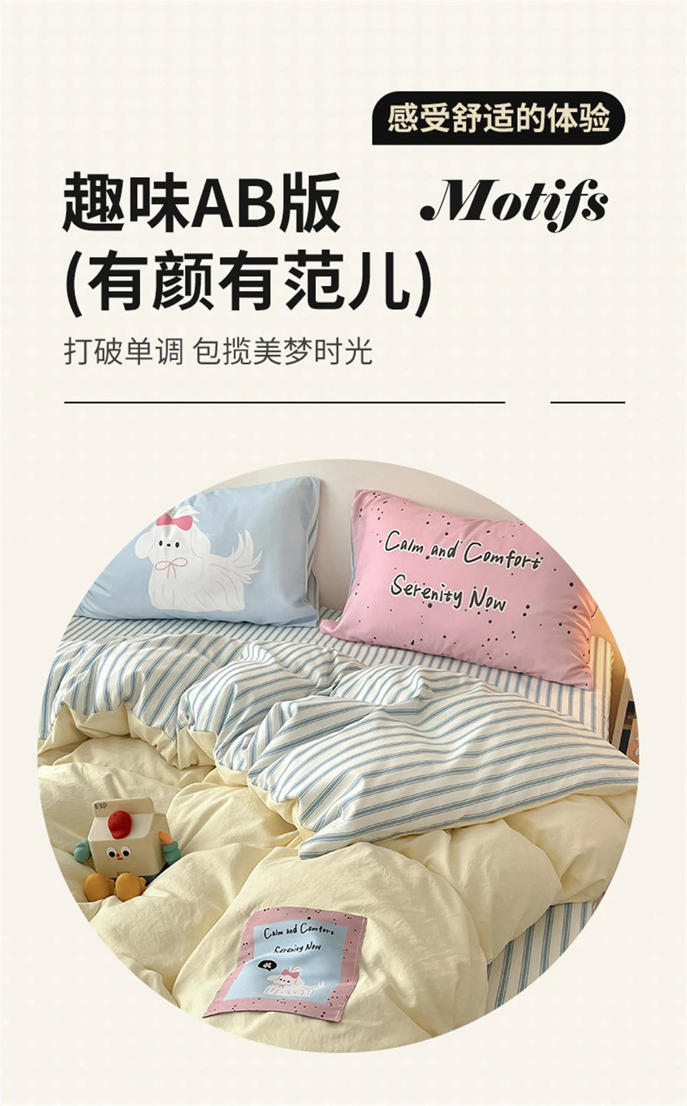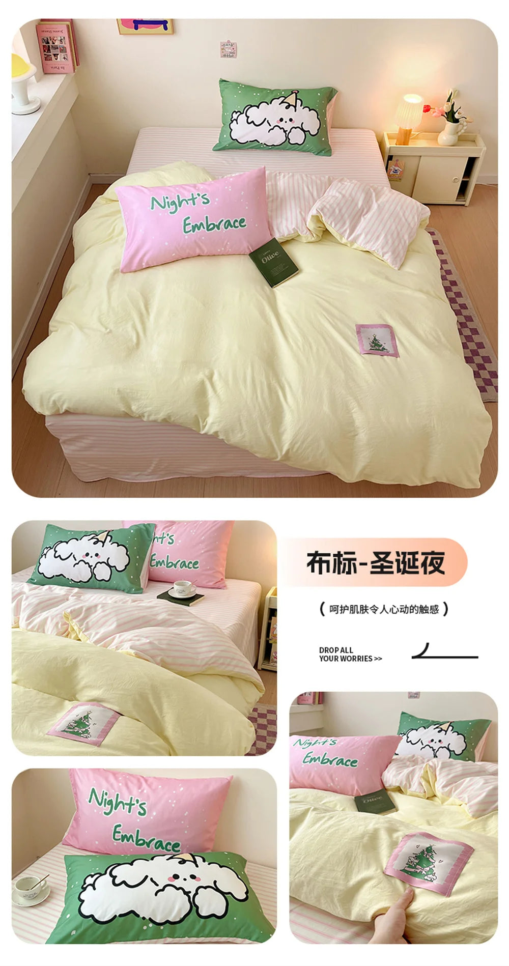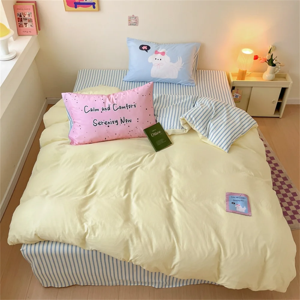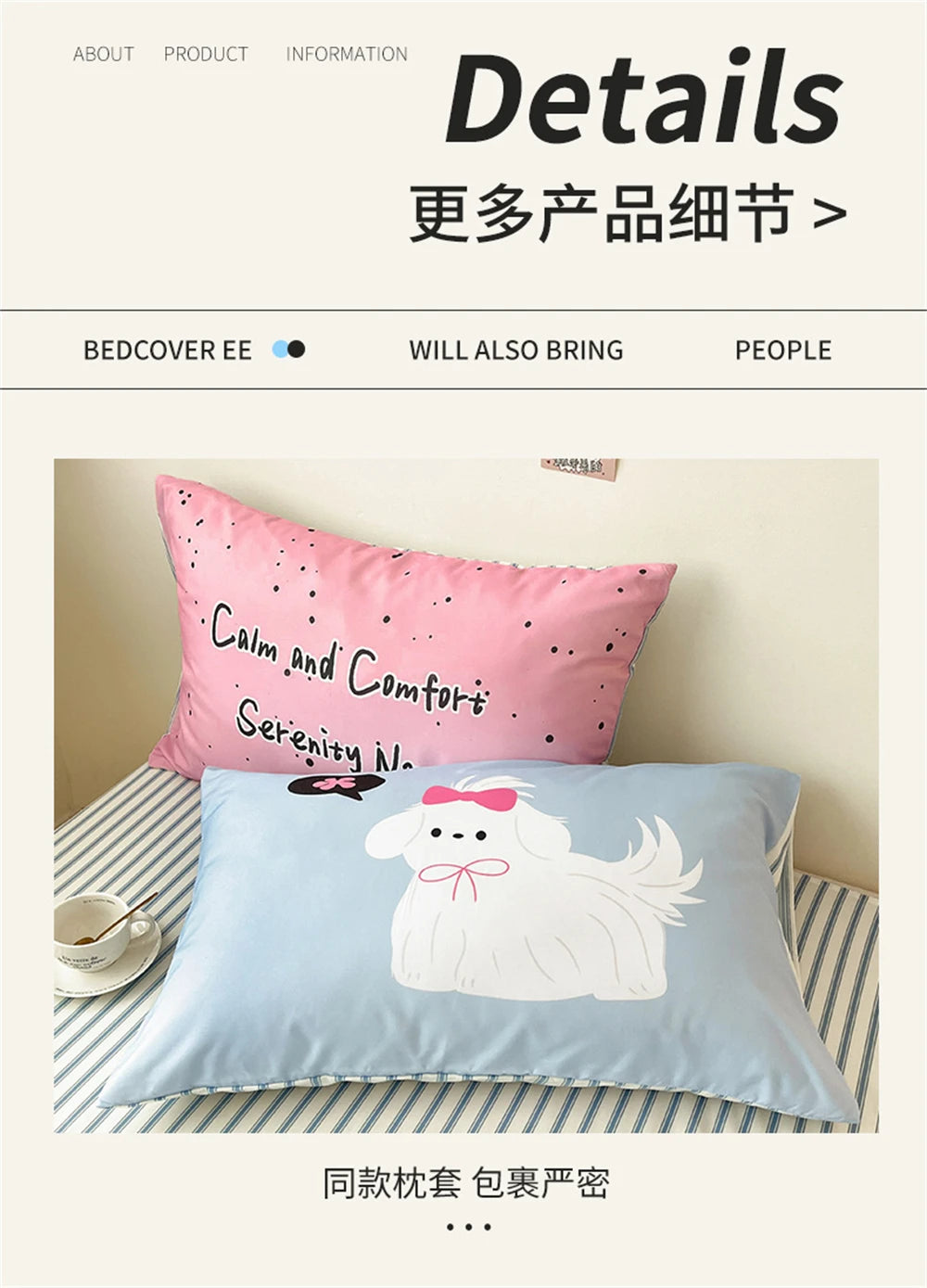 Kawaii Cartoon Dog Washed Cotton Bedding Set for Girl Boys Skin-friendly Duvet Cover Set with Sheet Soft Comfortable Quilt Cover